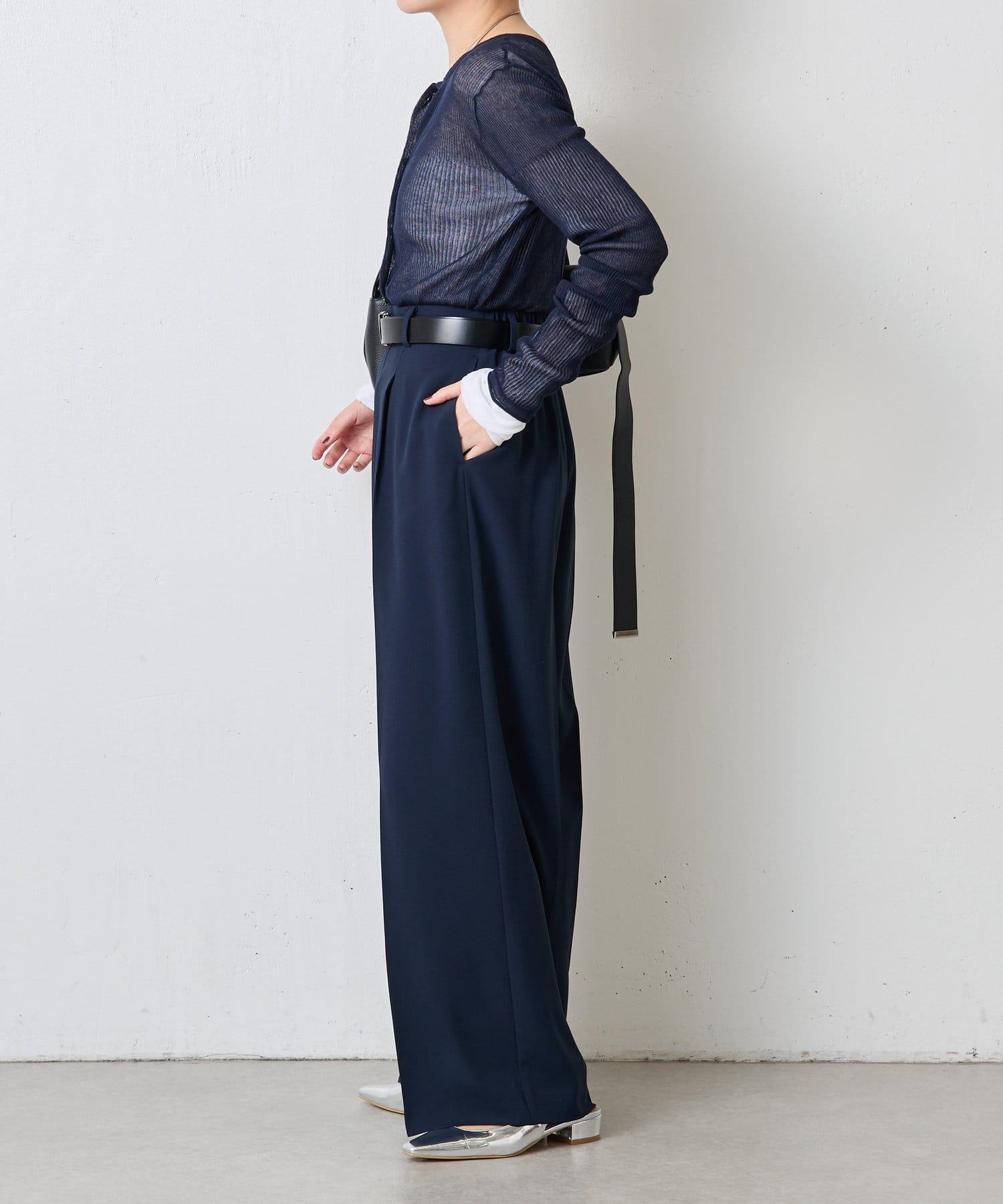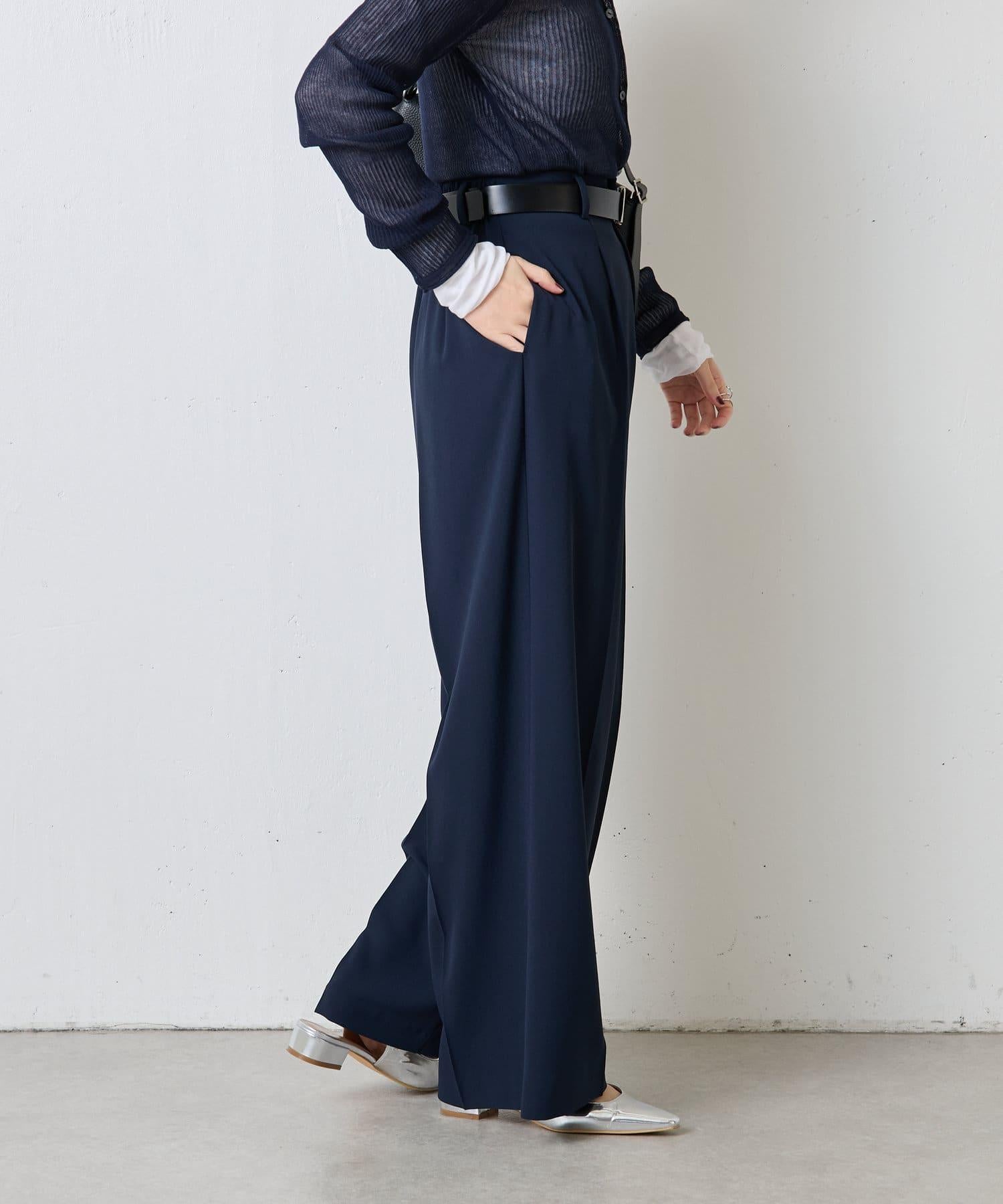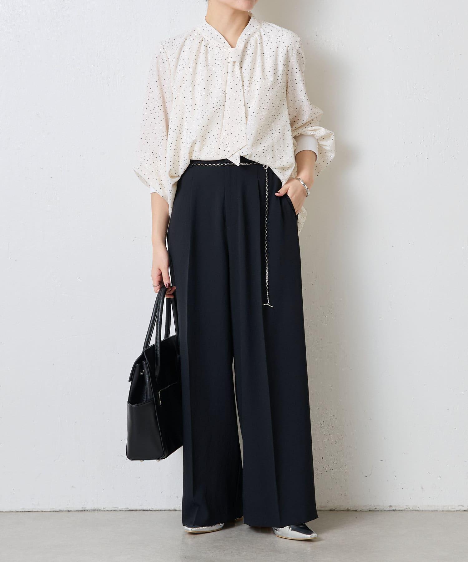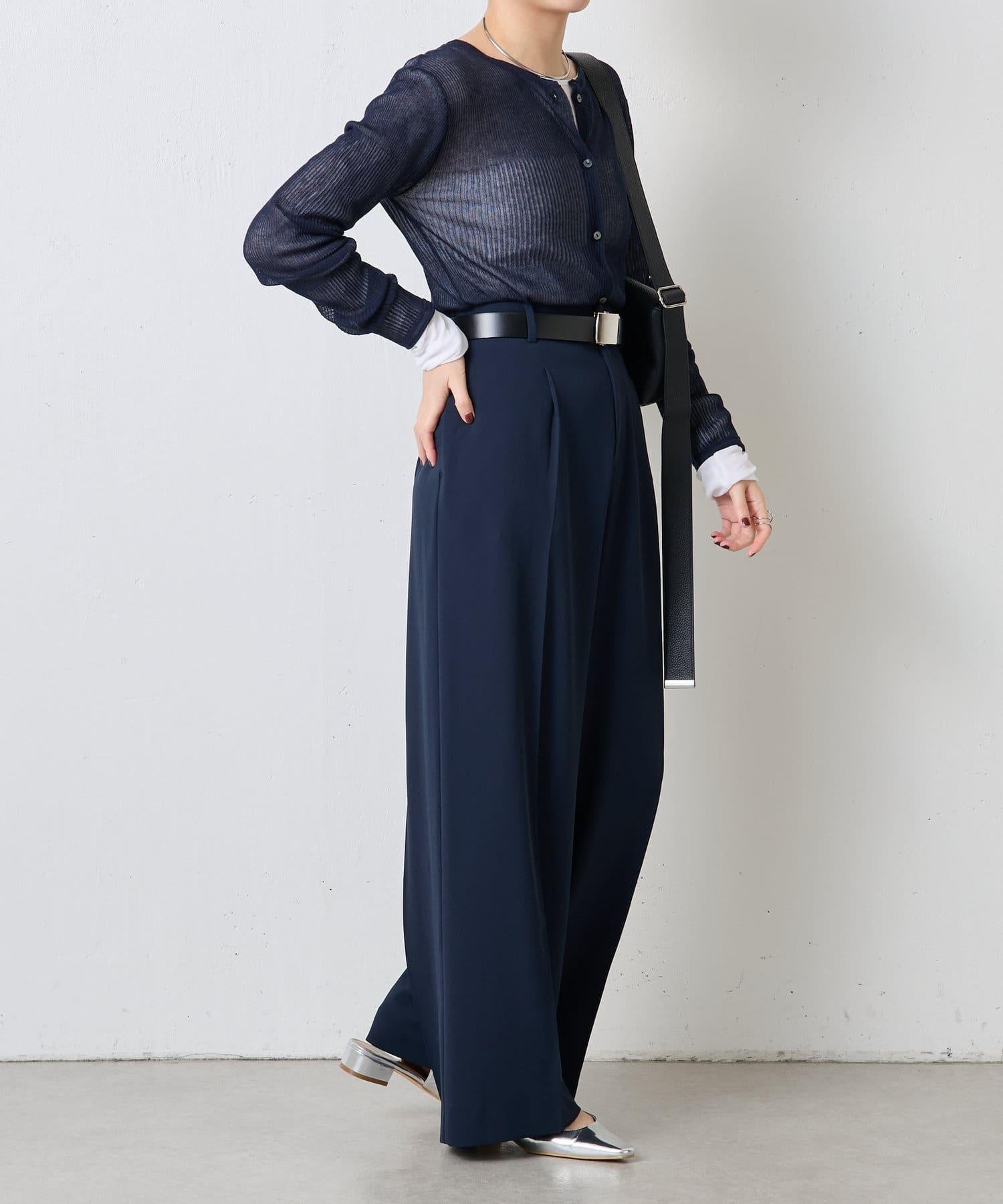 面料手感寬鬆,即使是闊腿褲也能穿出乾淨利落的感覺。