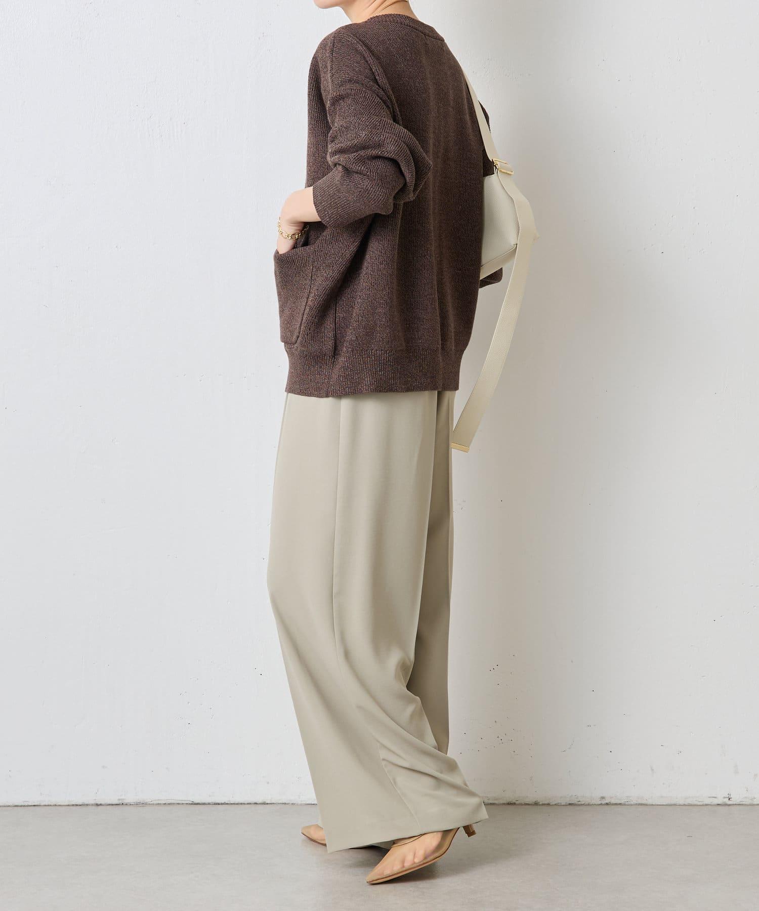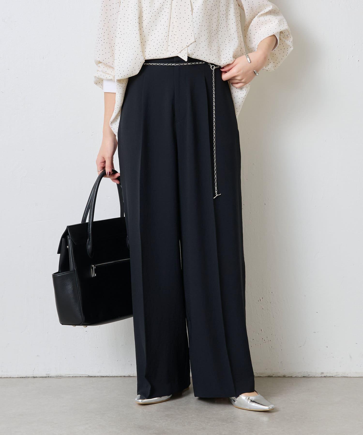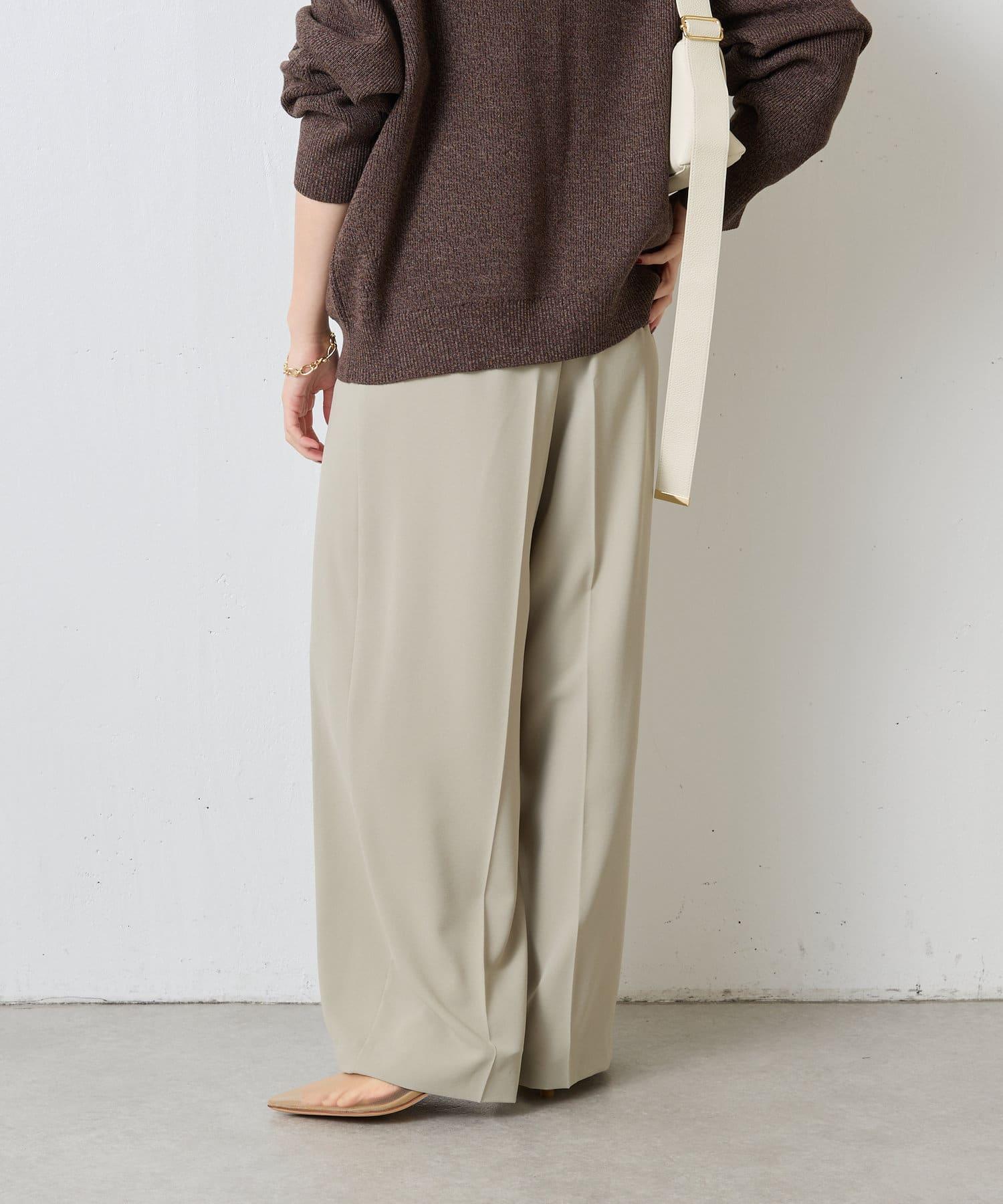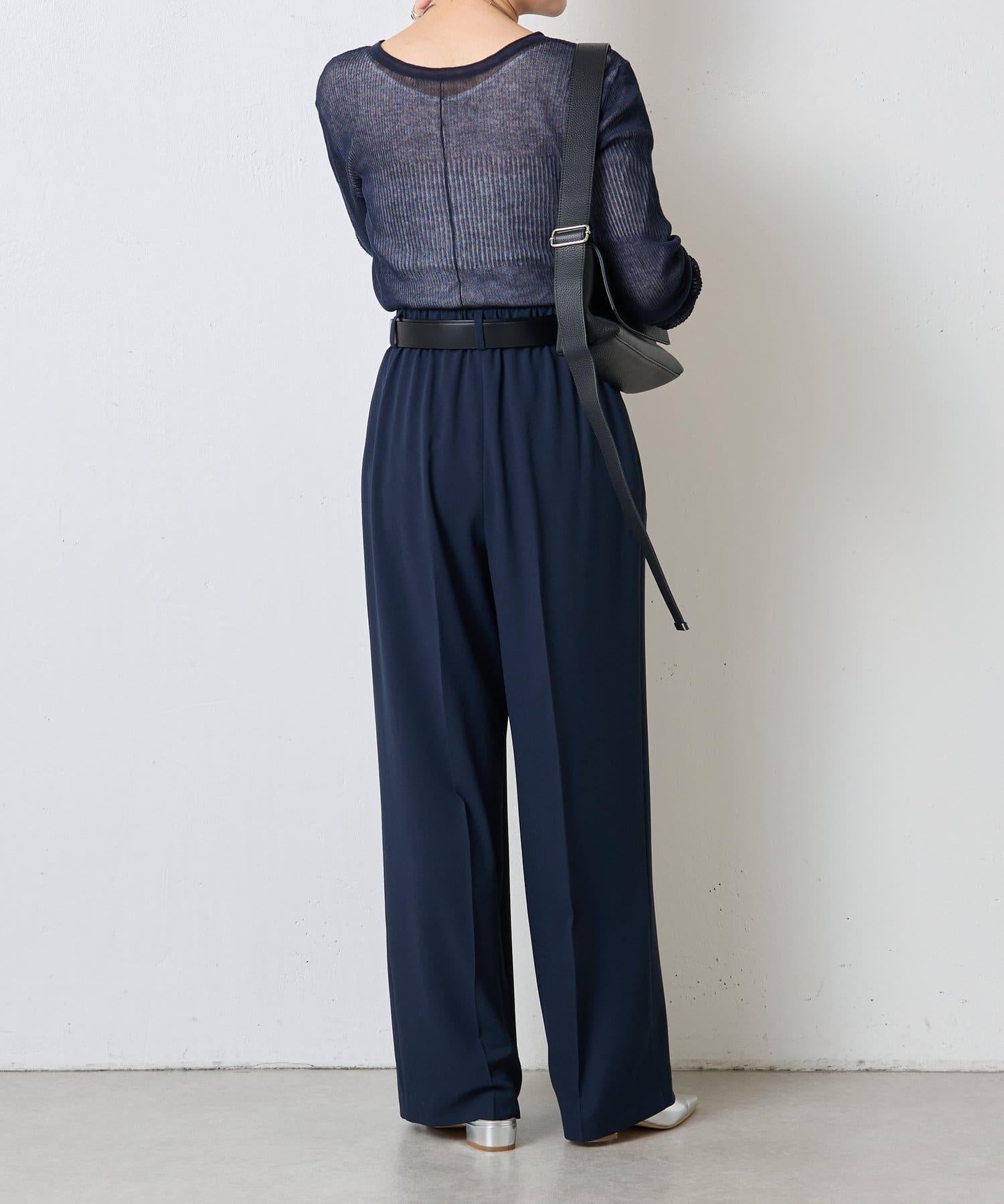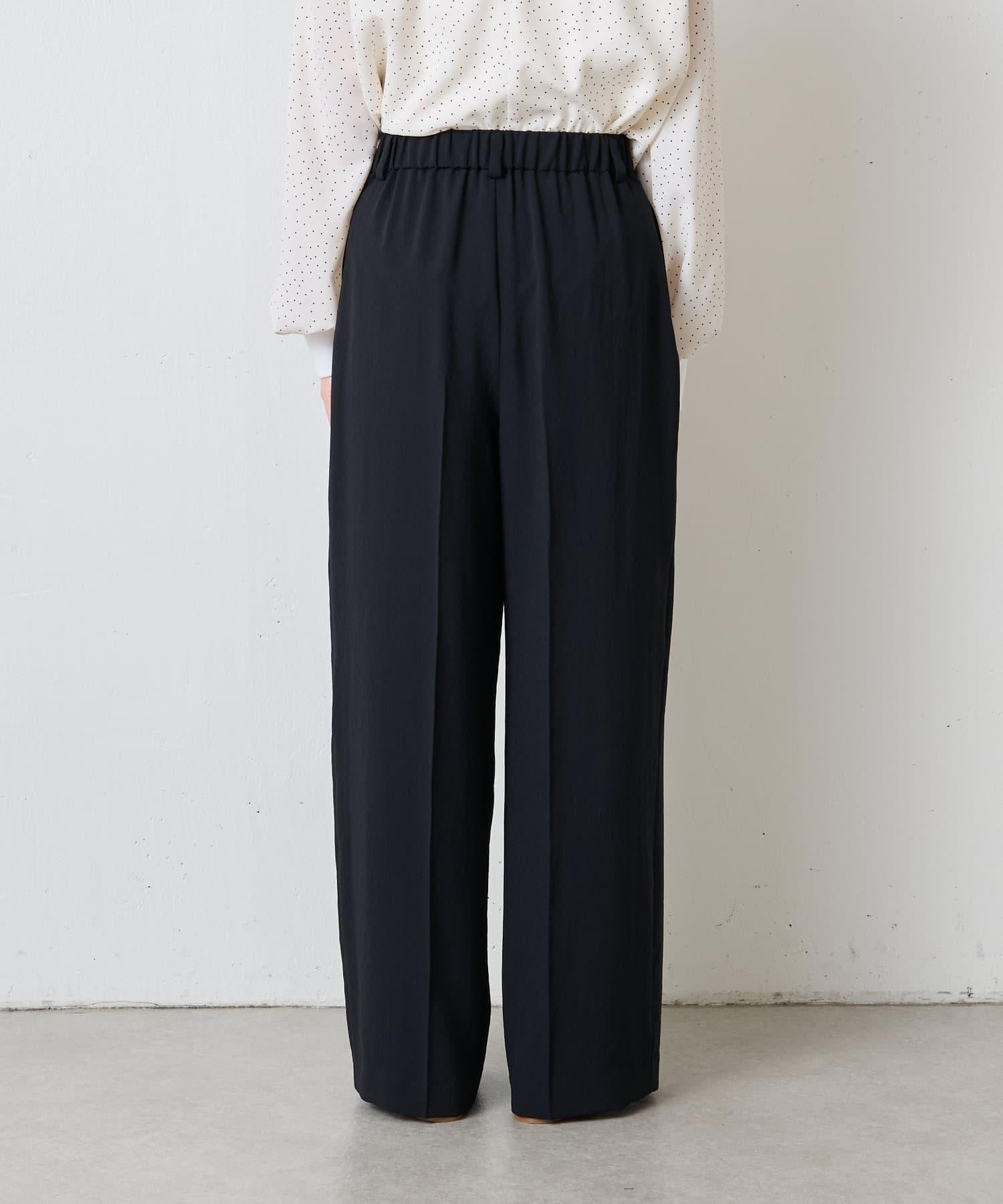 面料手感寬鬆,即使是闊腿褲也能穿出乾淨利落的感覺。