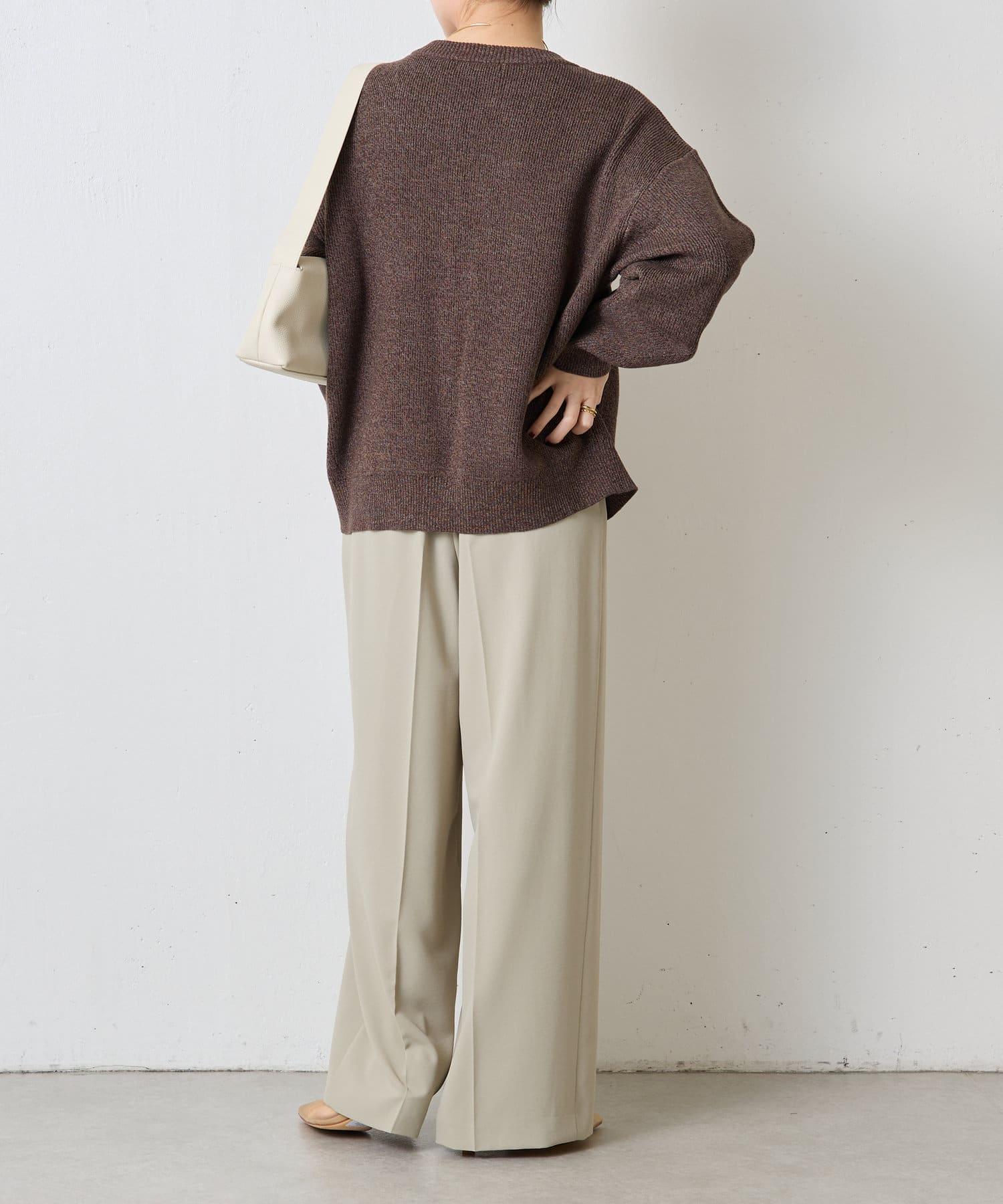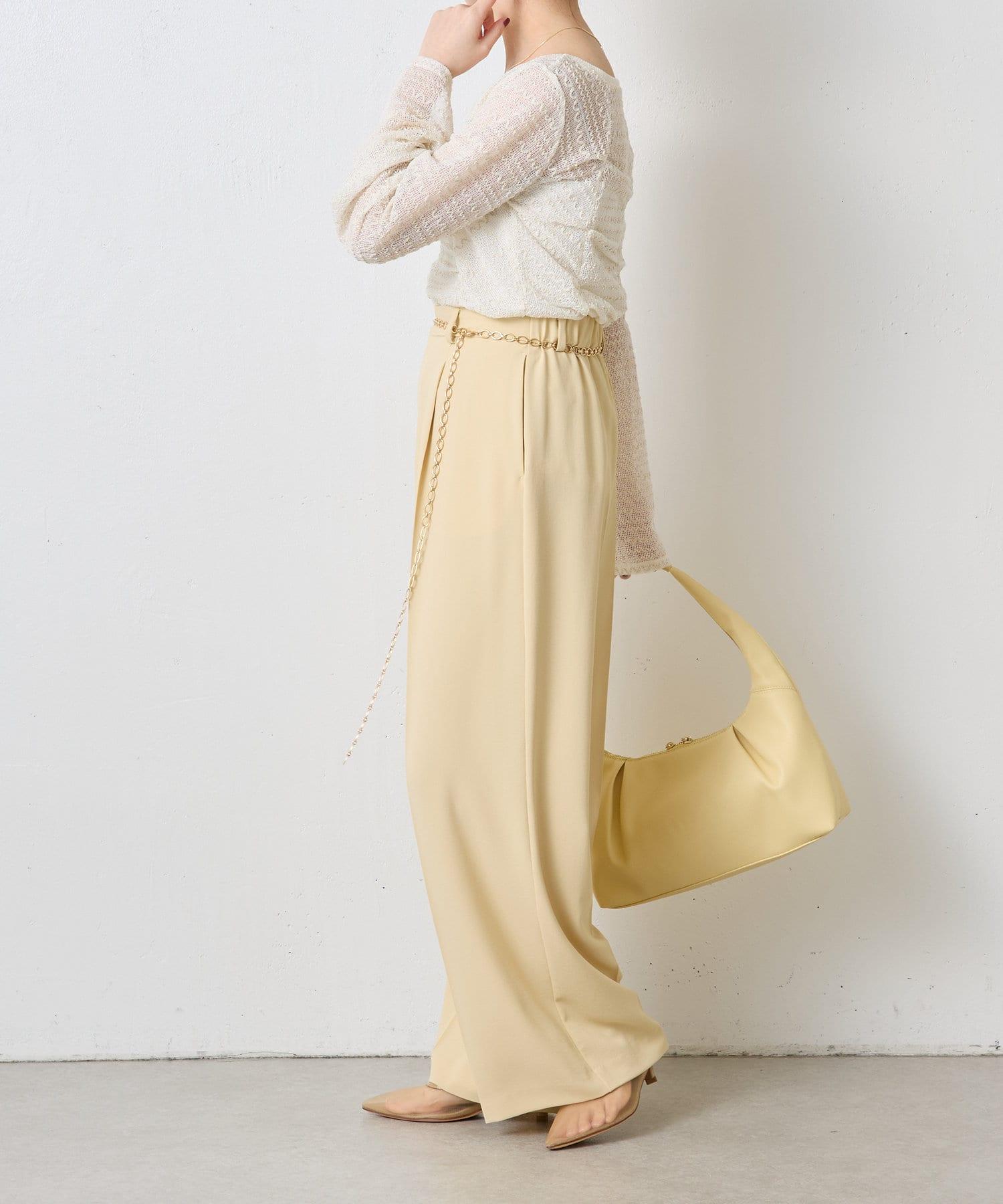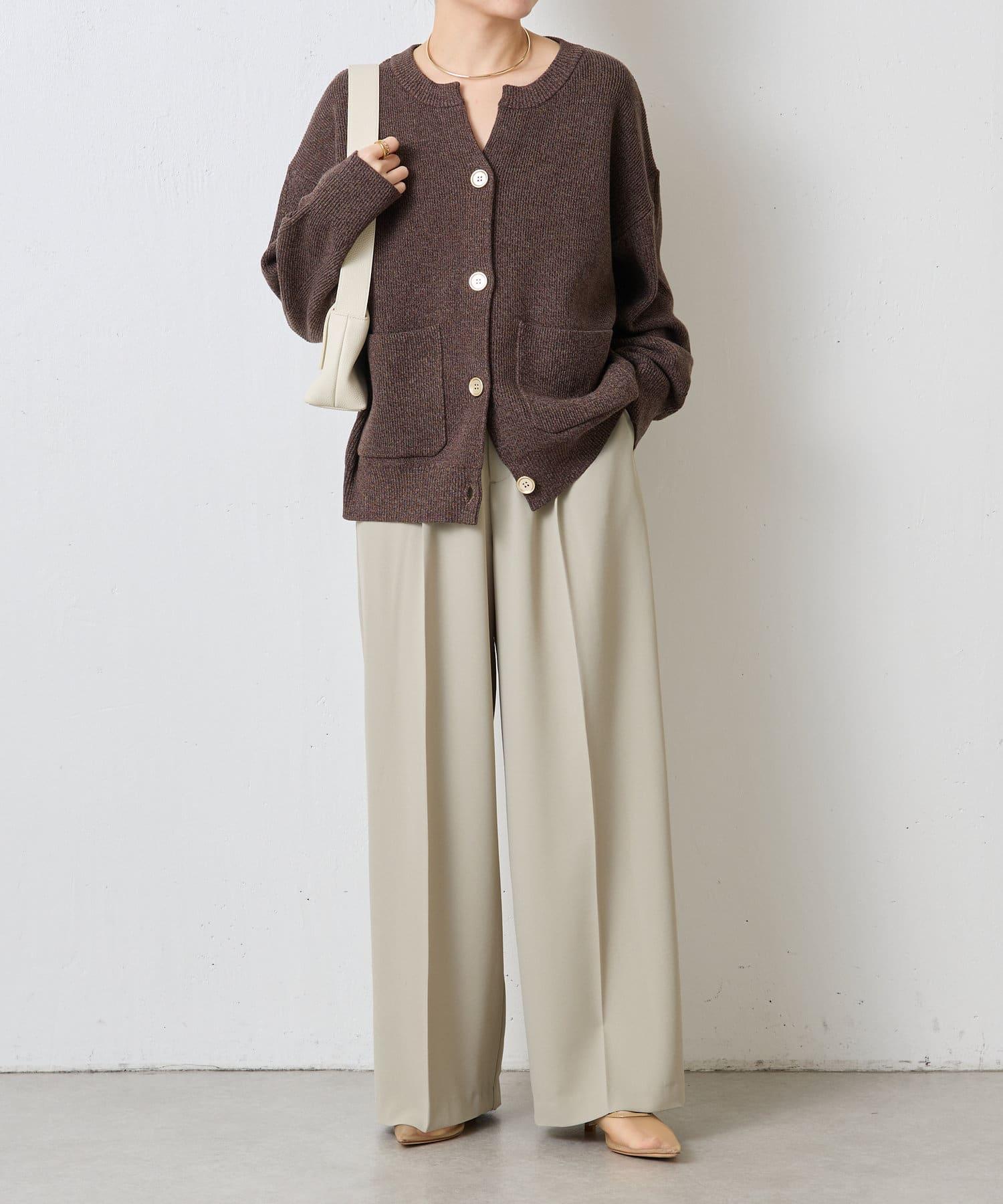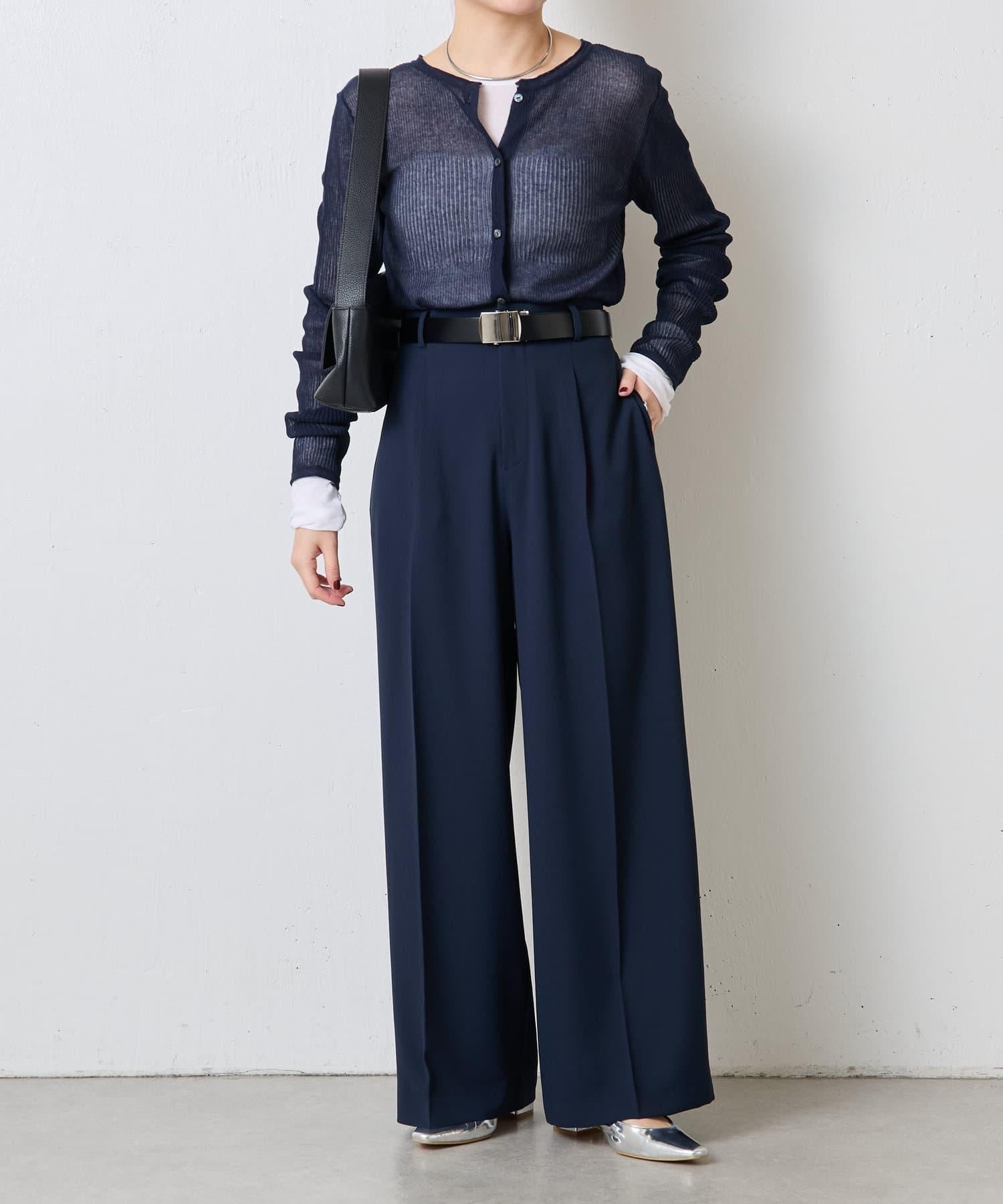 面料手感寬鬆,即使是闊腿褲也能穿出乾淨利落的感覺。