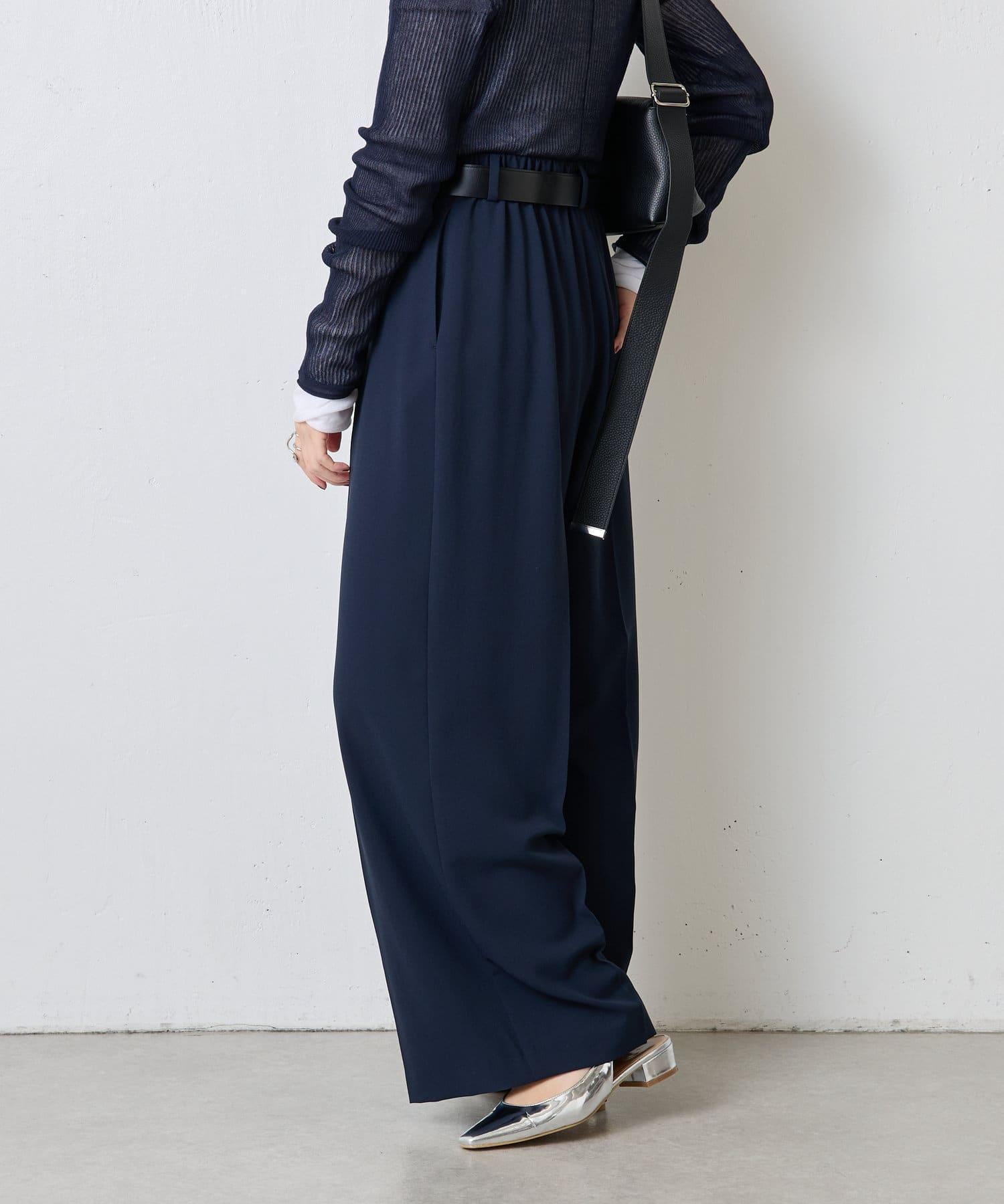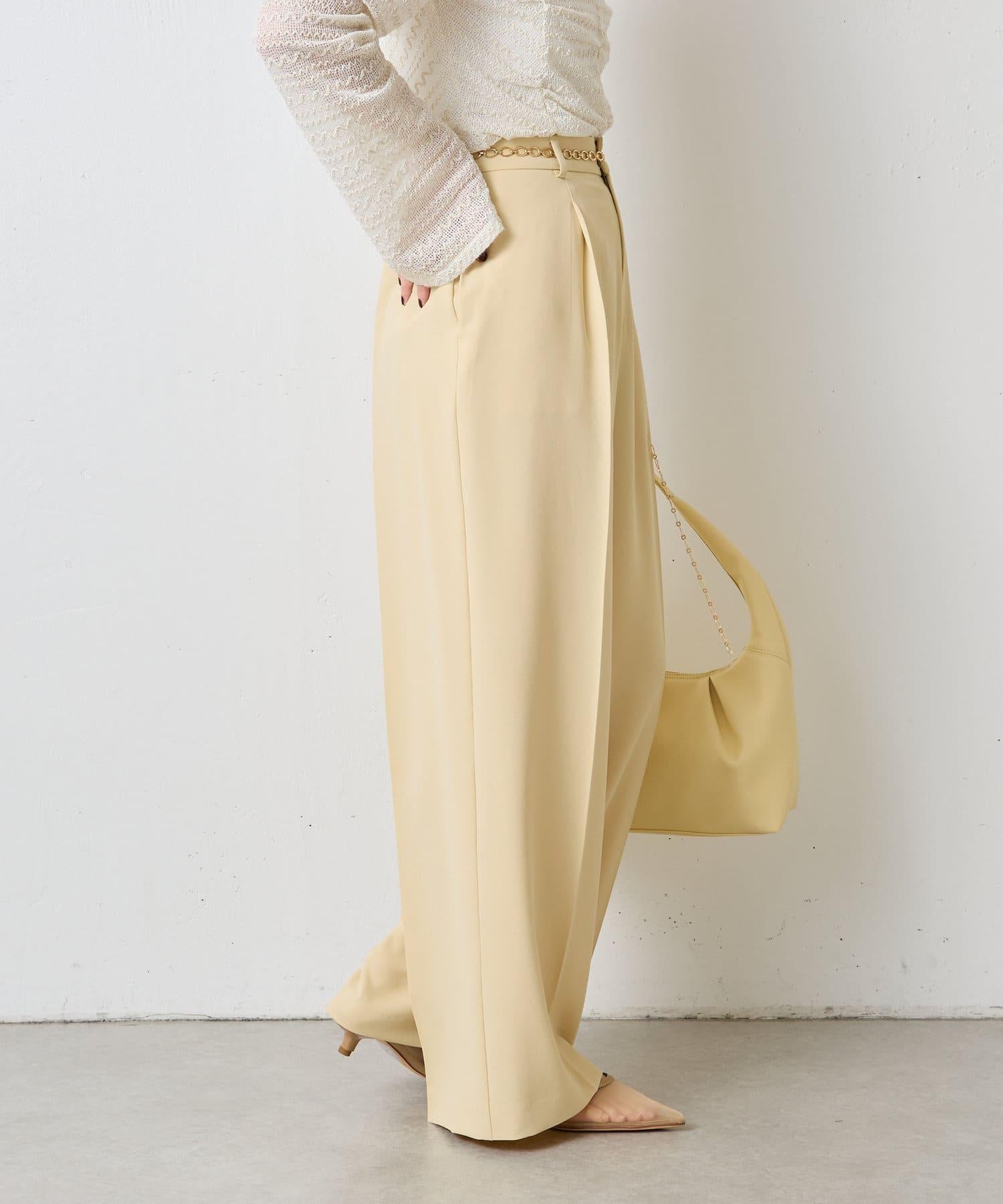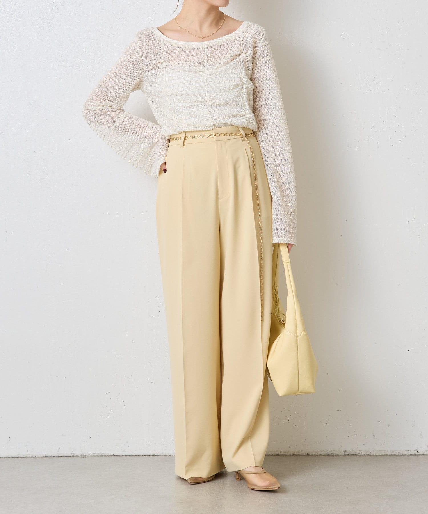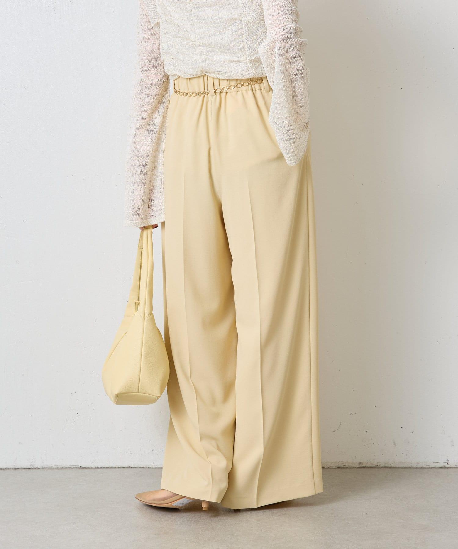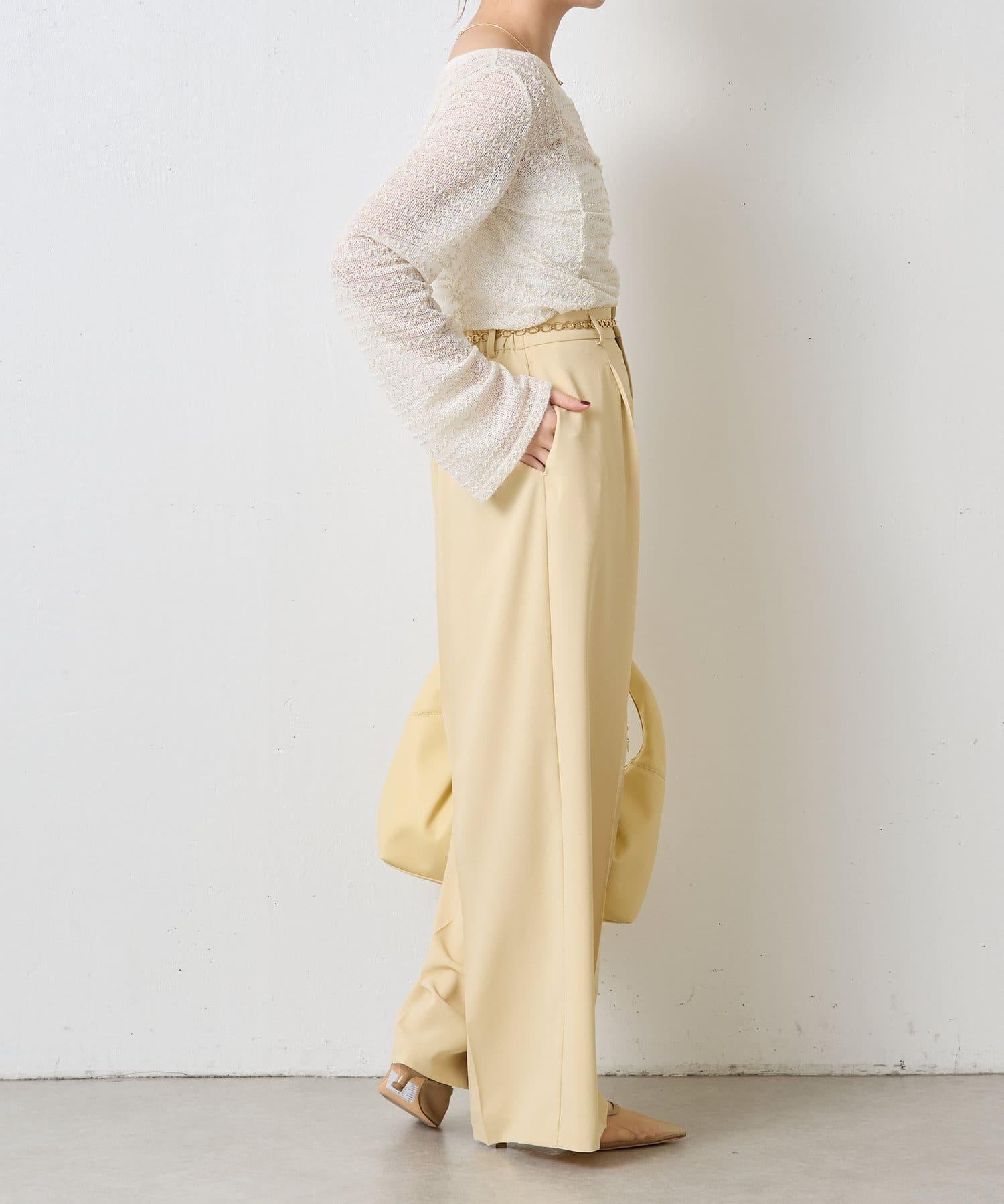 面料手感寬鬆,即使是闊腿褲也能穿出乾淨利落的感覺。