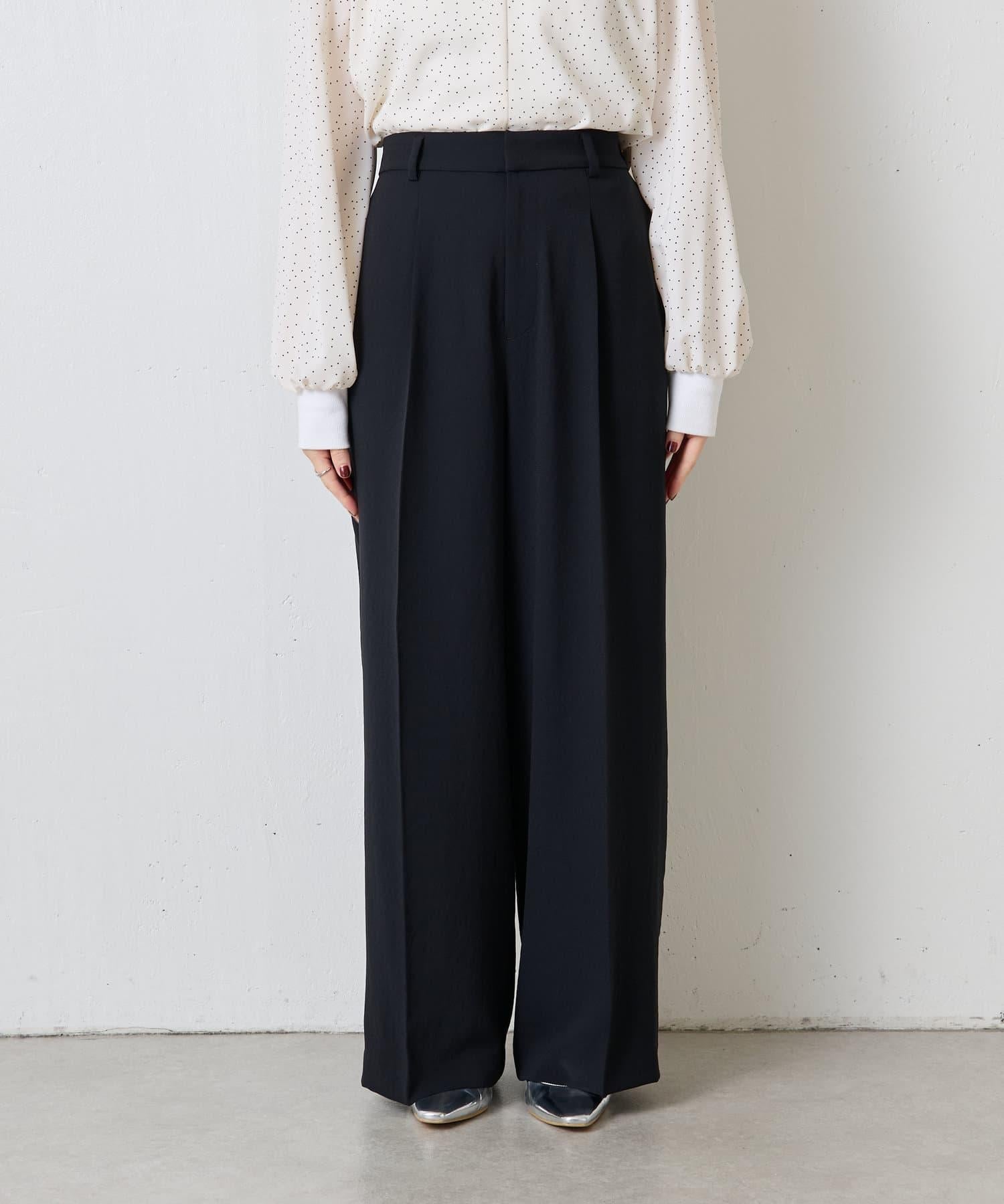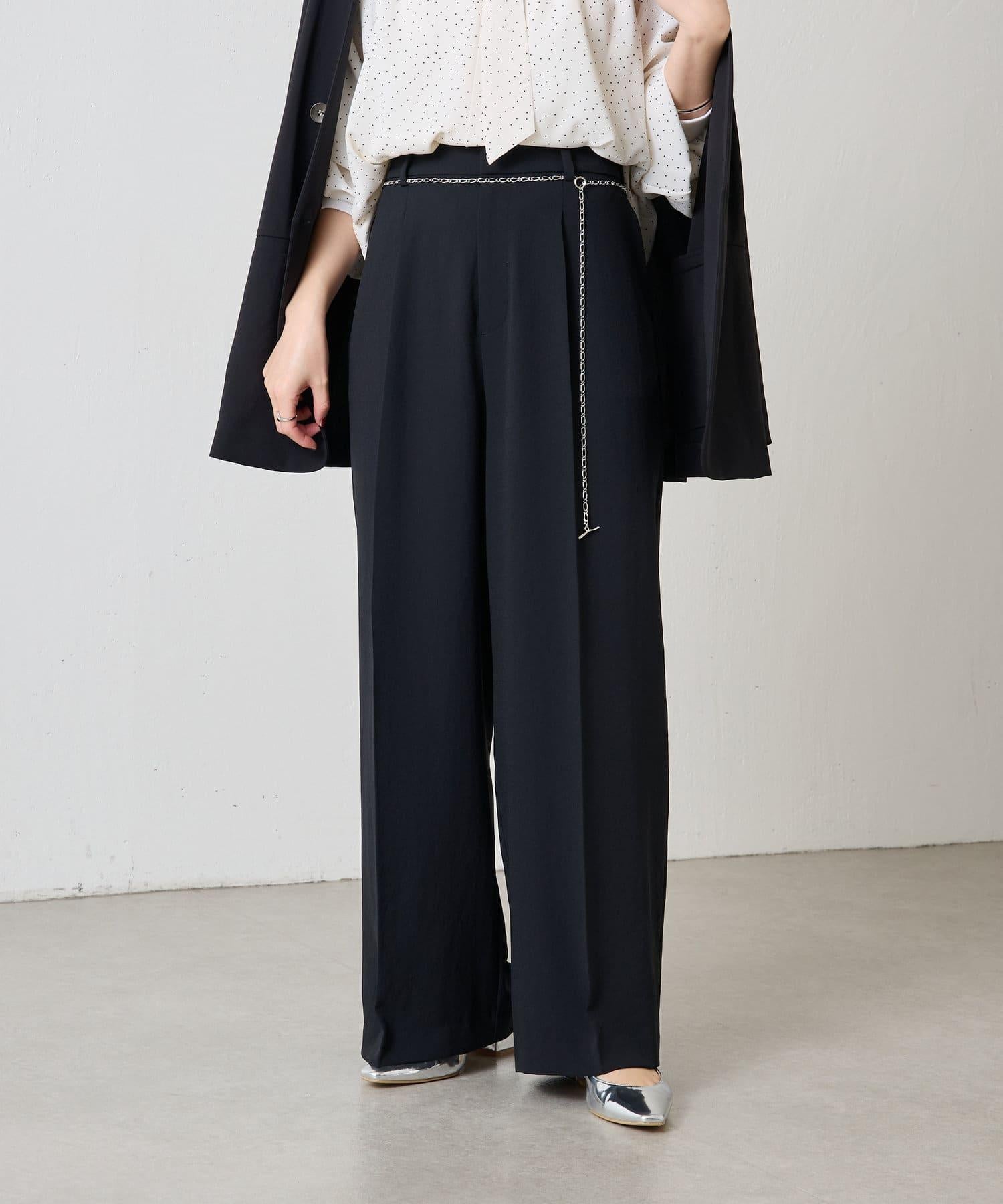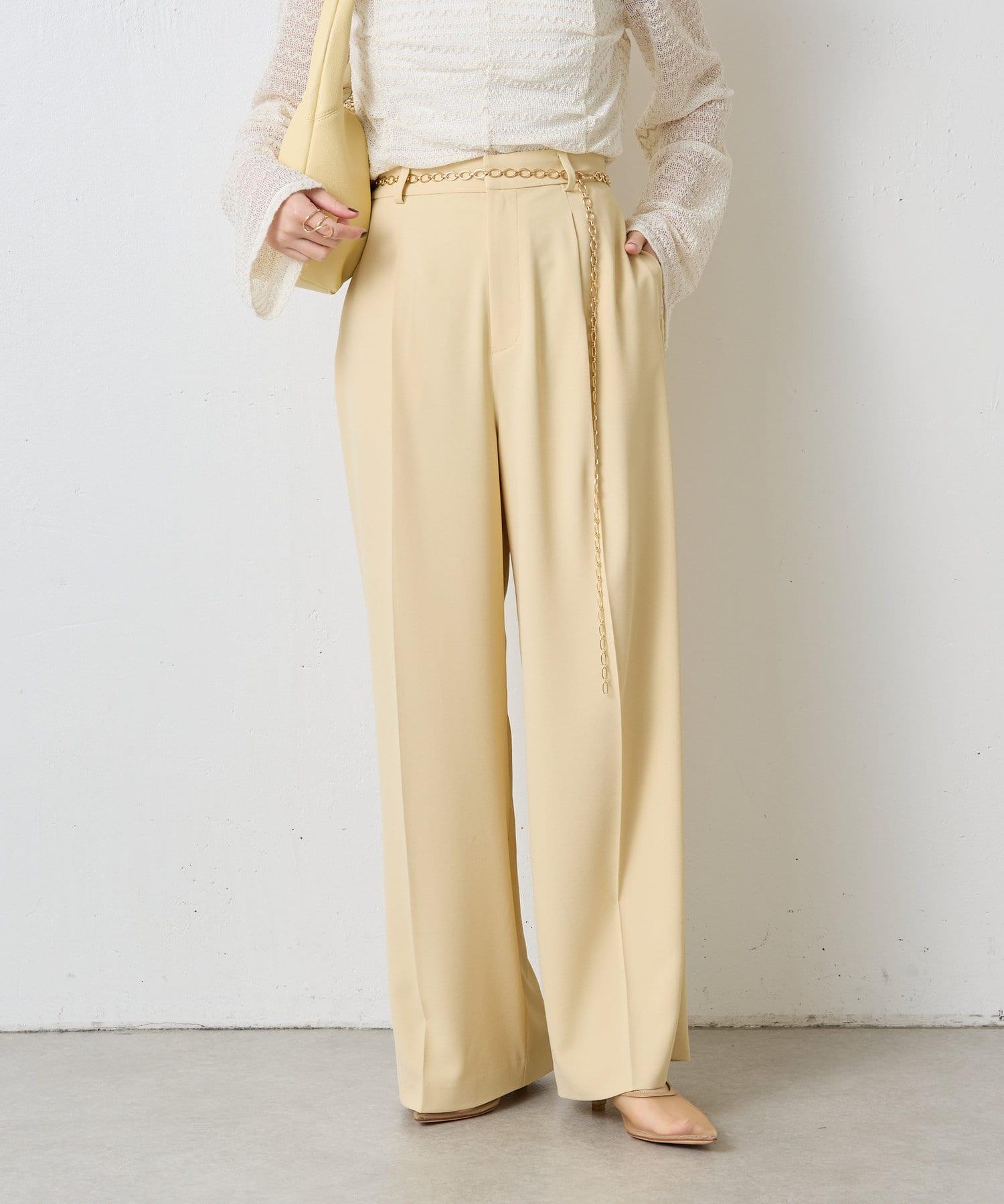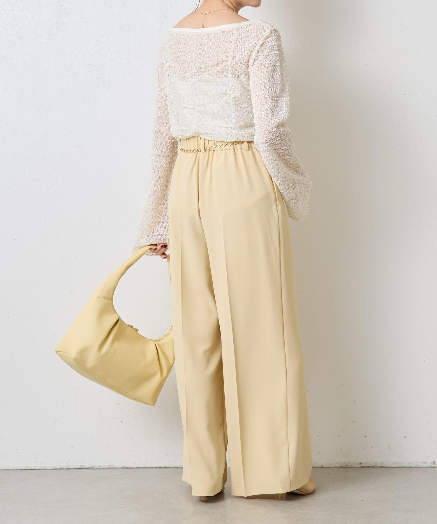 面料手感寬鬆,即使是闊腿褲也能穿出乾淨利落的感覺。