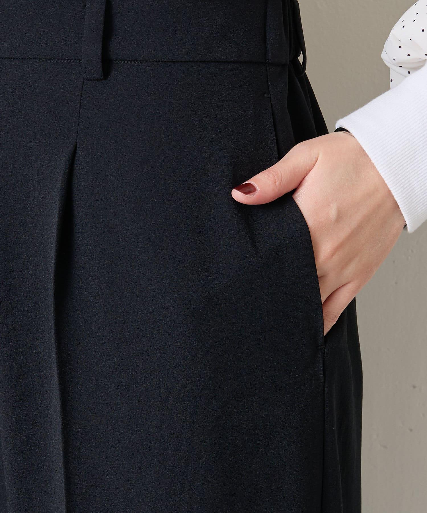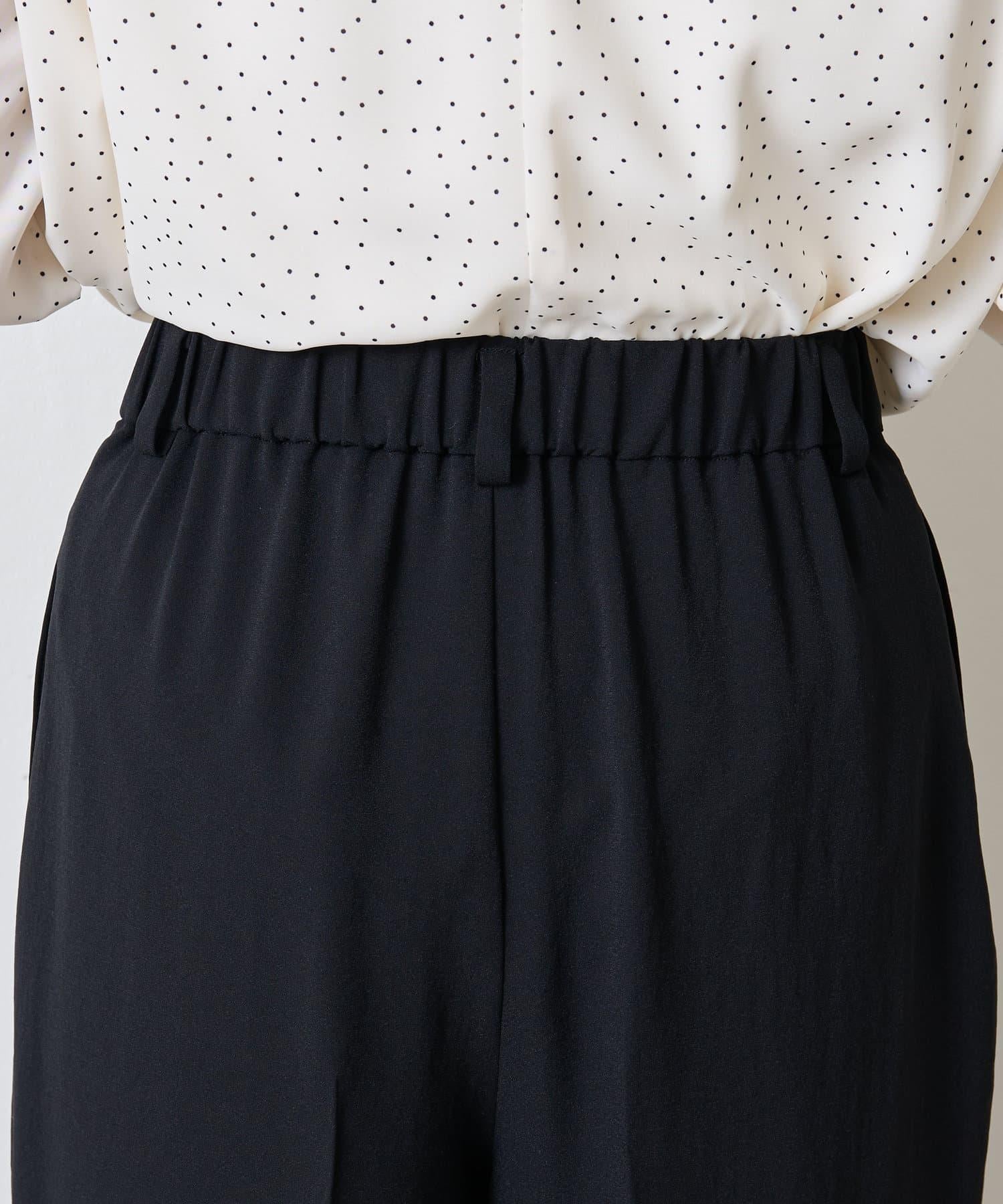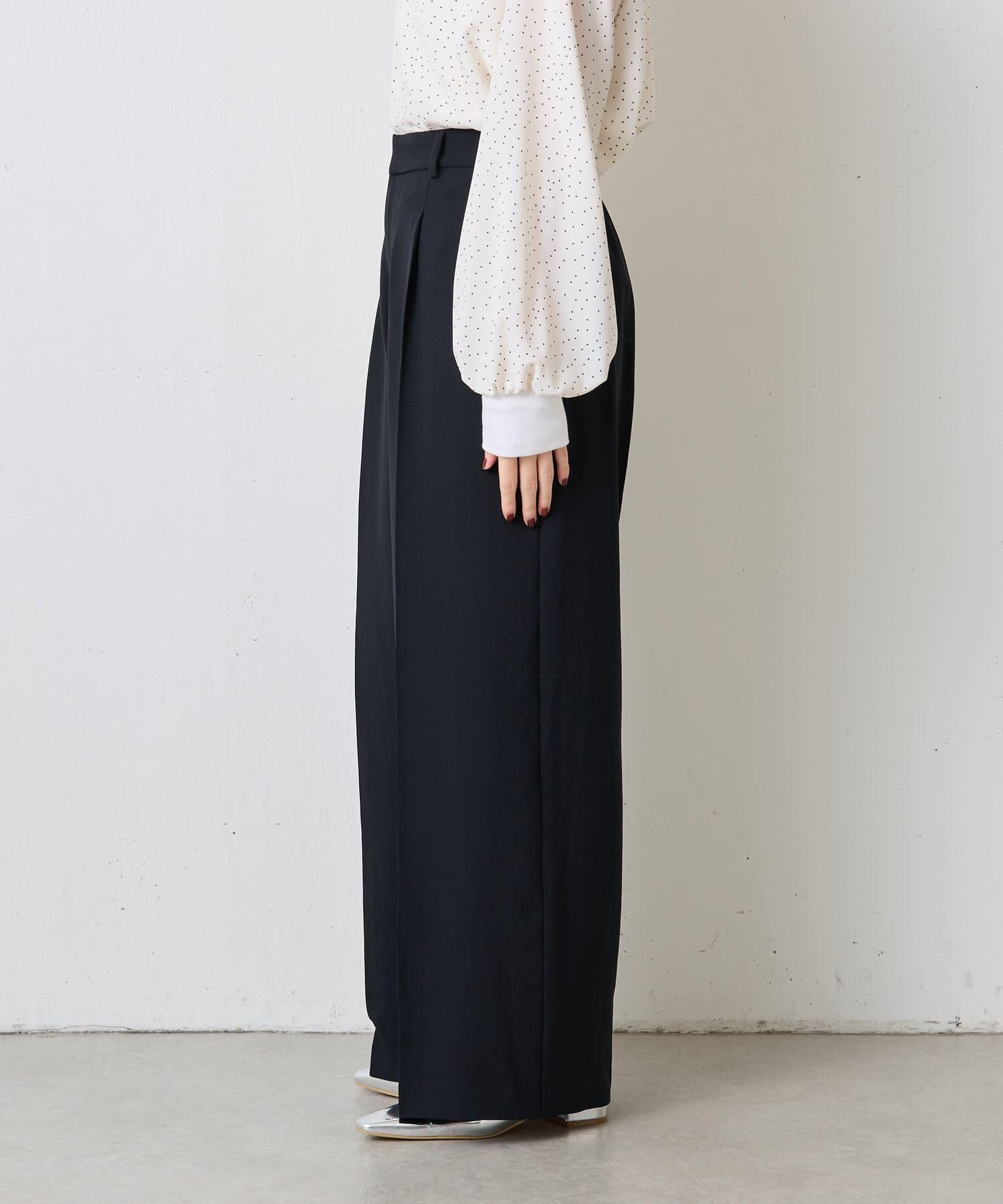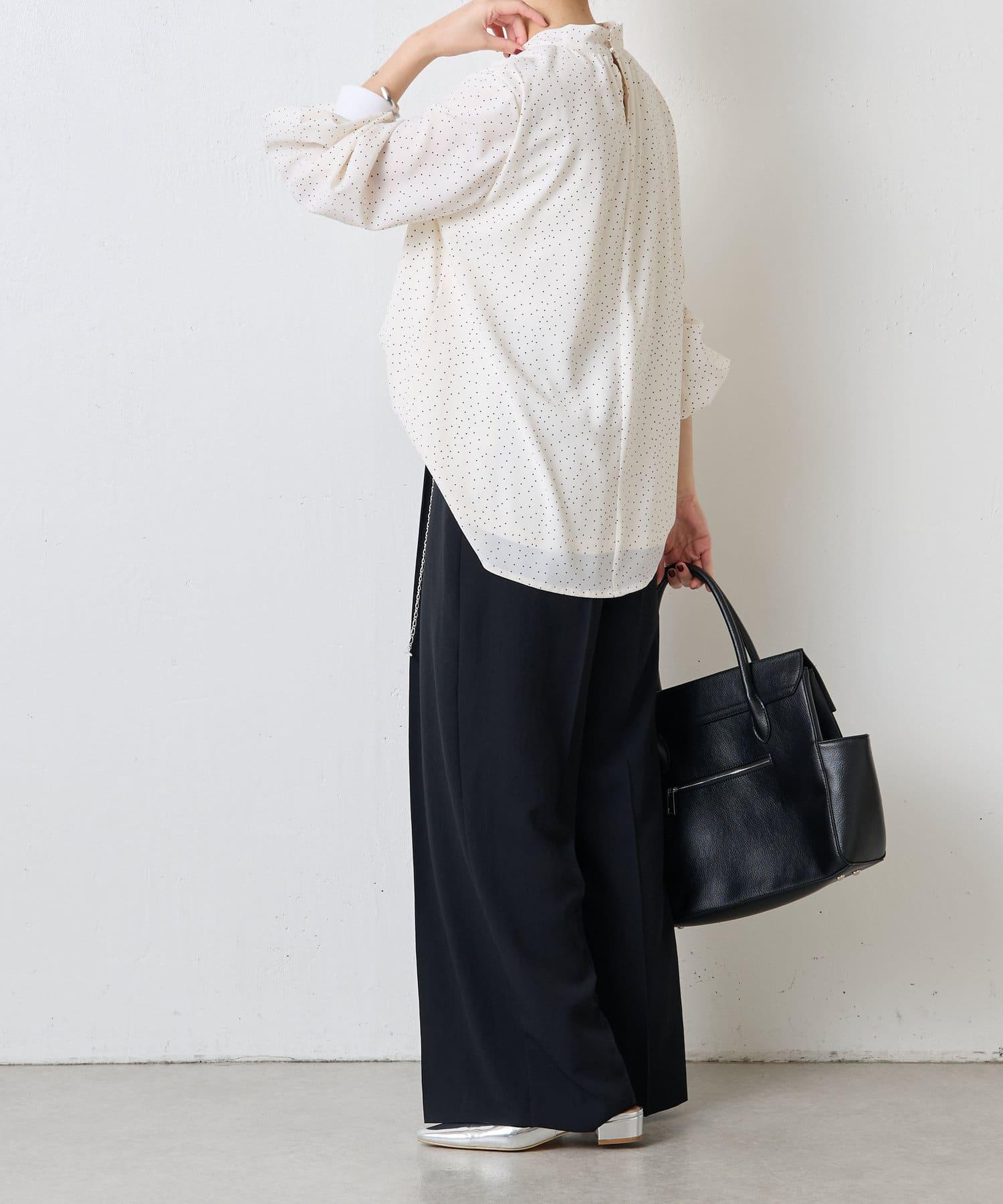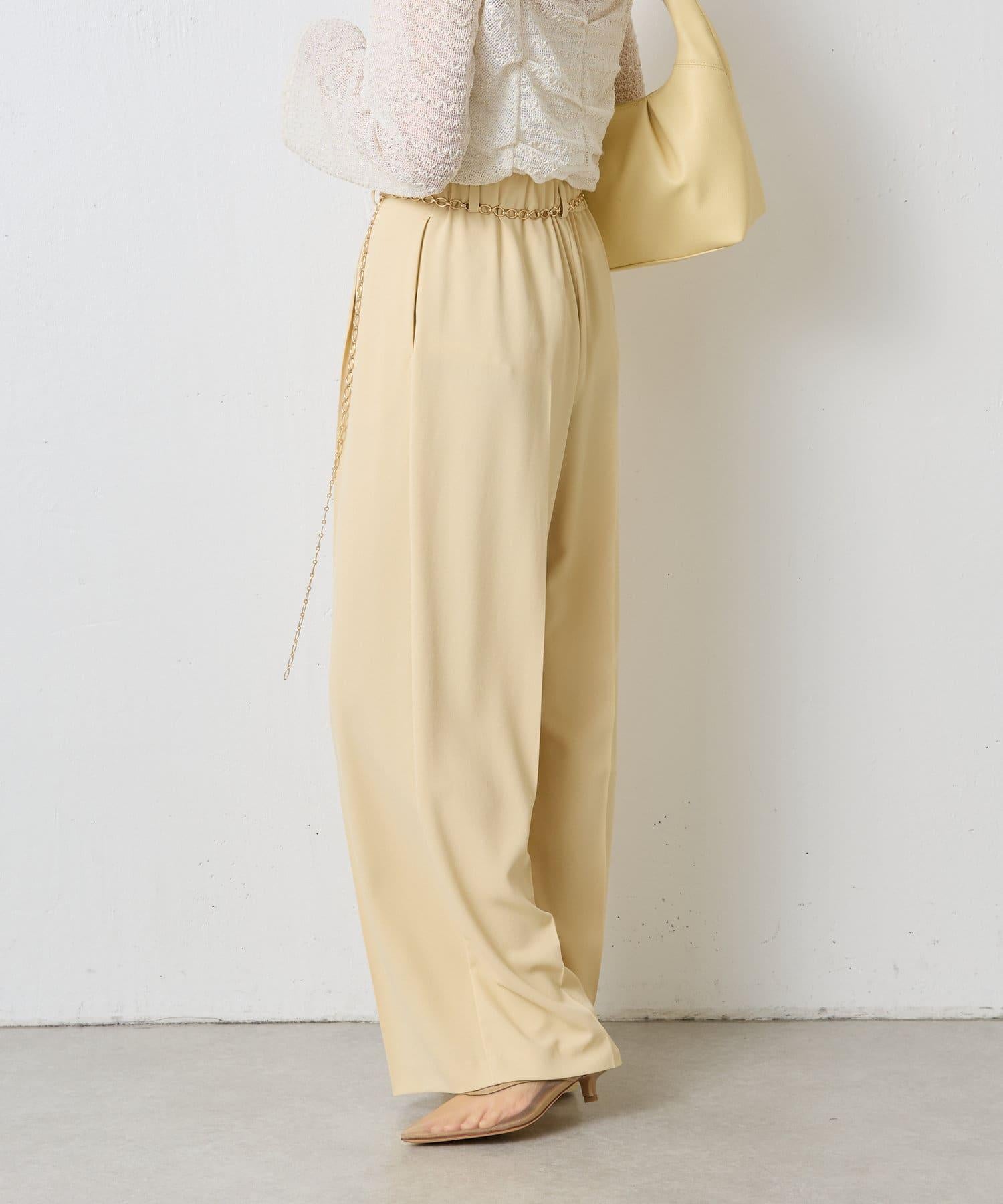 面料手感寬鬆,即使是闊腿褲也能穿出乾淨利落的感覺。