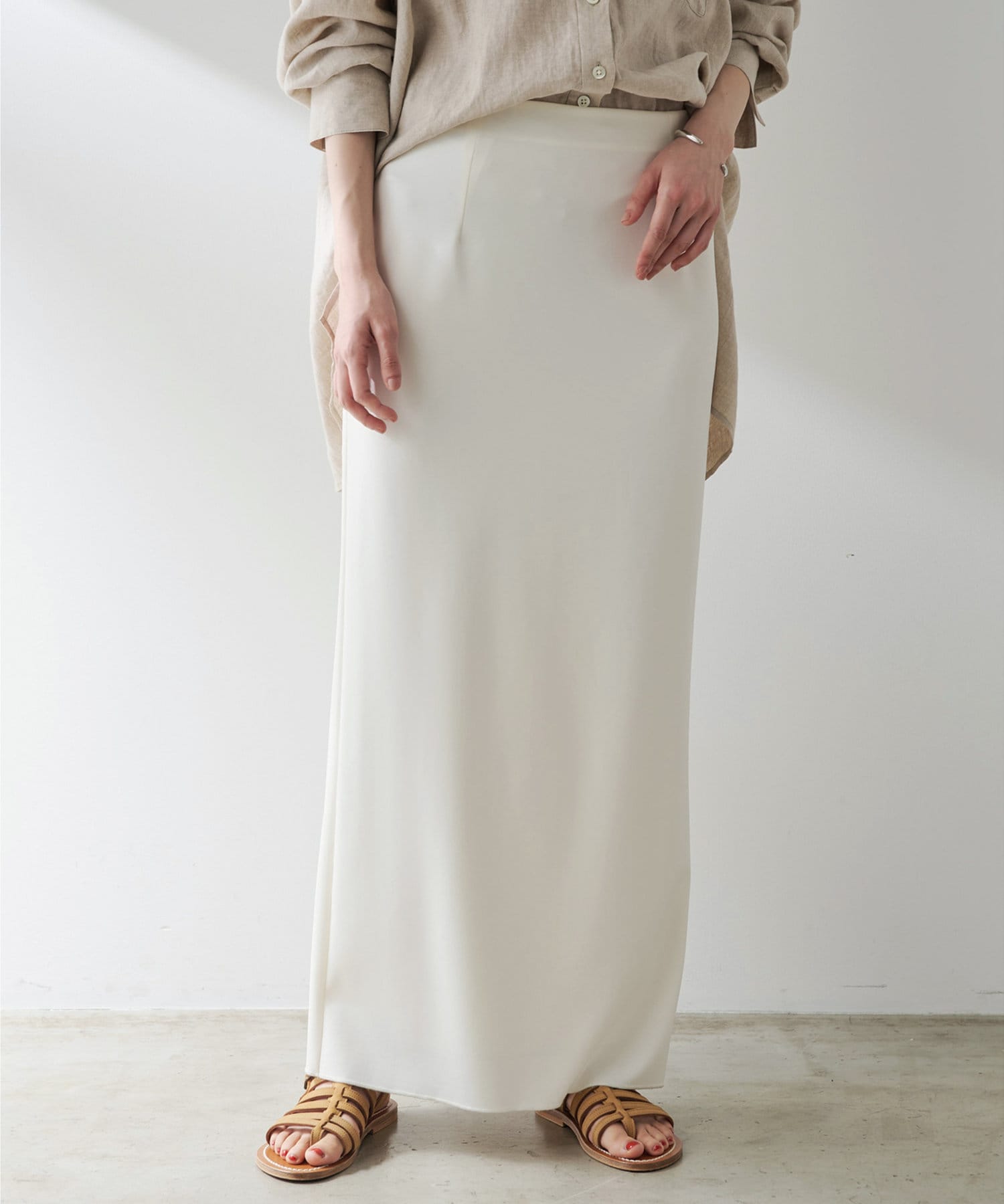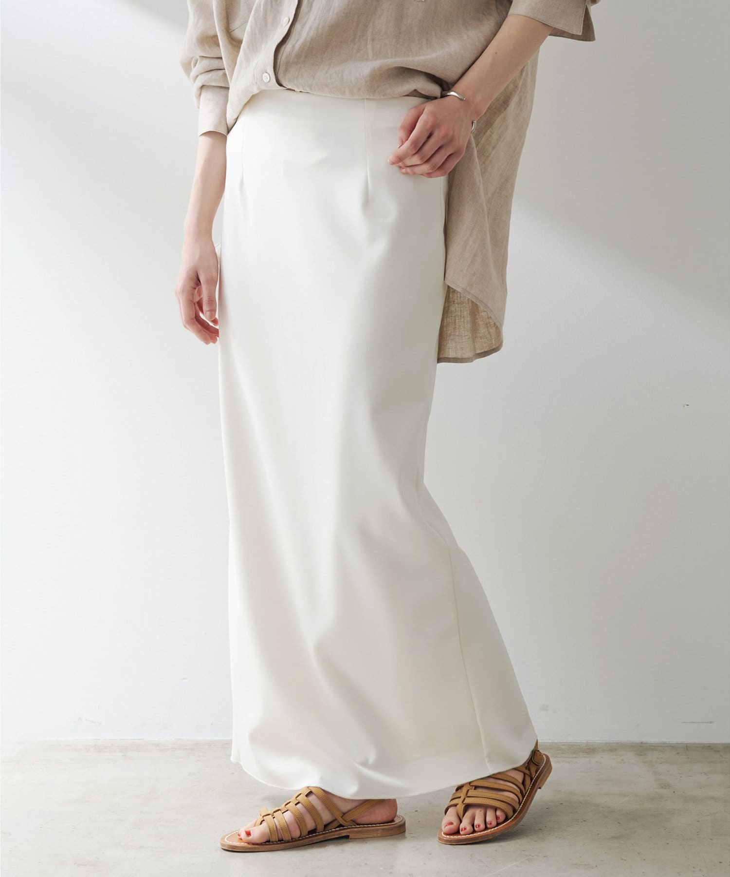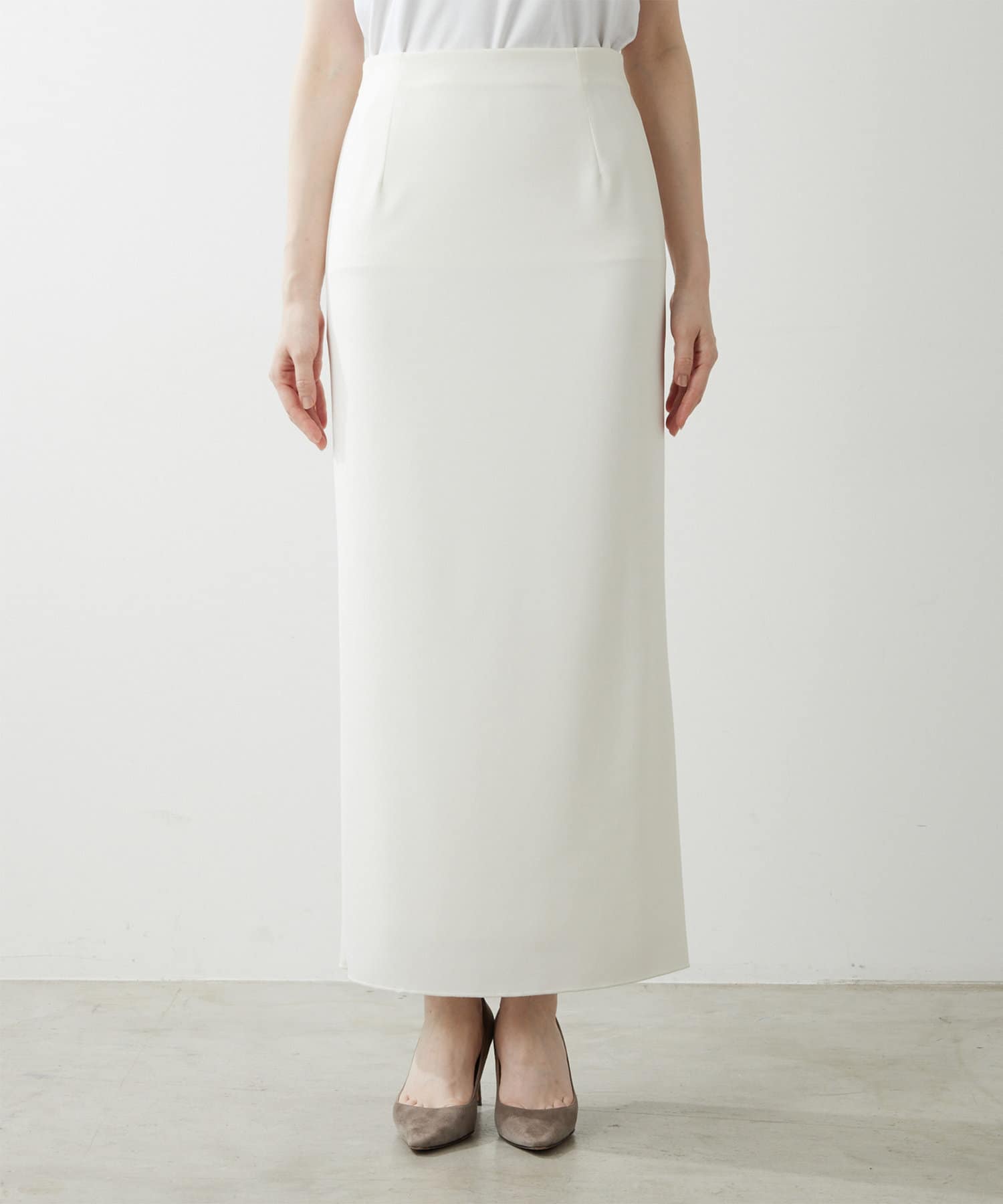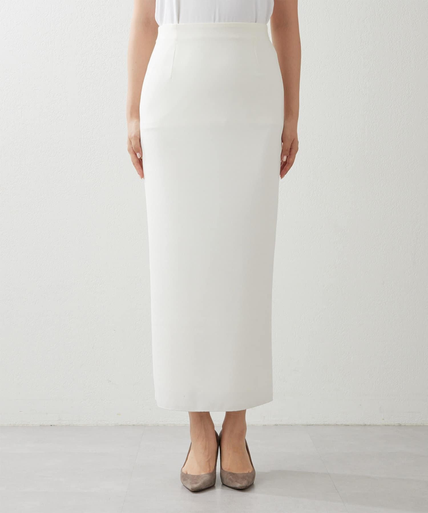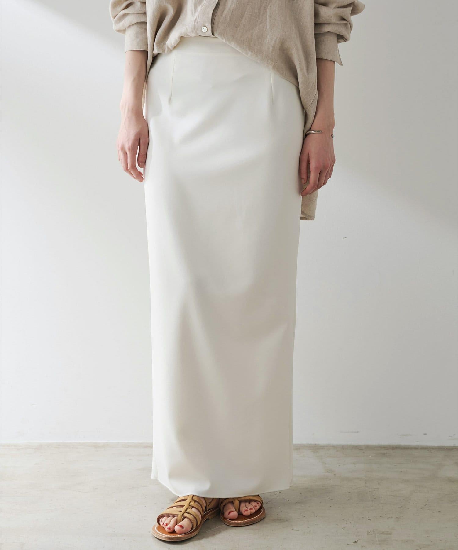 長款裙襬整齊垂落,給人乾淨利落的感覺,高腰設計更顯時尚。