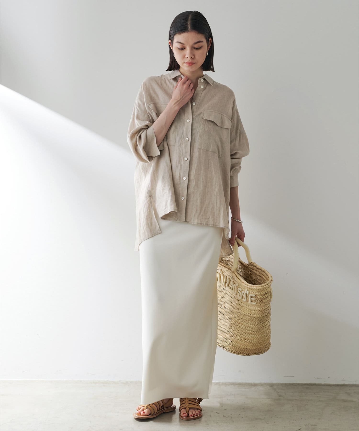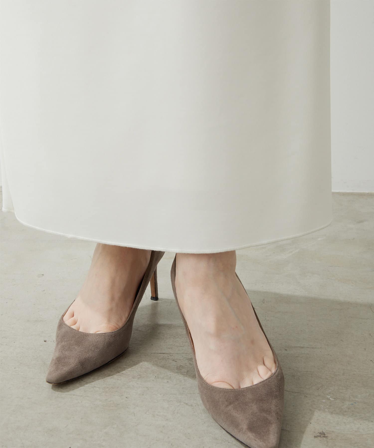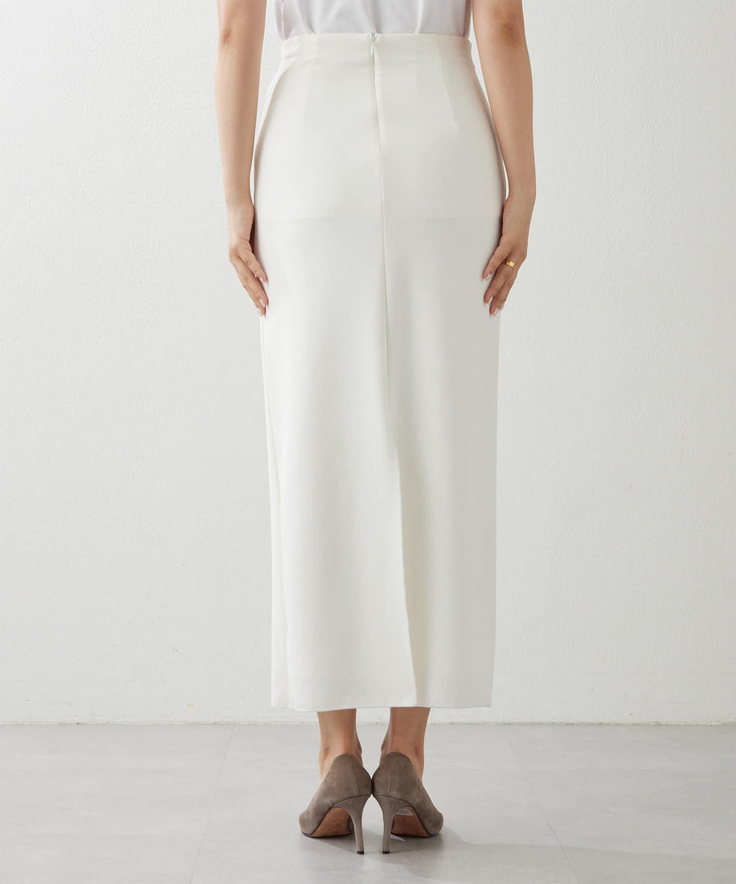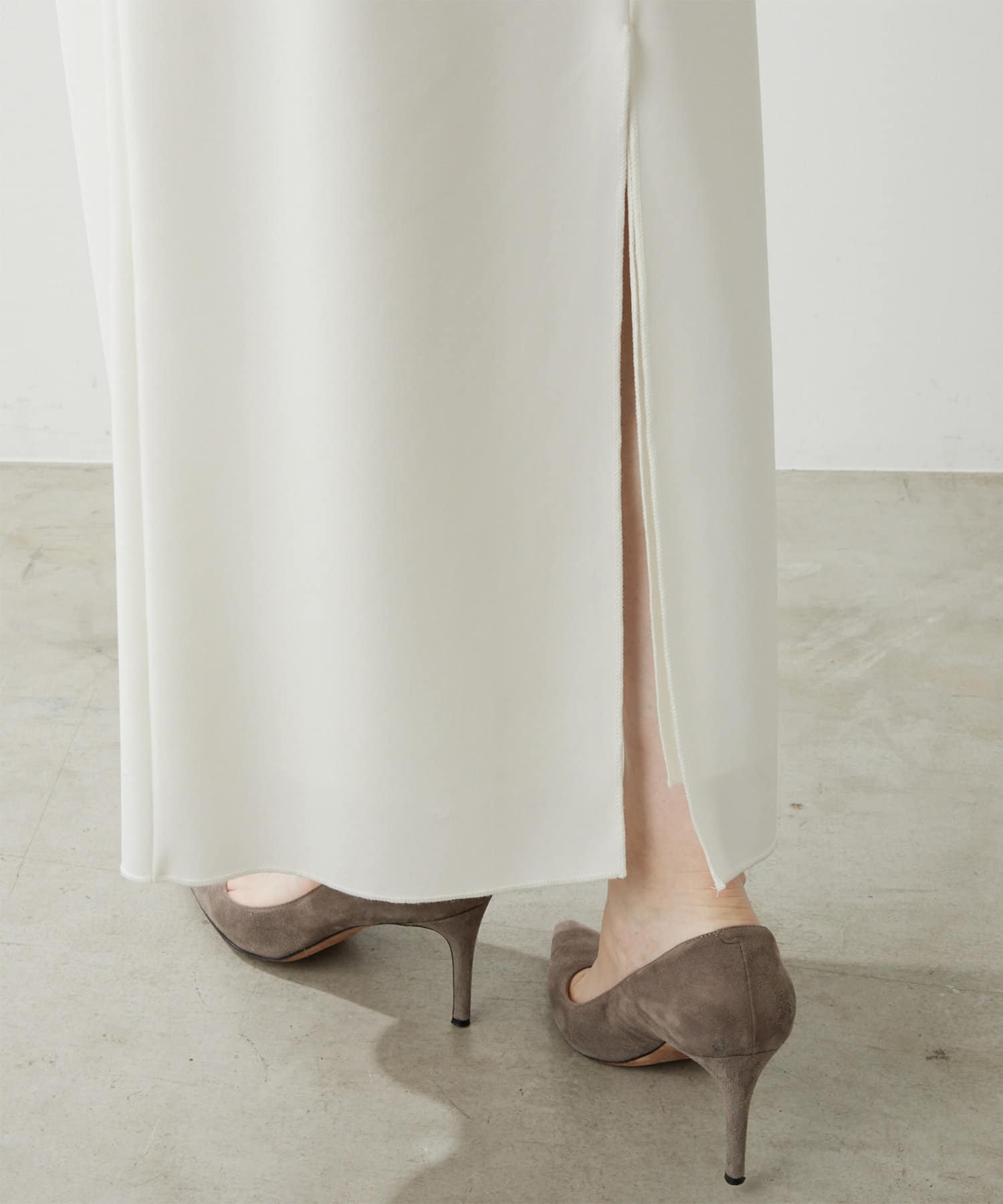 長款裙襬整齊垂落,給人乾淨利落的感覺,高腰設計更顯時尚。