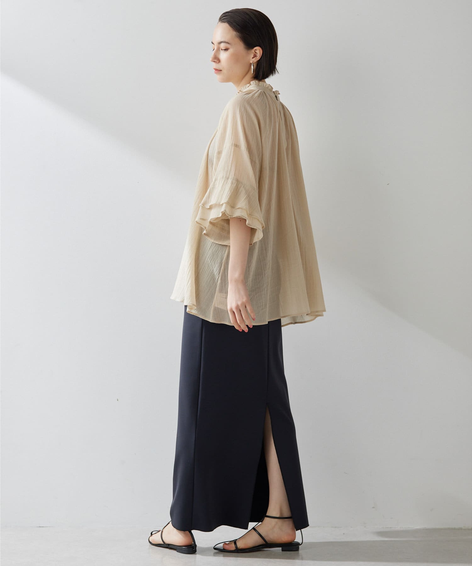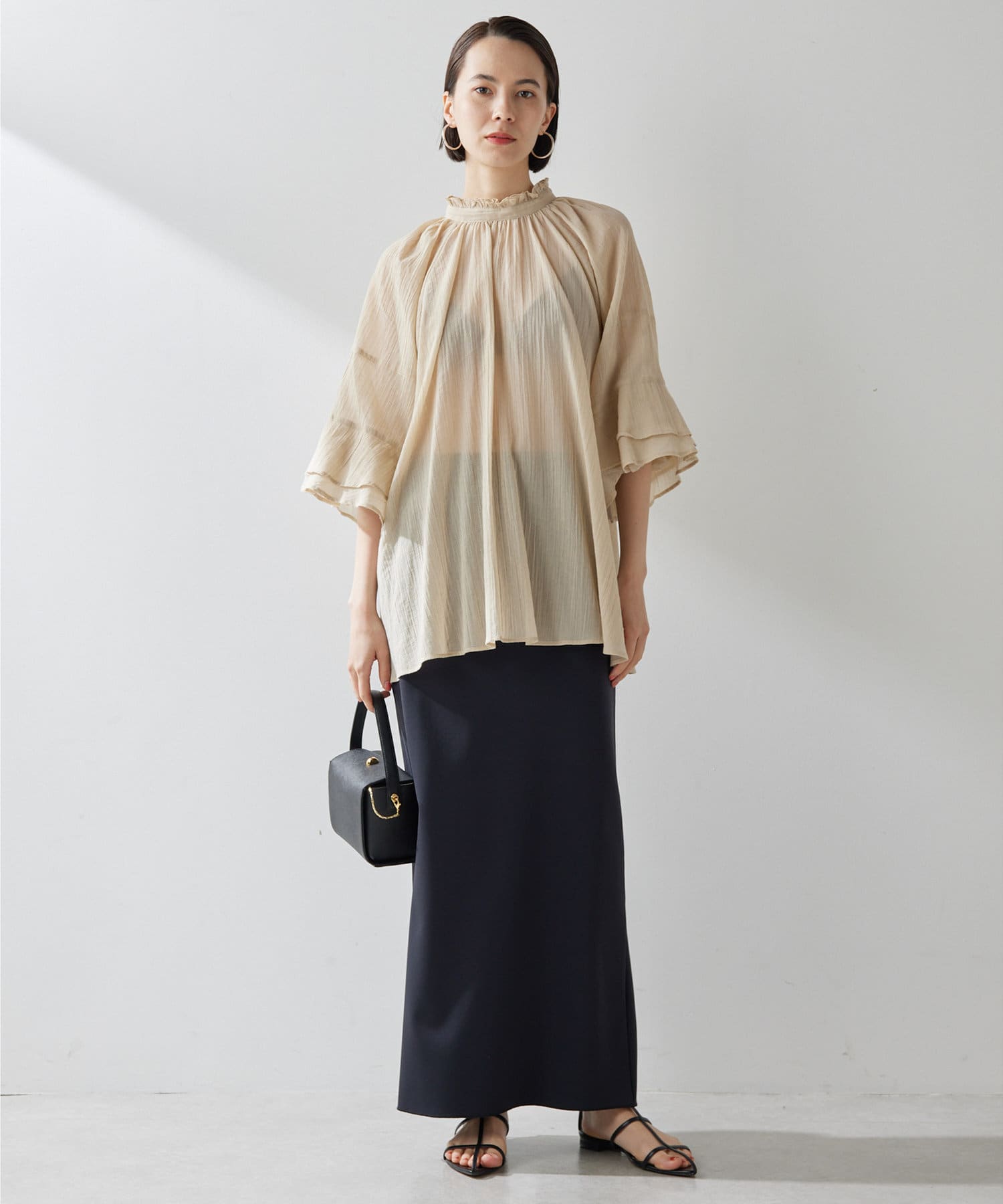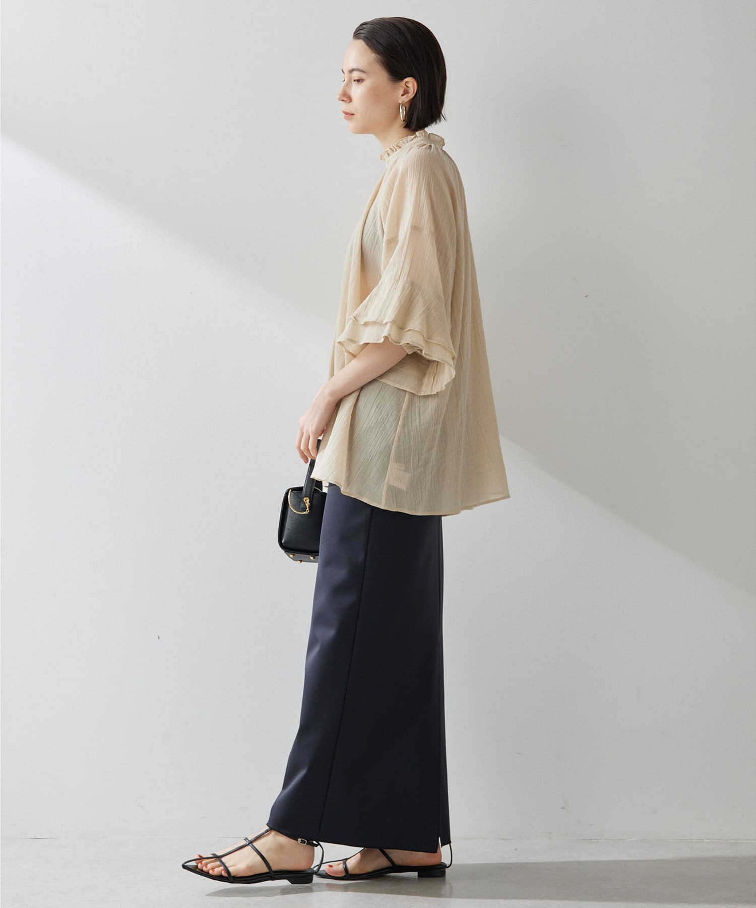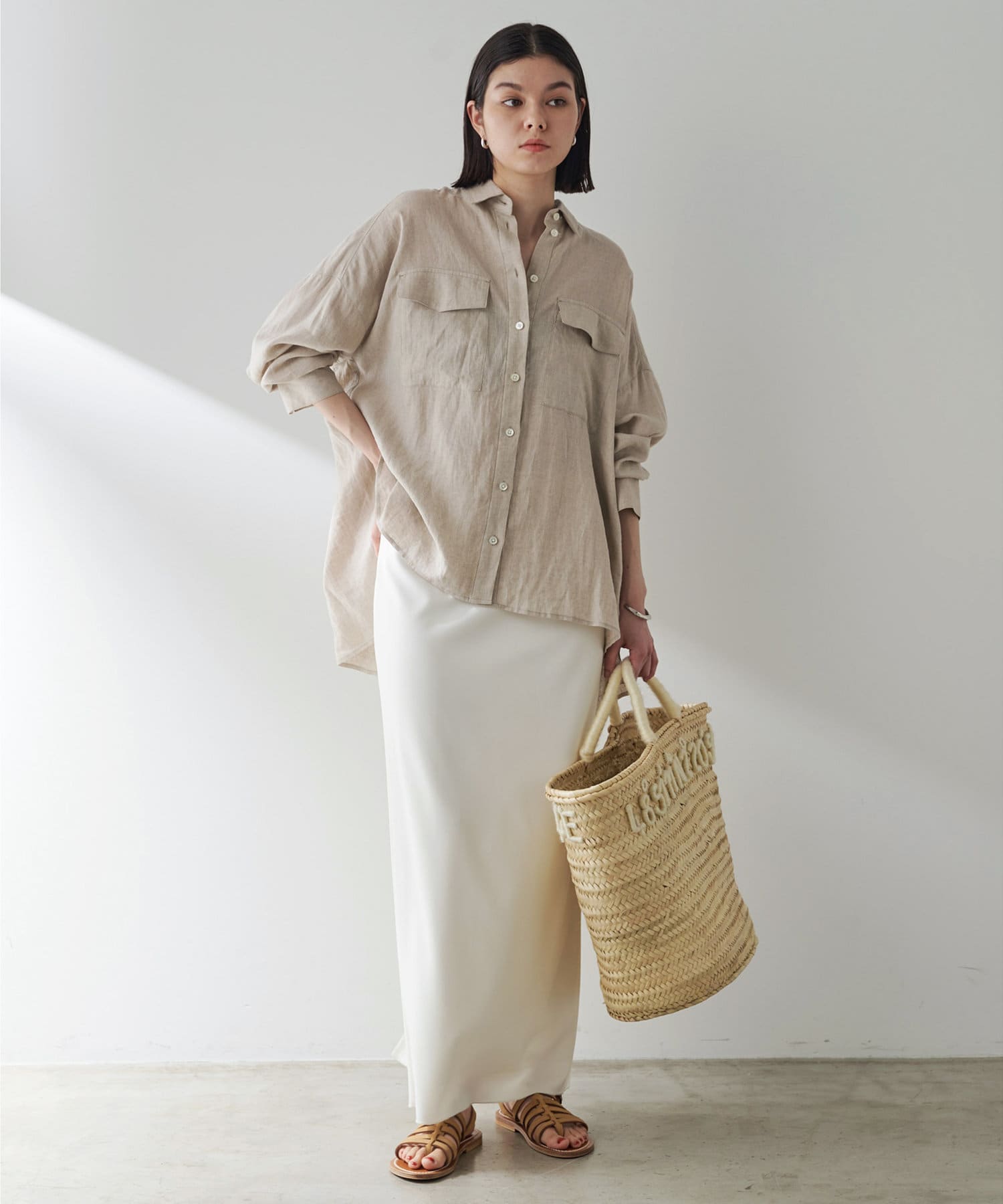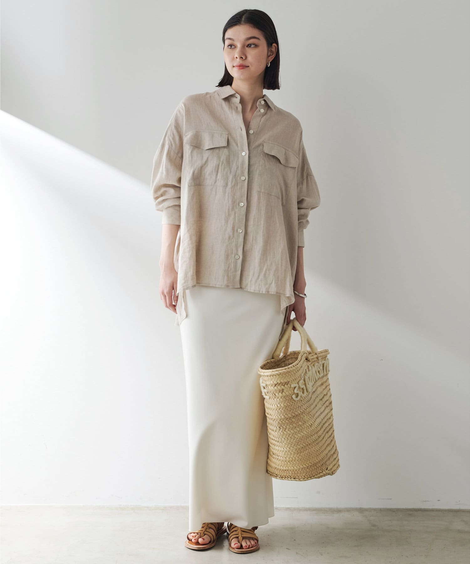 長款裙襬整齊垂落,給人乾淨利落的感覺,高腰設計更顯時尚。