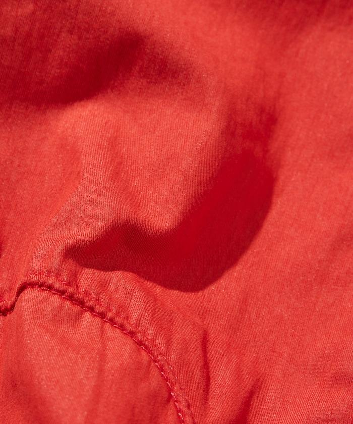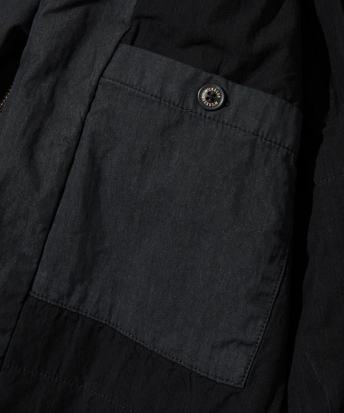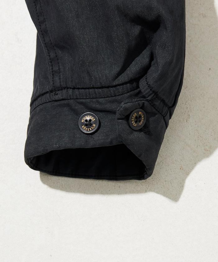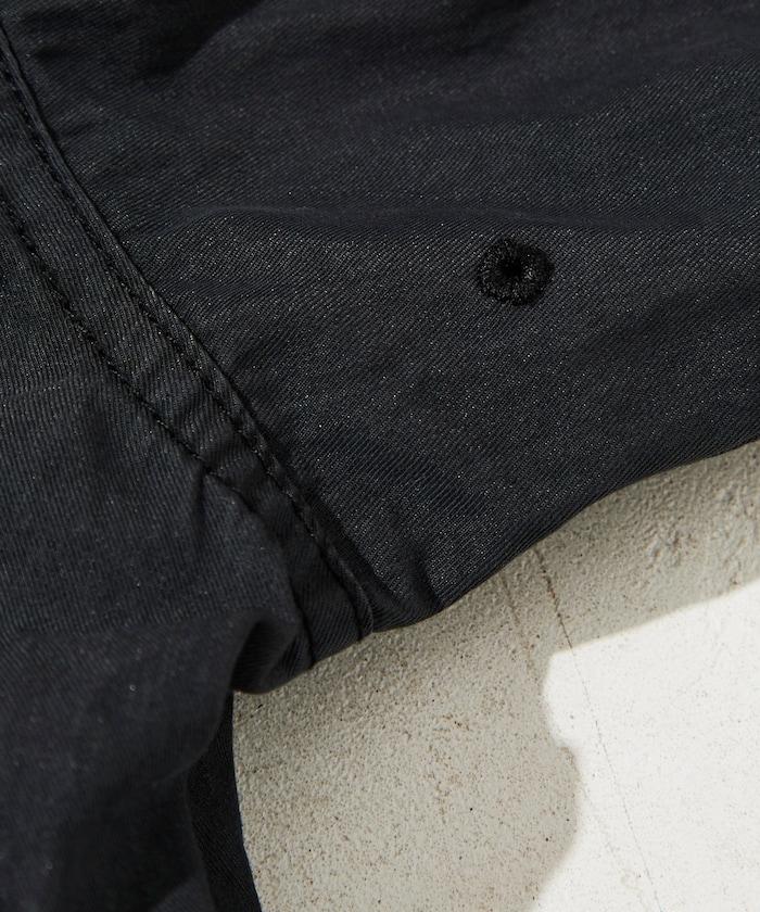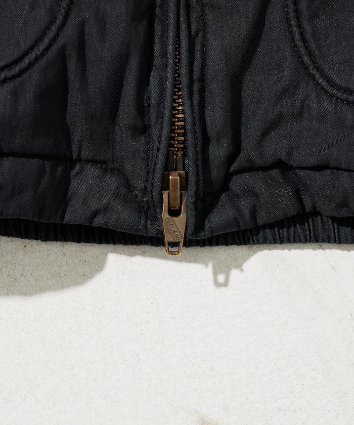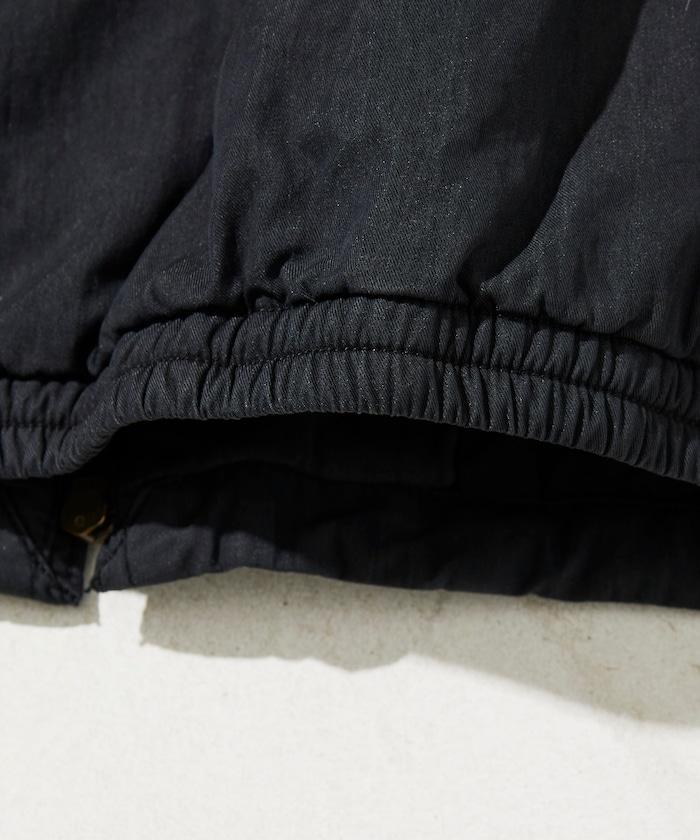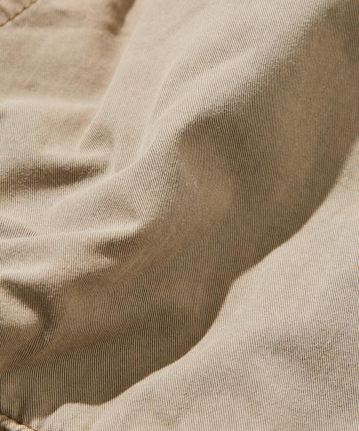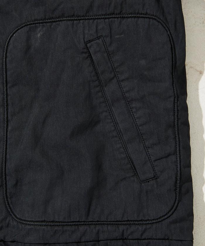 原始的棉尼龍面料經過染色處理,使夾克呈現出凹凸不平的磨損外觀。