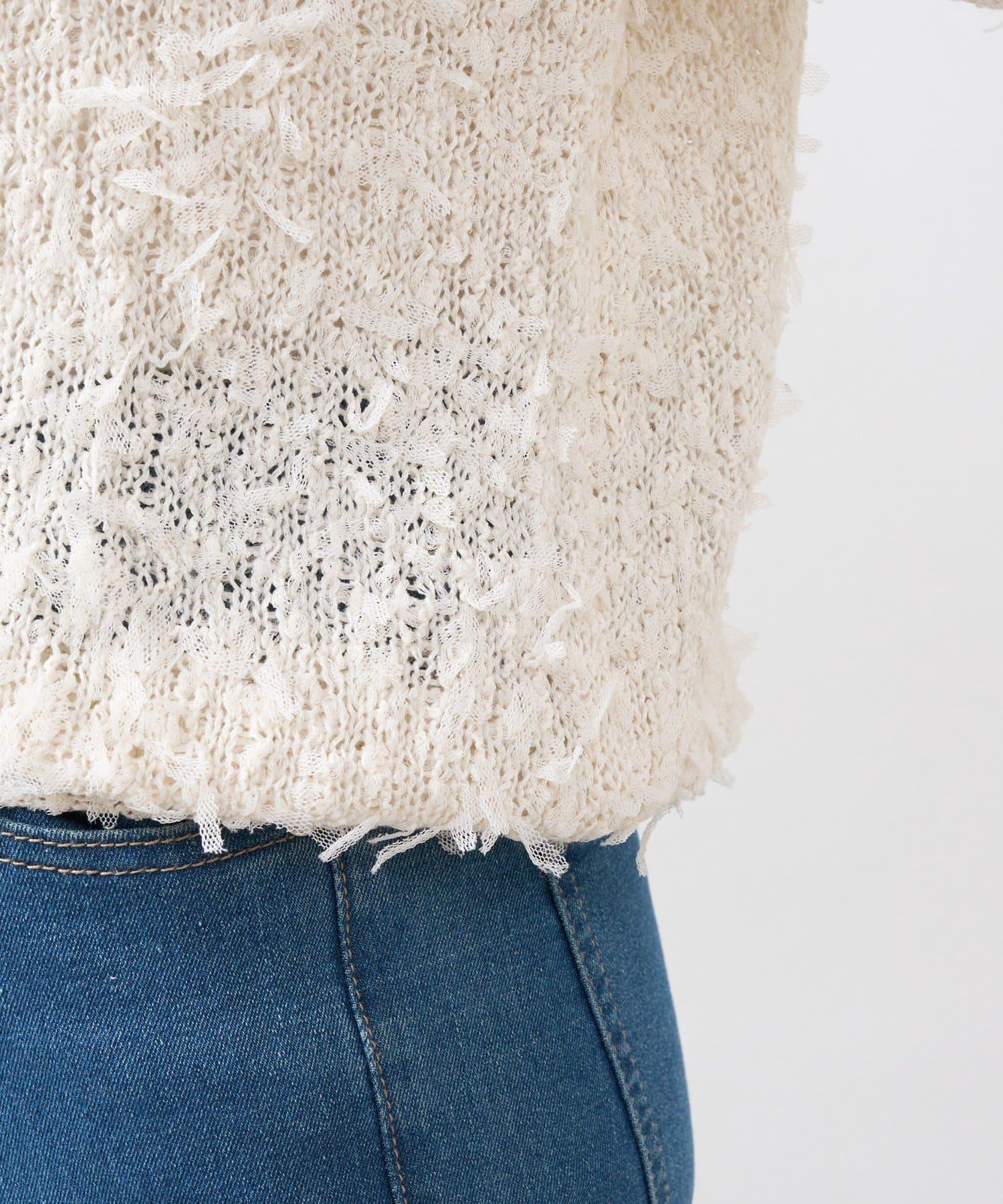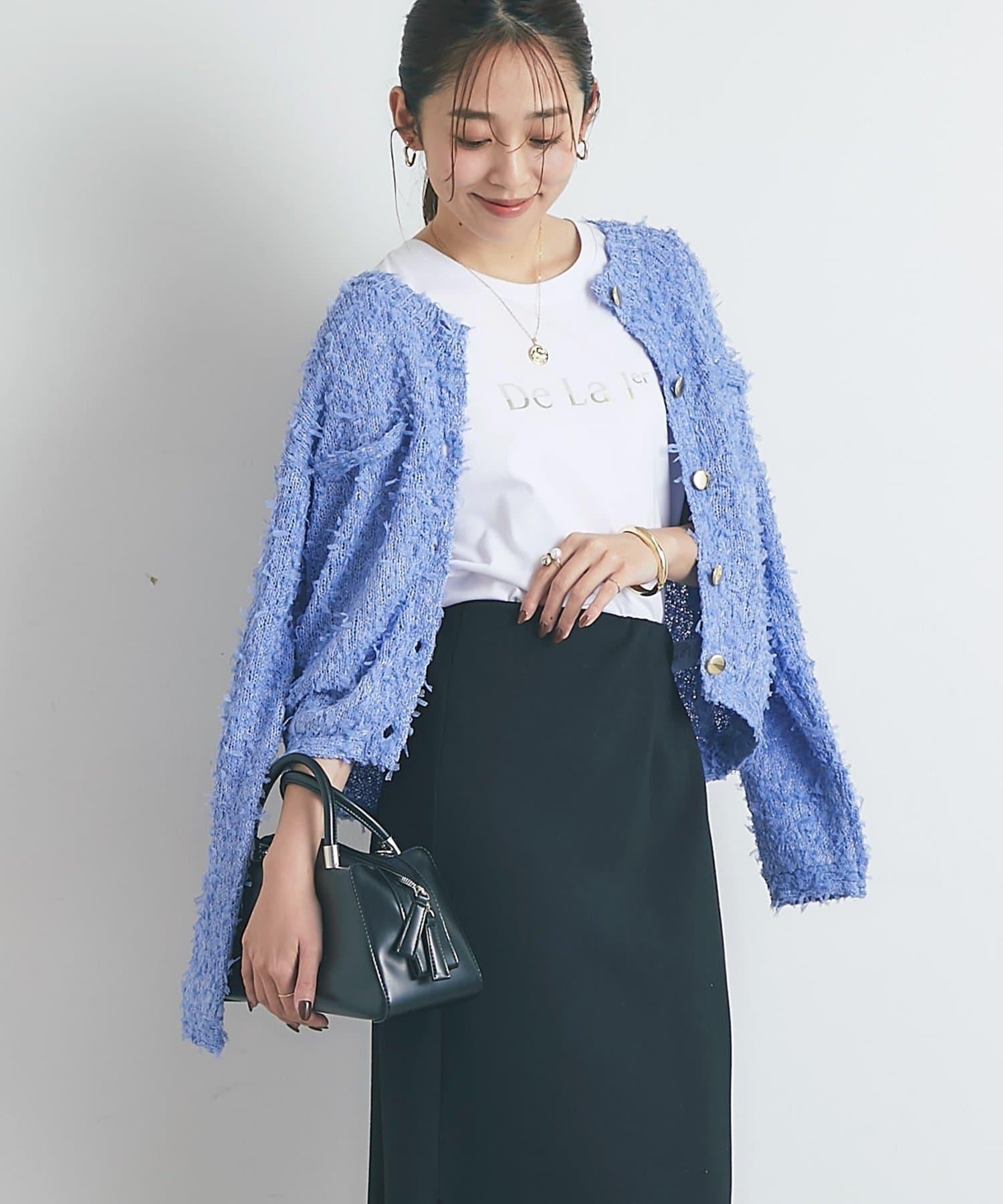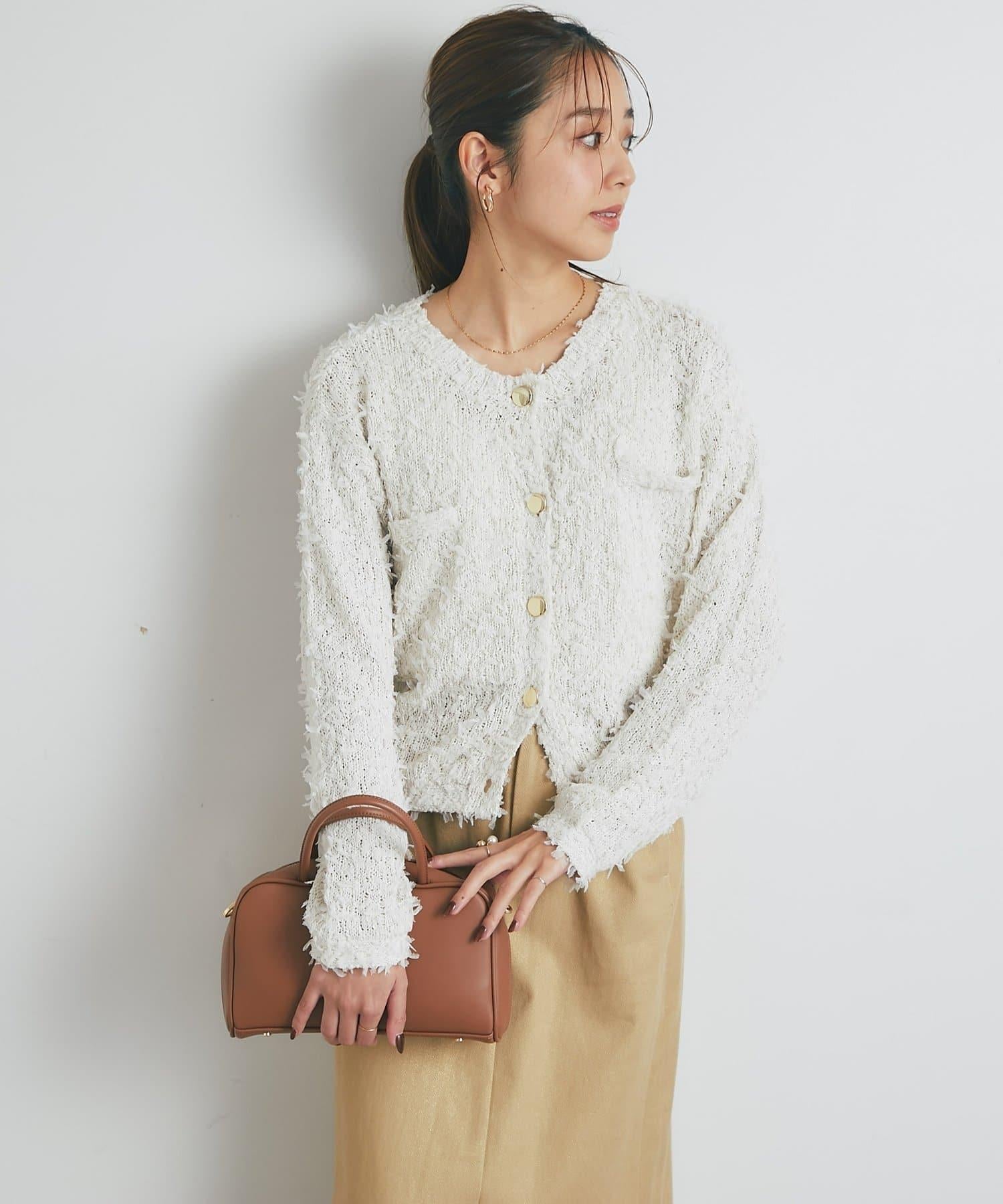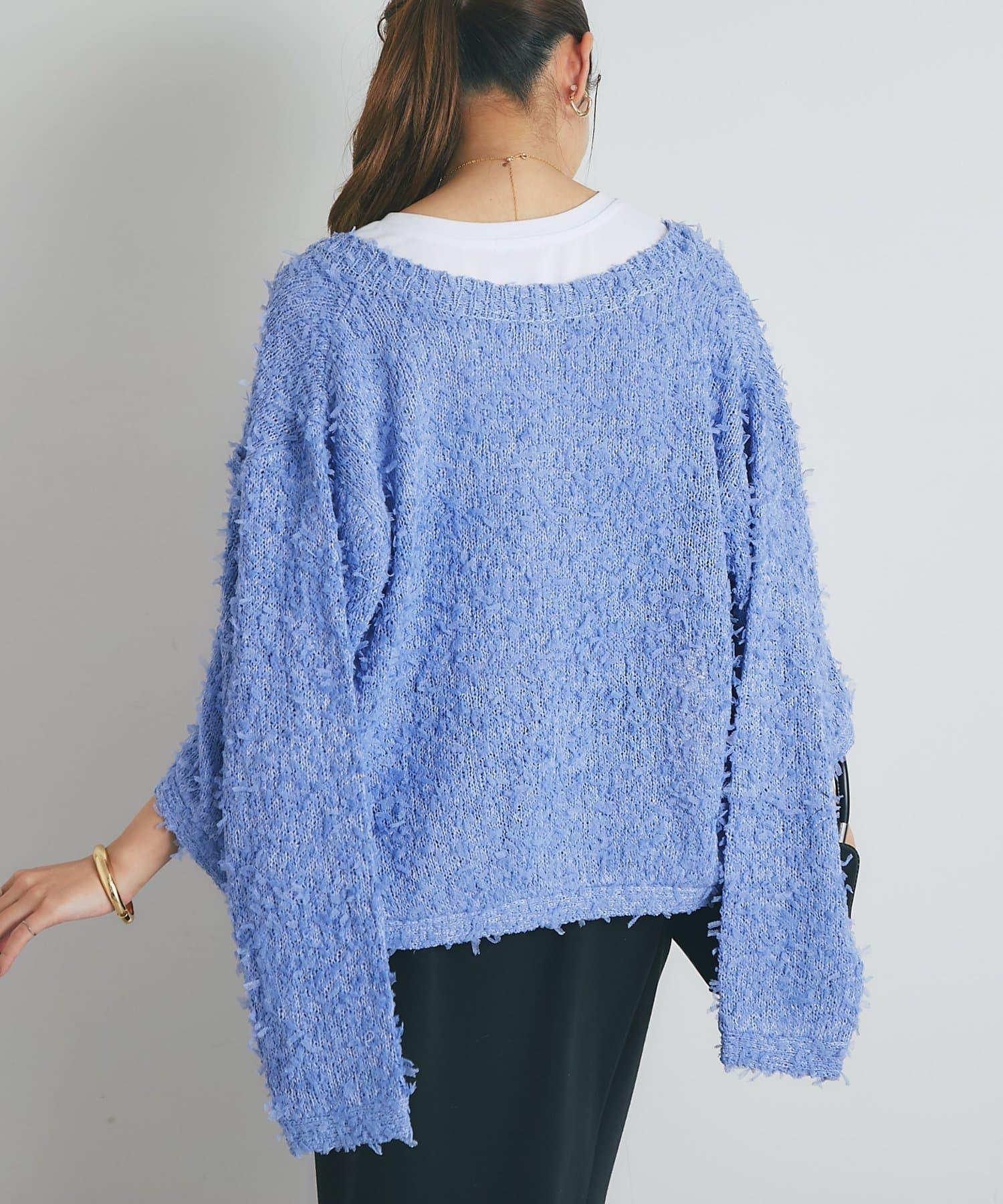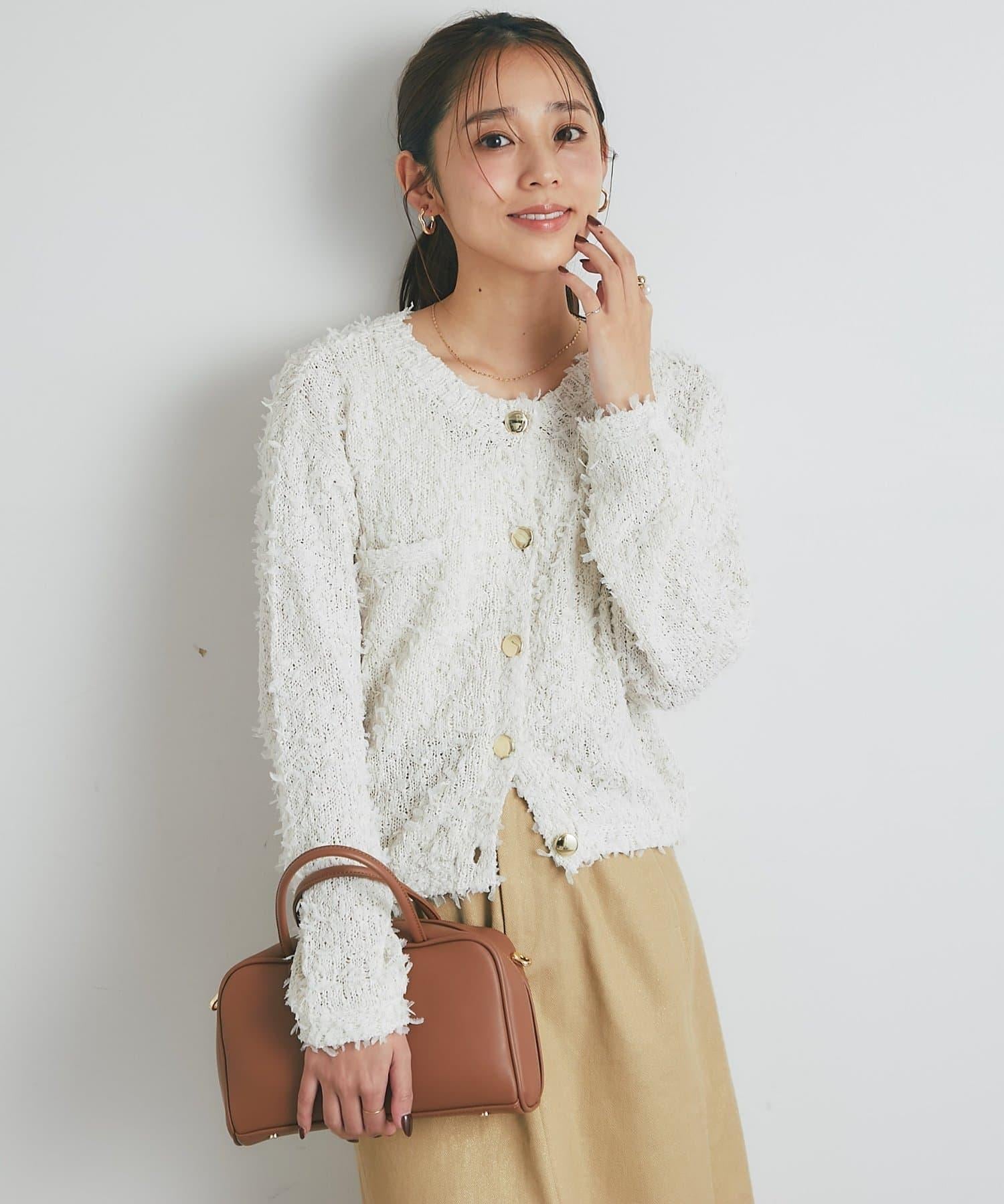 這款開襟羊毛衫採用薄紗帶紗面料製成,略帶薄紗感,給人寬鬆的感覺。