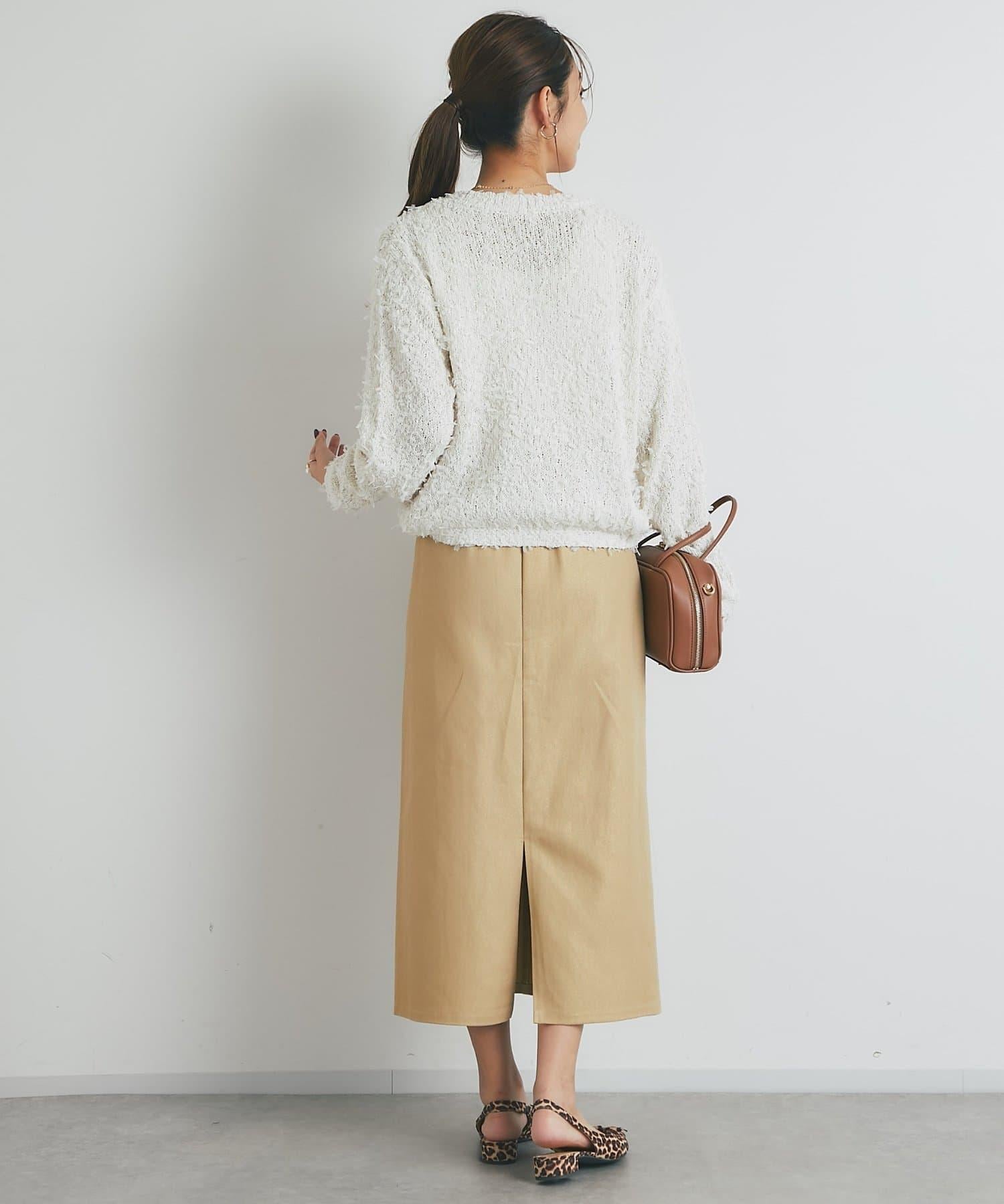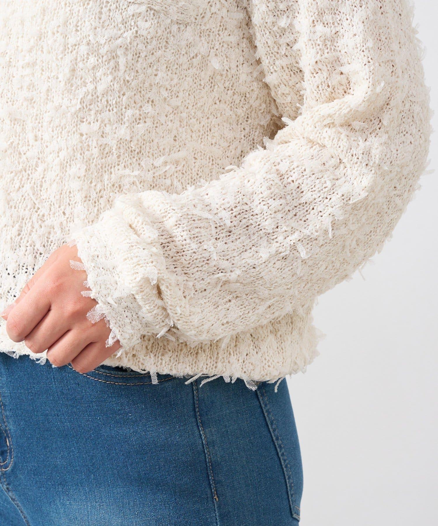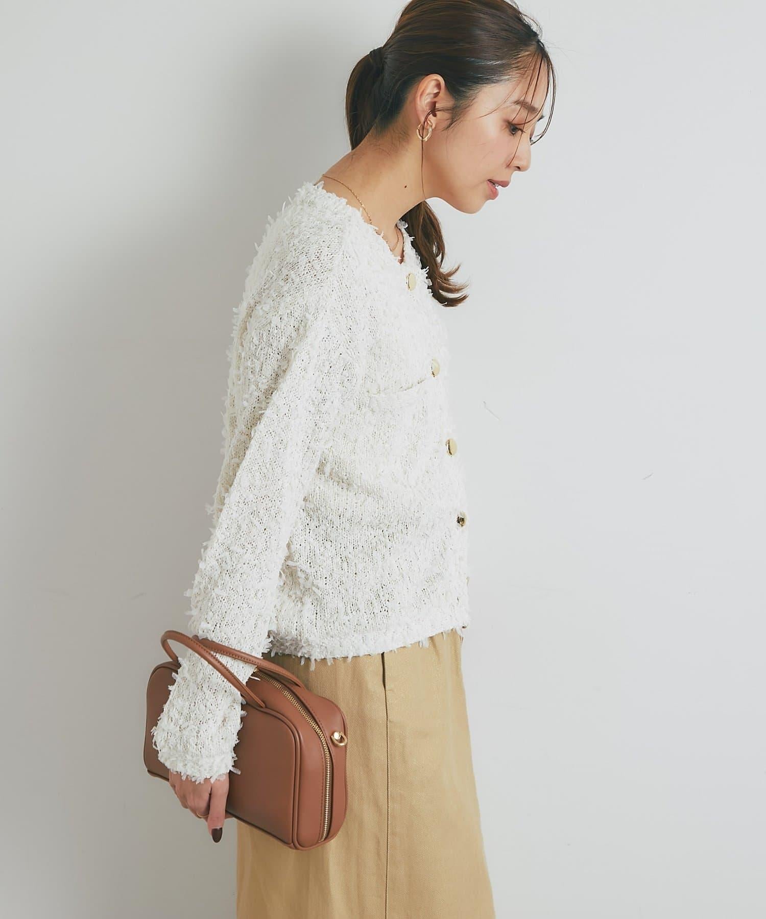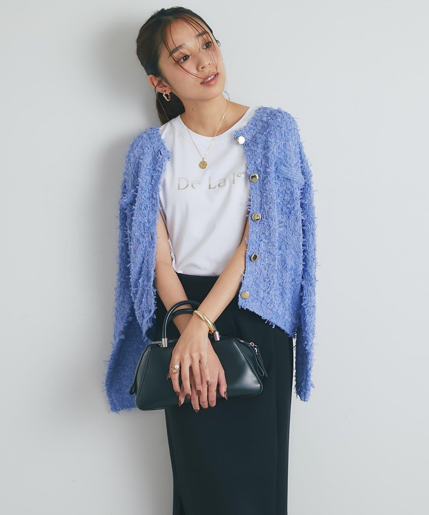 這款開襟羊毛衫採用薄紗帶紗面料製成,略帶薄紗感,給人寬鬆的感覺。