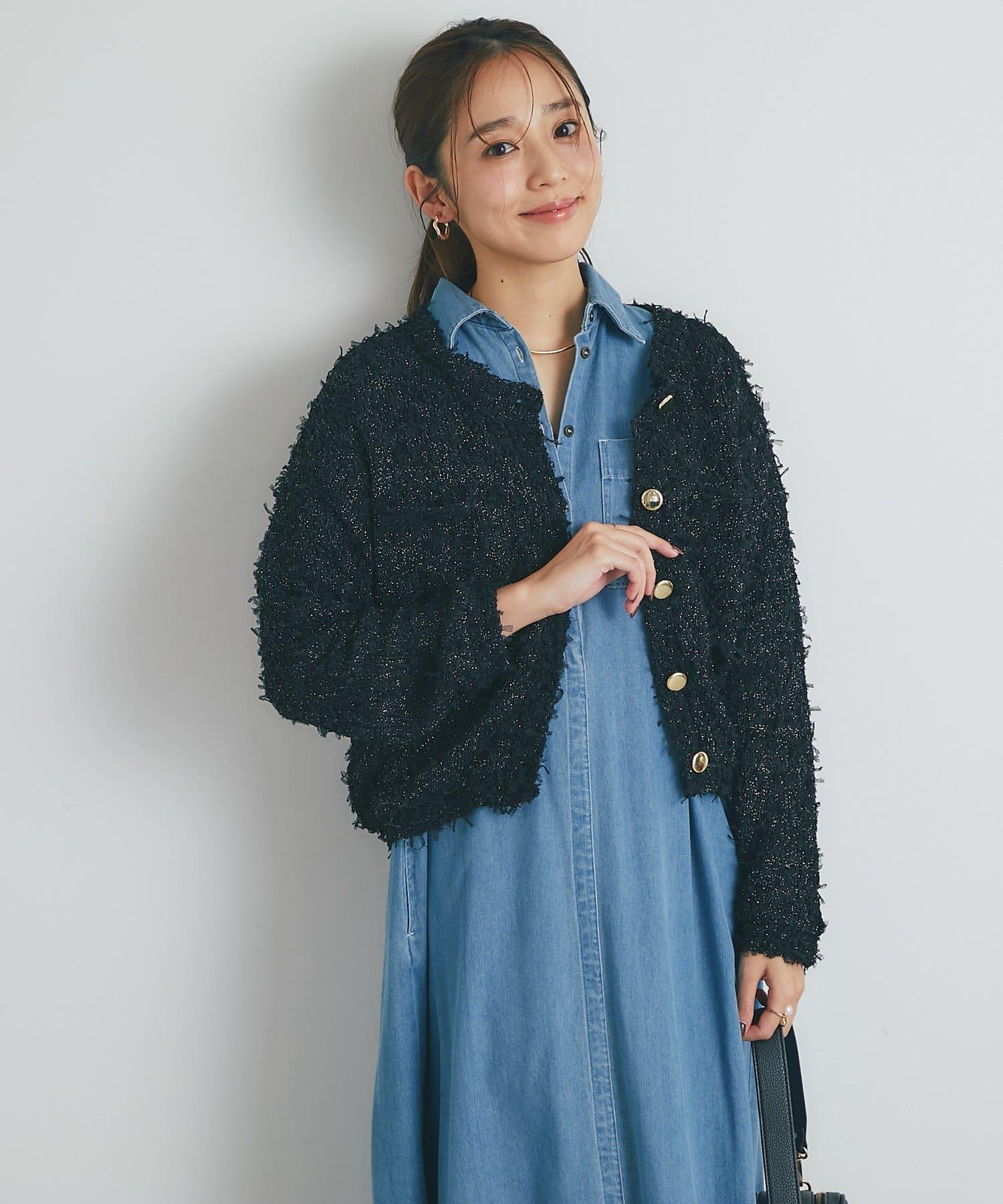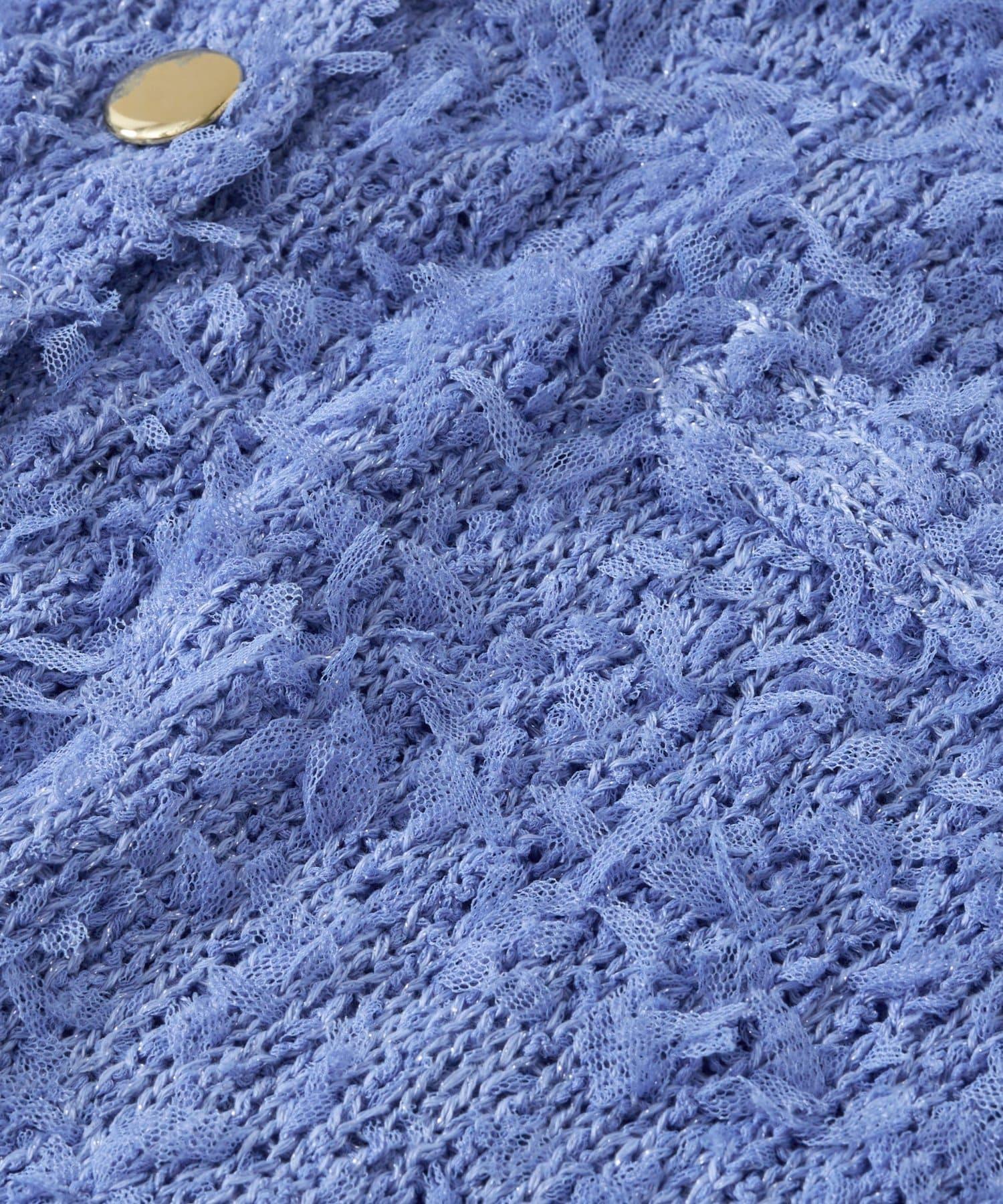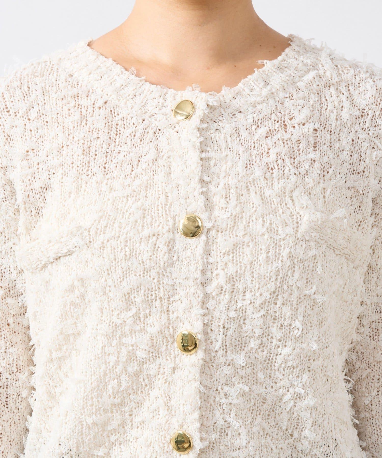 適合打造輕盈造型的亮片薄紗帶紗線金色紐扣開衫