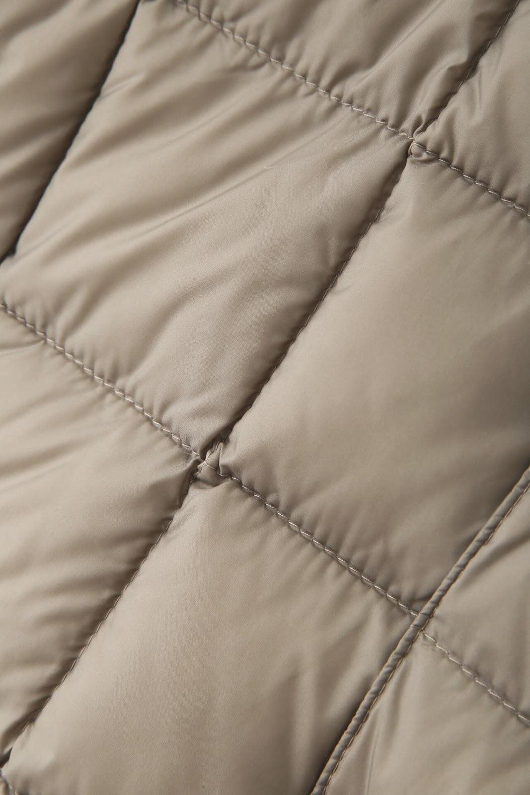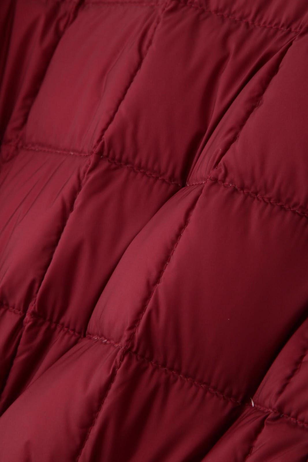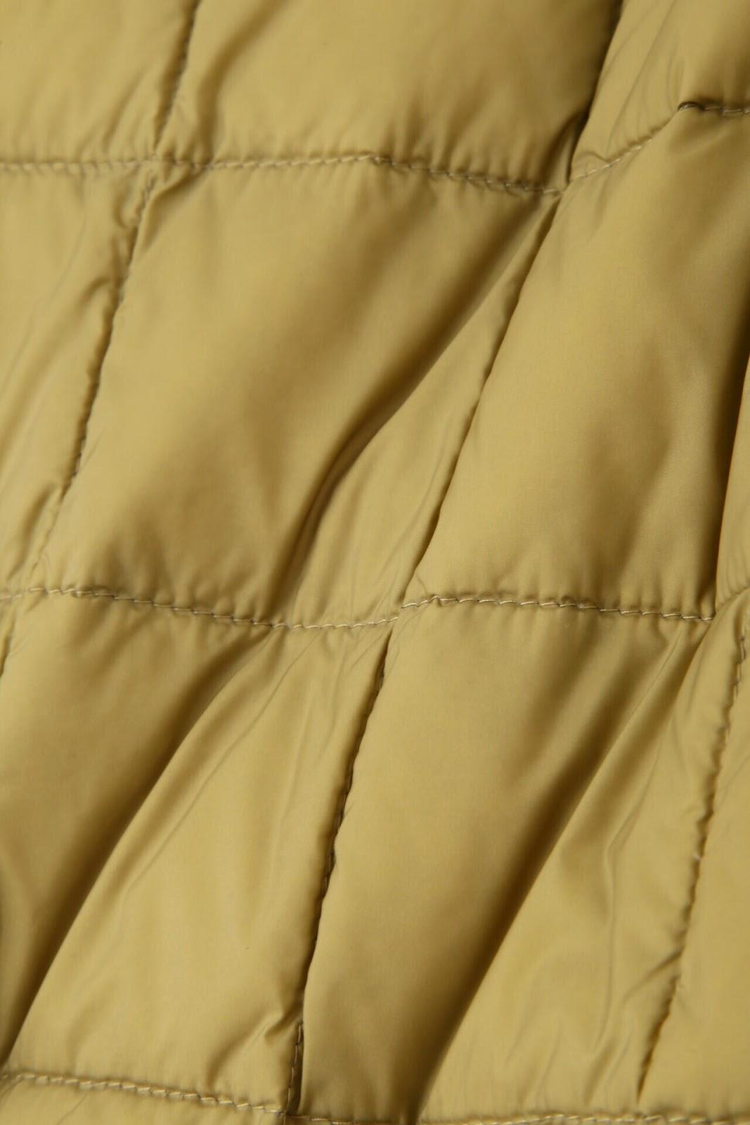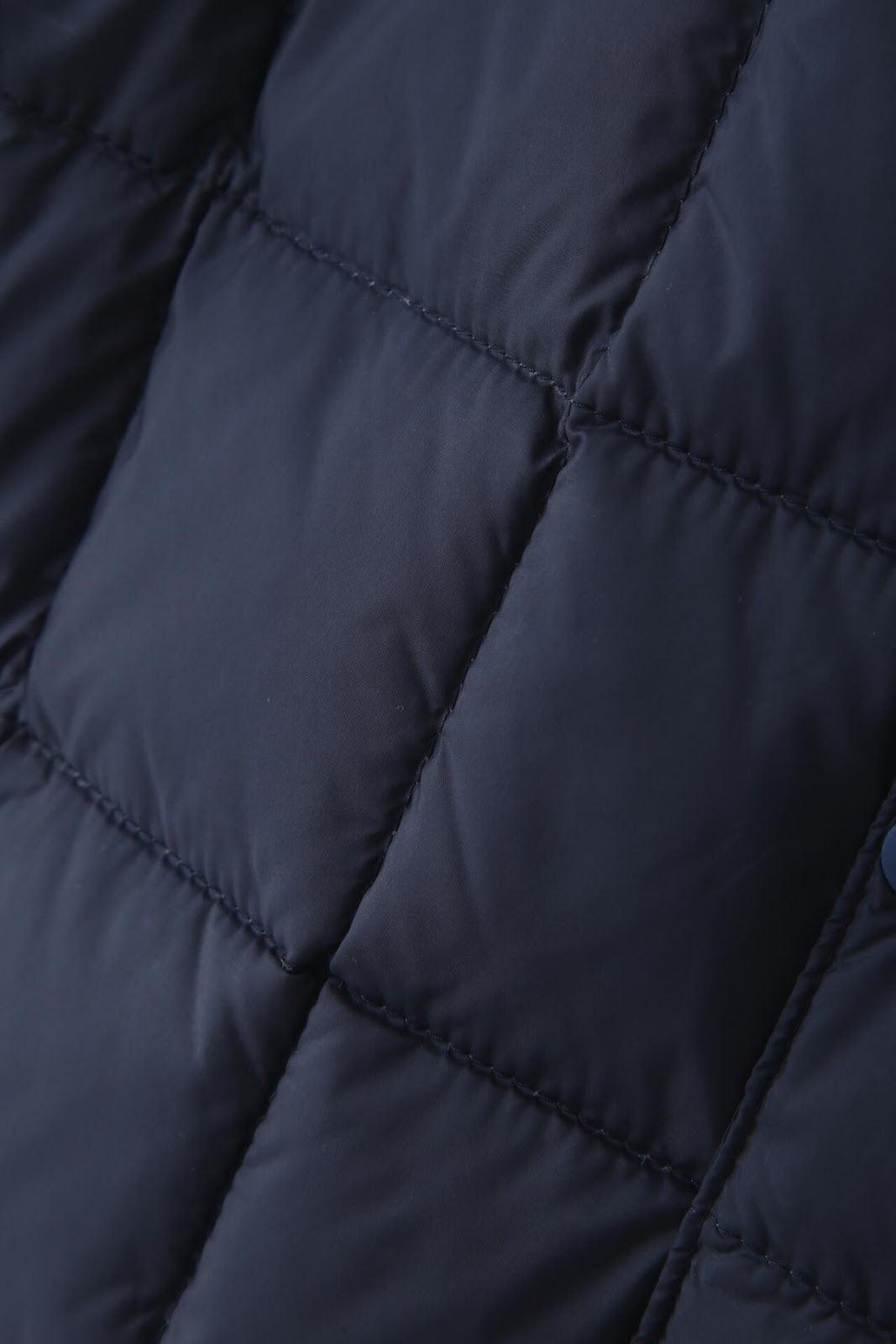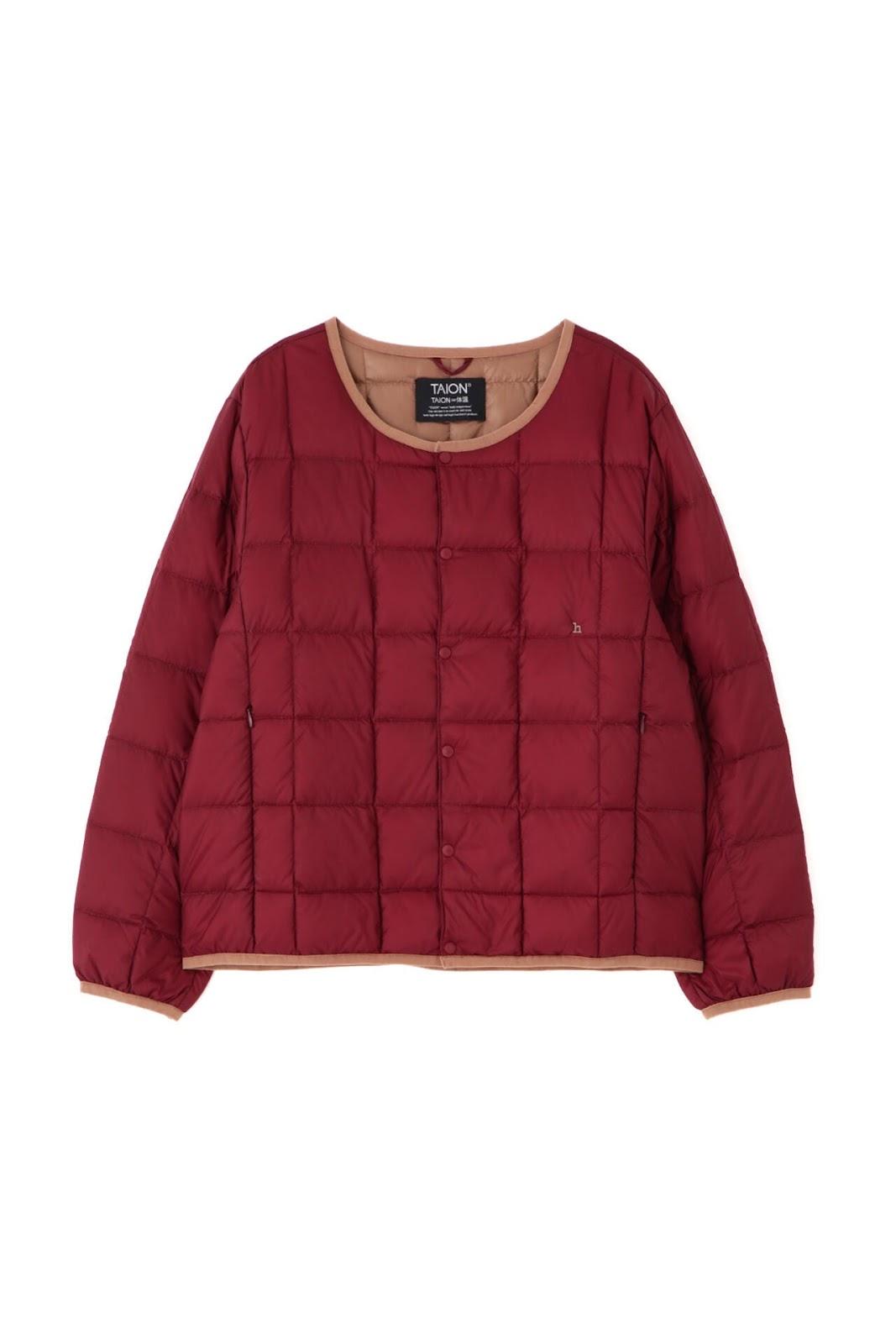 TAION×human woman 合作項目中的紐扣羽絨服 [設計要點] 這款羽絨服被視為 TAION 的標準產品,是按照人類女性的規格特別定製的。為了與人類女性的外衣相匹配,對尺寸進行了修改,並按照滾邊規格製作了衣領。滾邊的顏色也應用到了內襯上,色彩搭配是設計的一個亮點。原來的 "Bonjour "印花也被應用到了可打包的抽繩上,左胸前繡有 "h"。面料要點] TAION 採用了比普通羽絨更蓬鬆的羽絨,因此輕便而保暖。紗線也經過特殊設計,與羽絨和薄面料相匹配。推薦座標] 裁剪縫製和襯衫。