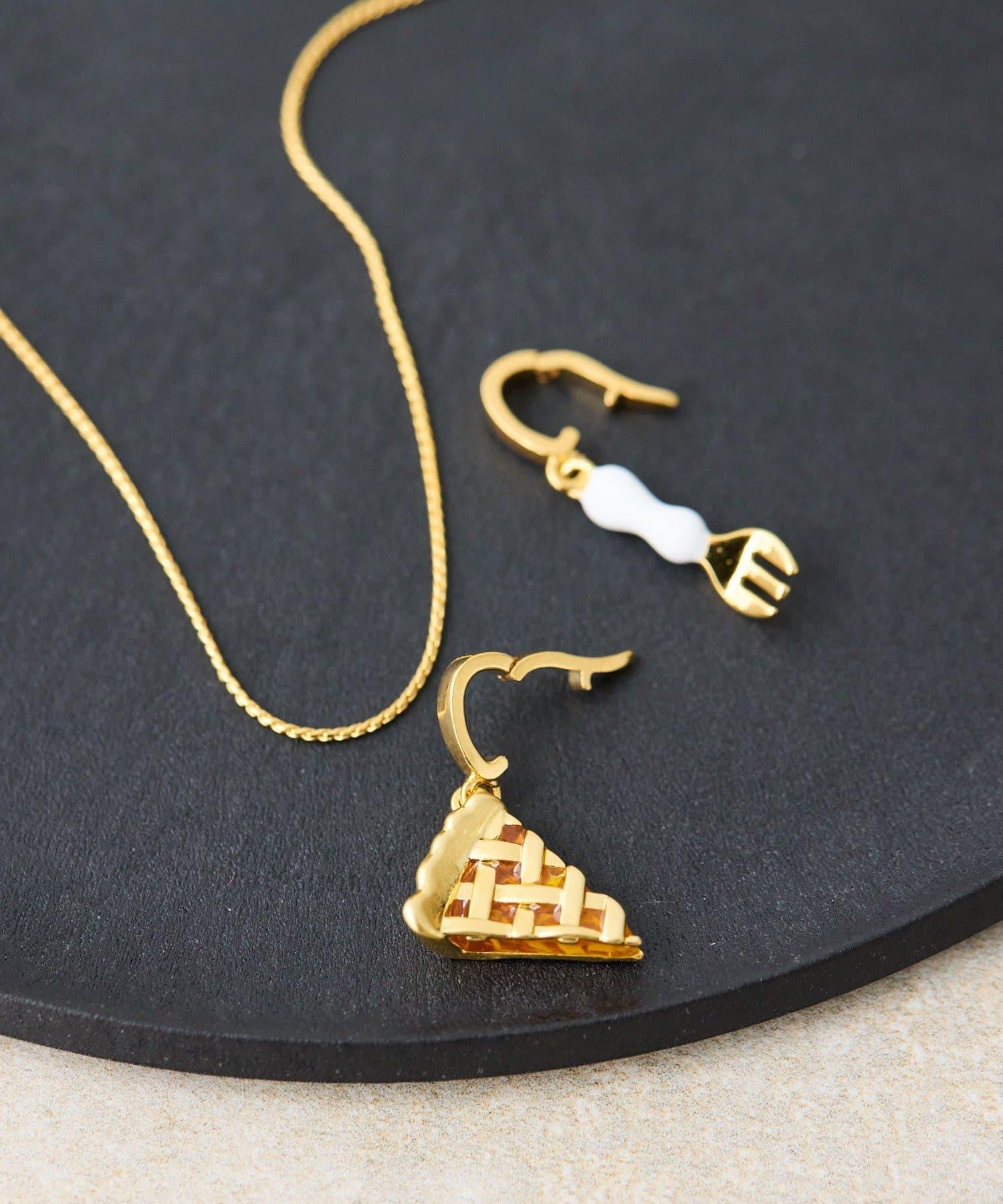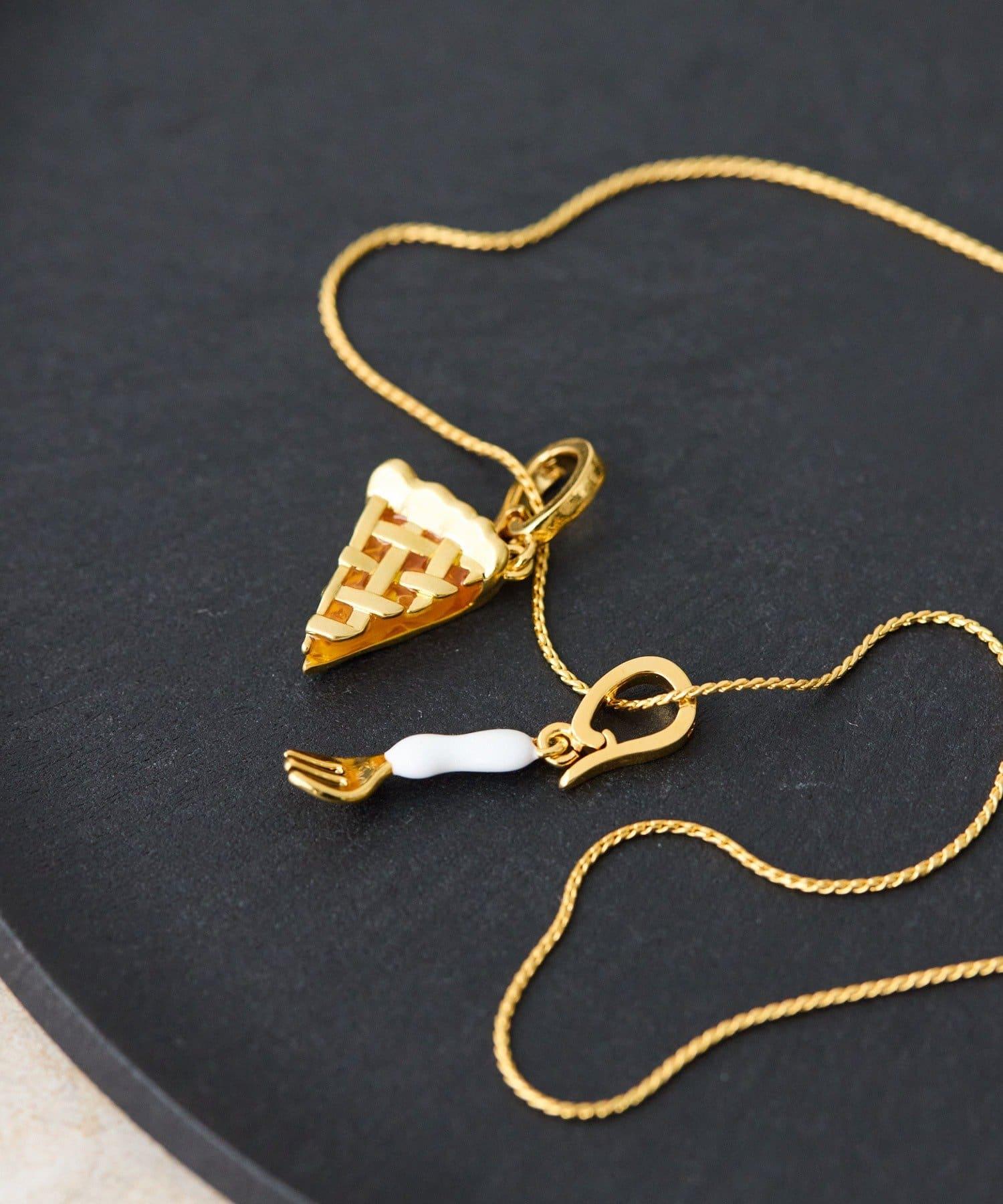 吊墜頂部是一個造型美味的蘋果派和叉子,光是看著就讓人心跳加速。