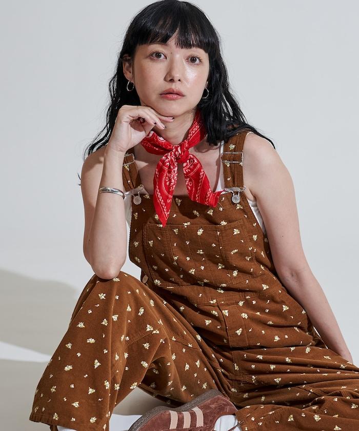 在休閒燈芯絨中加入小碎花圖案的連身褲,增添了甜美氣息。