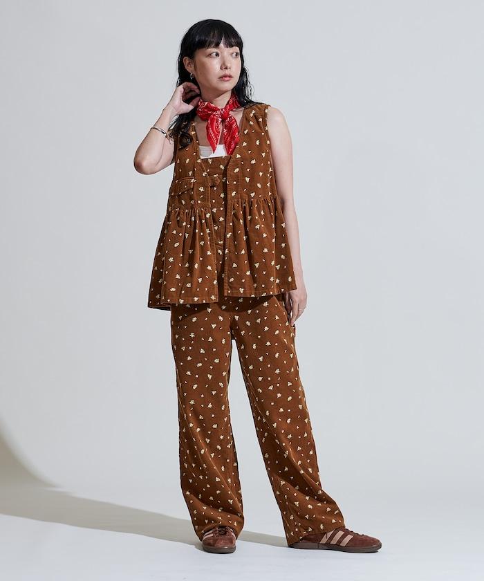 鄉村花卉 燈芯絨工裝連體褲<可搭配套裝>