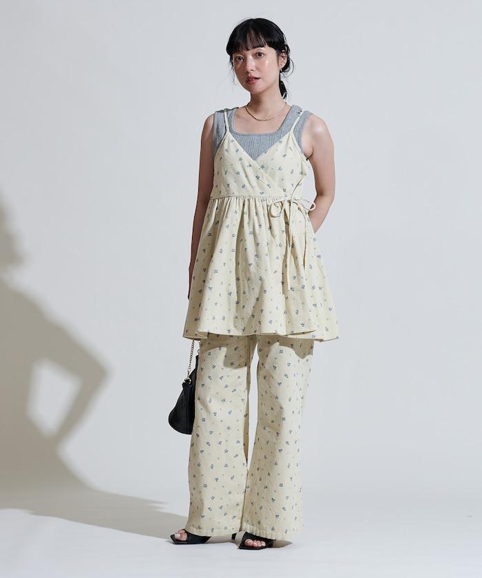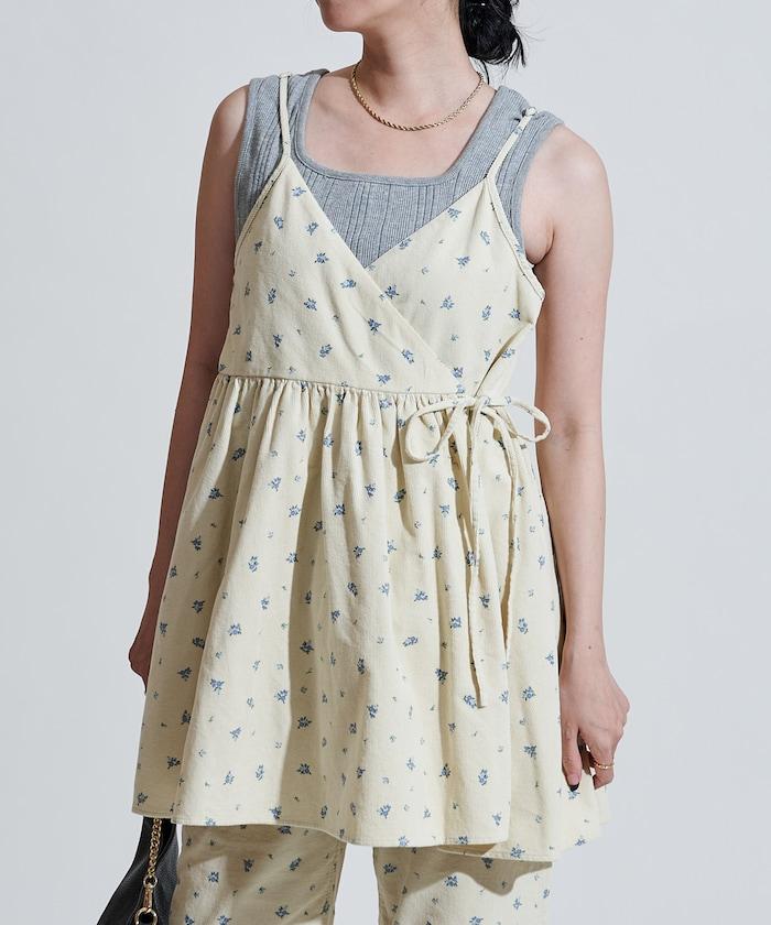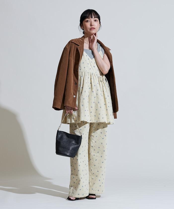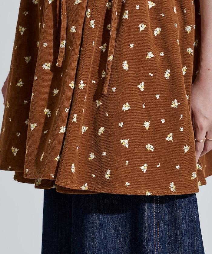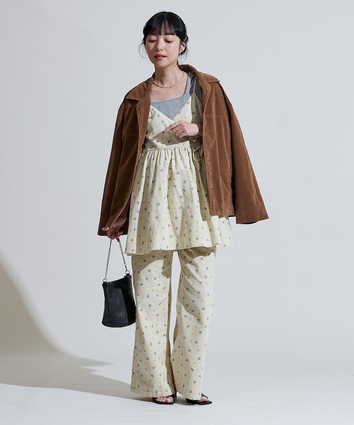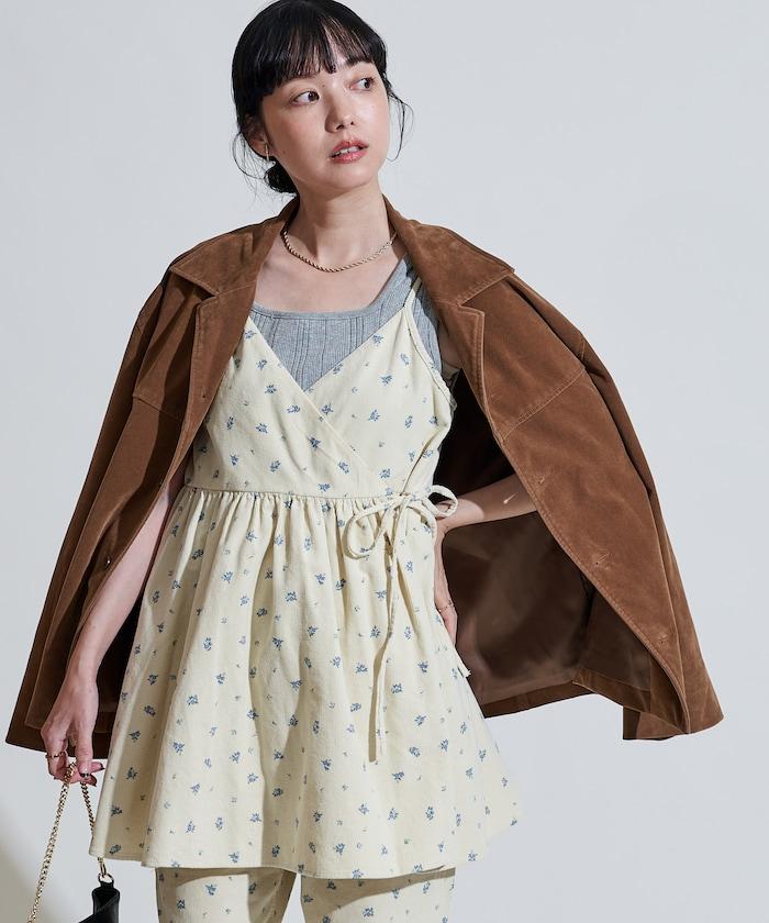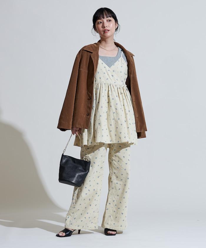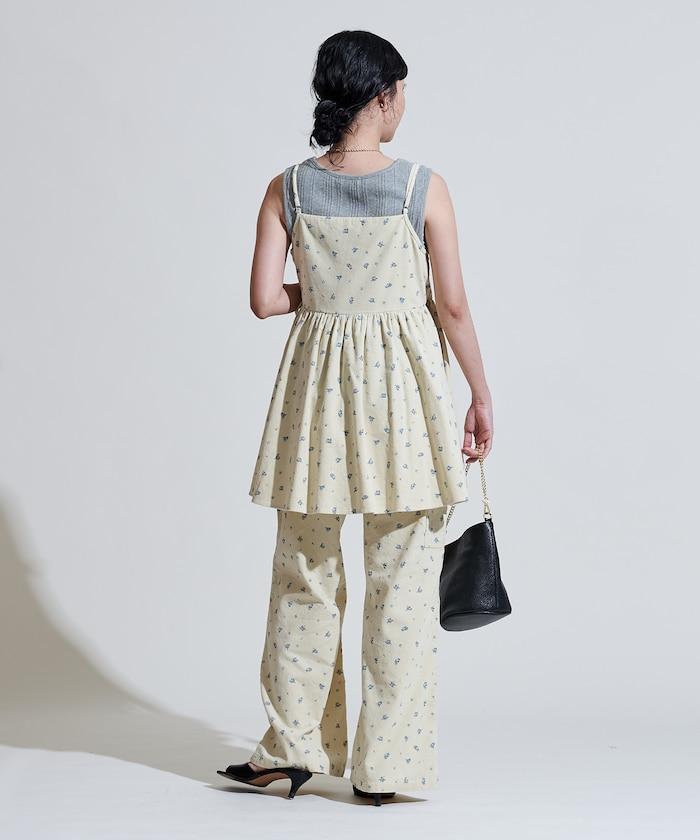吊帶背心外衣,在休閒燈芯絨中加入甜美的小碎花圖案。