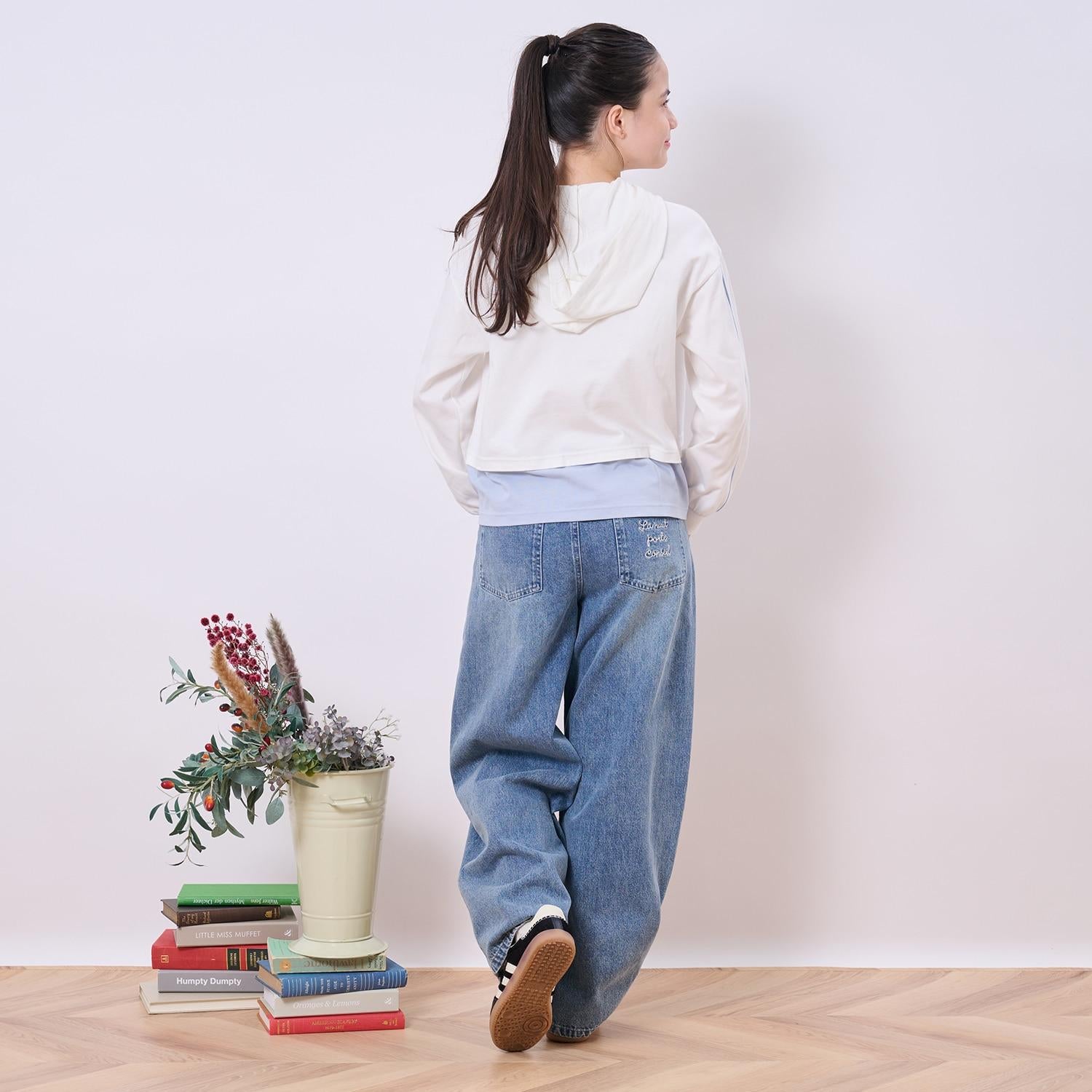 後口袋上的徽標刺繡是時尚的點睛之筆。
