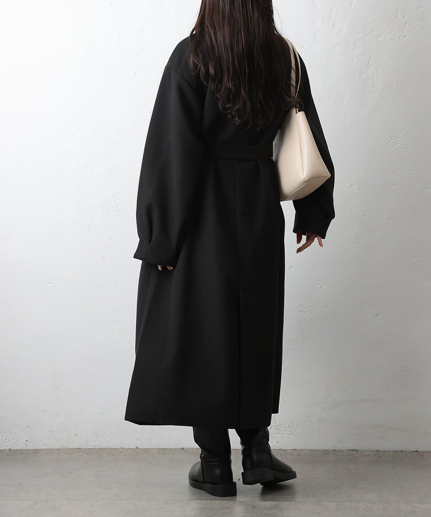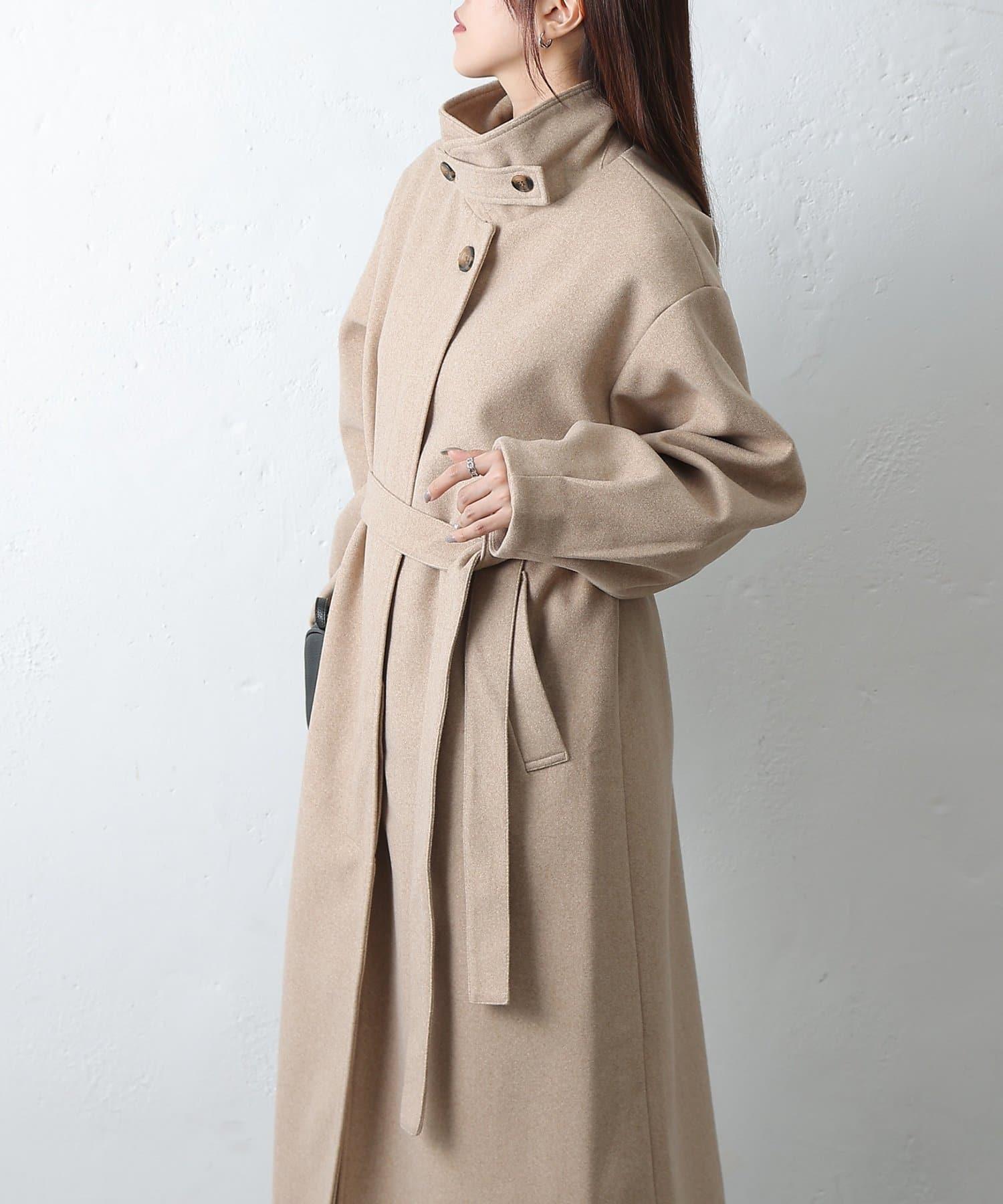這款不鏽鋼領大衣採用束帶袖設計,袖子豐滿。