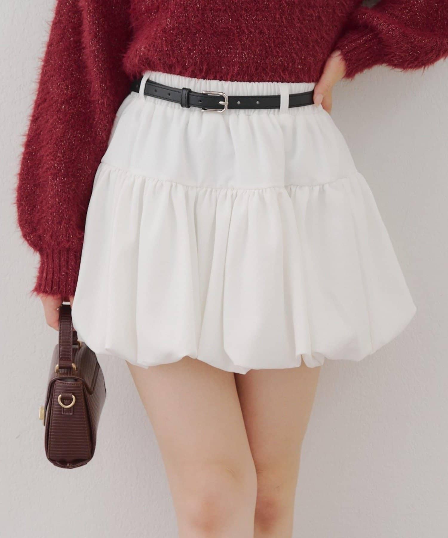 裙子的輪廓蓬鬆可愛,腰帶是裙子的一大亮點。