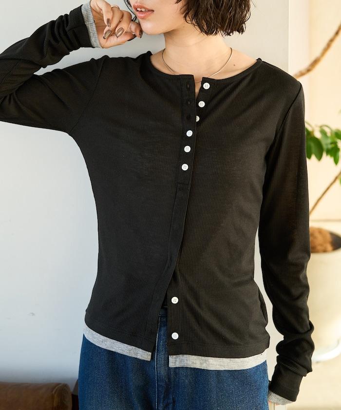 打開下襬處的紐扣,即可作為寬鬆感的開衫穿著。