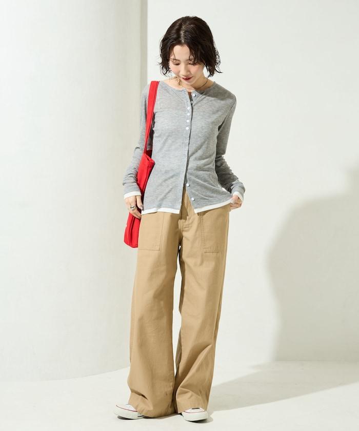 可與休閒褲搭配出整潔的造型,也可將下襬扣上,增添休閒感,非常協調。