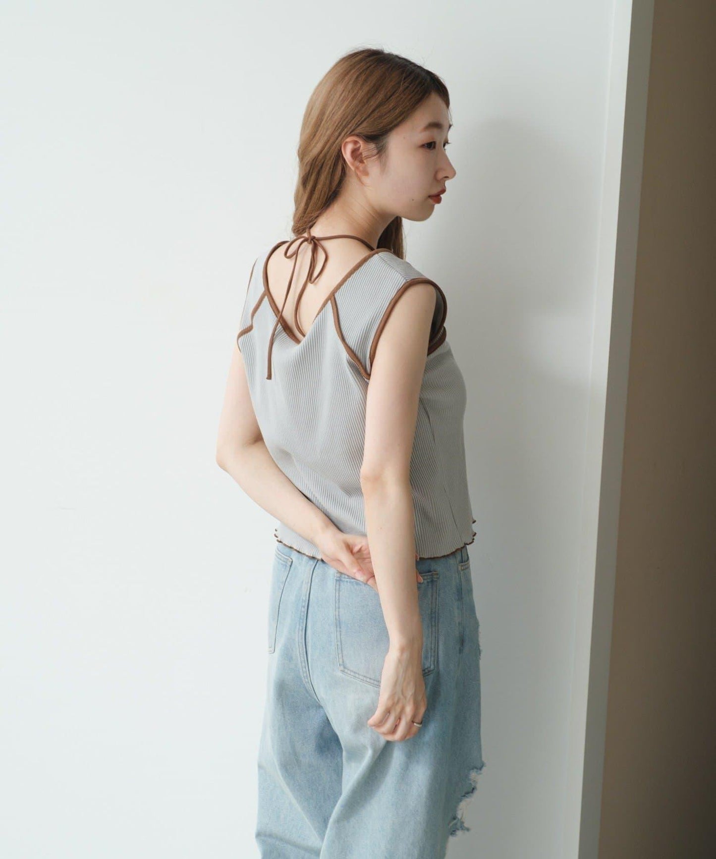 背心式上衣,採用時尚的美式袖子設計和滾邊裝飾。