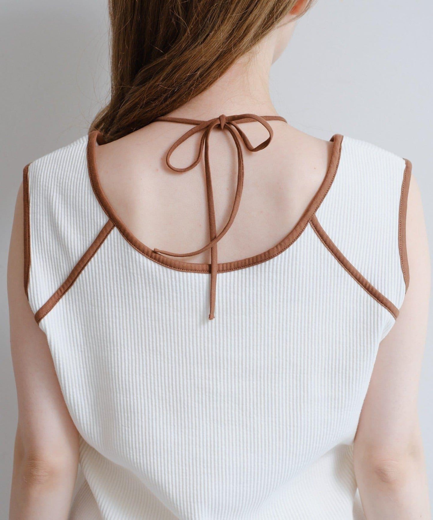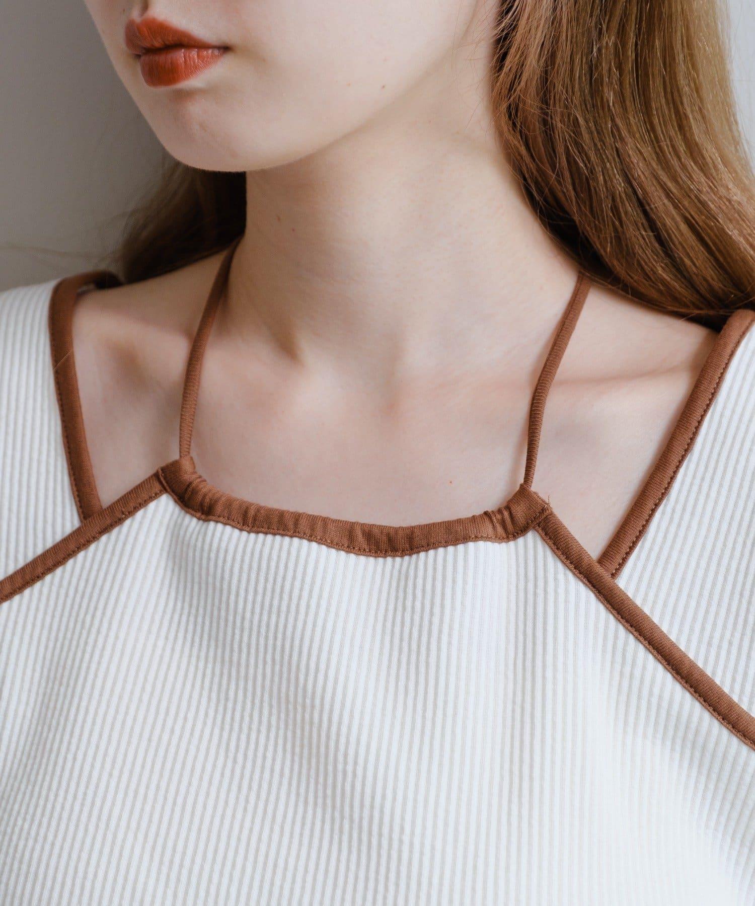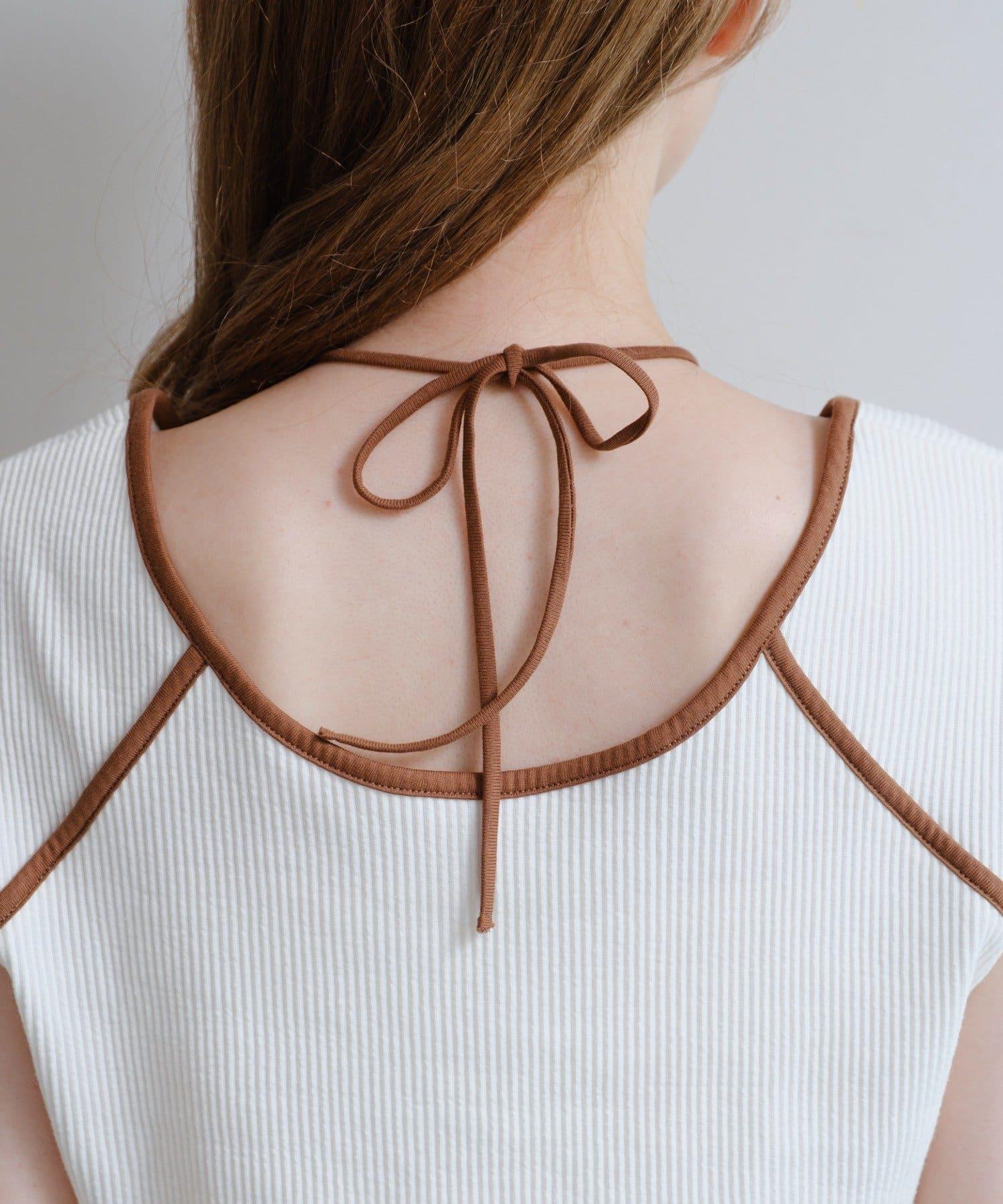 頸部和腋下的深色滾邊營造出緊緻利落的印象。