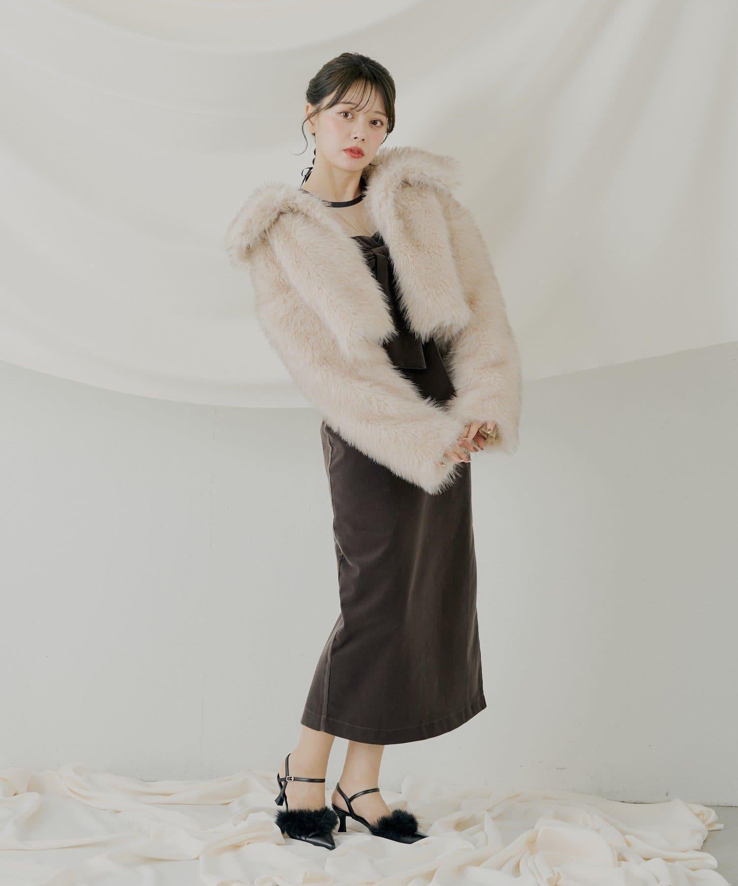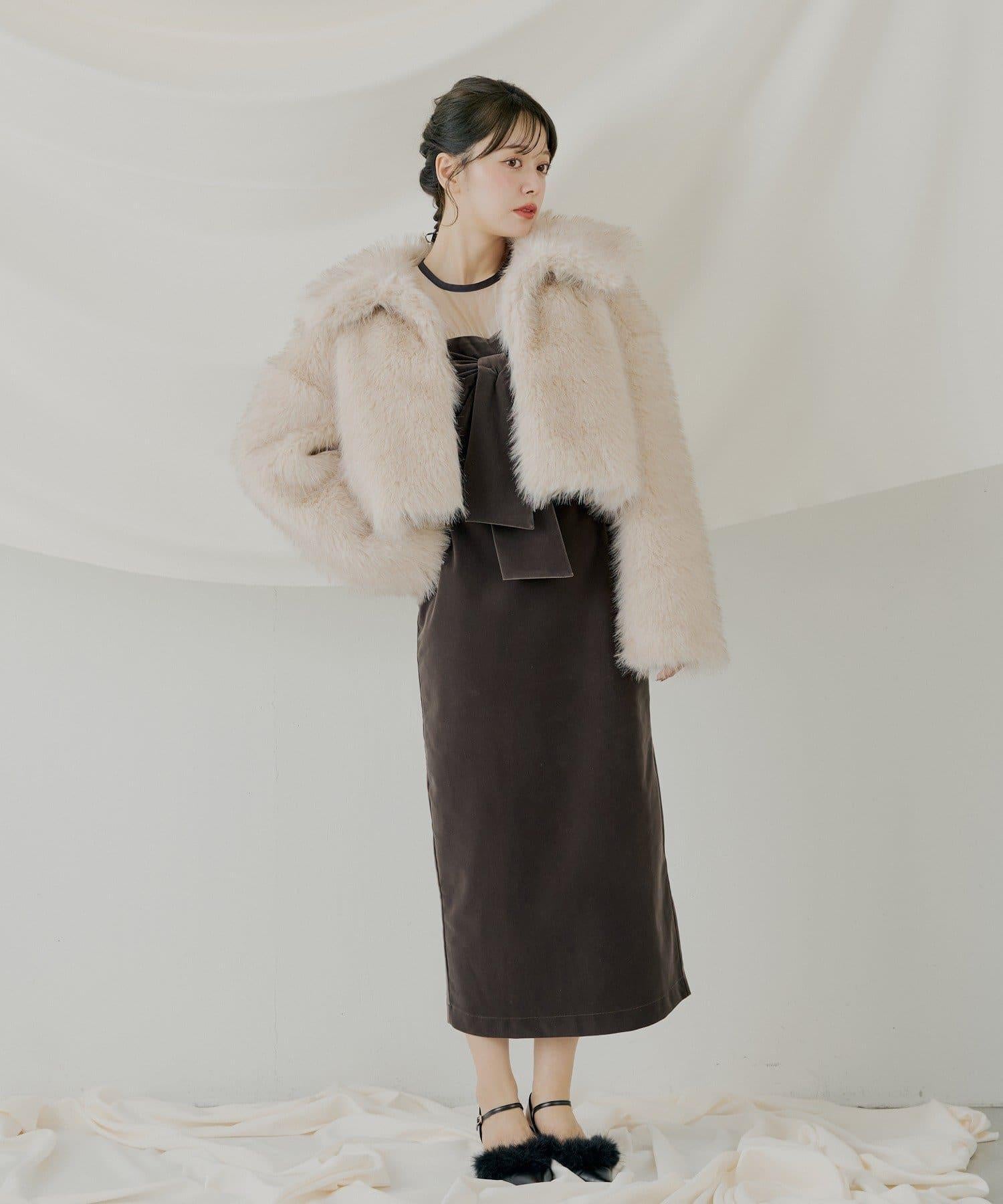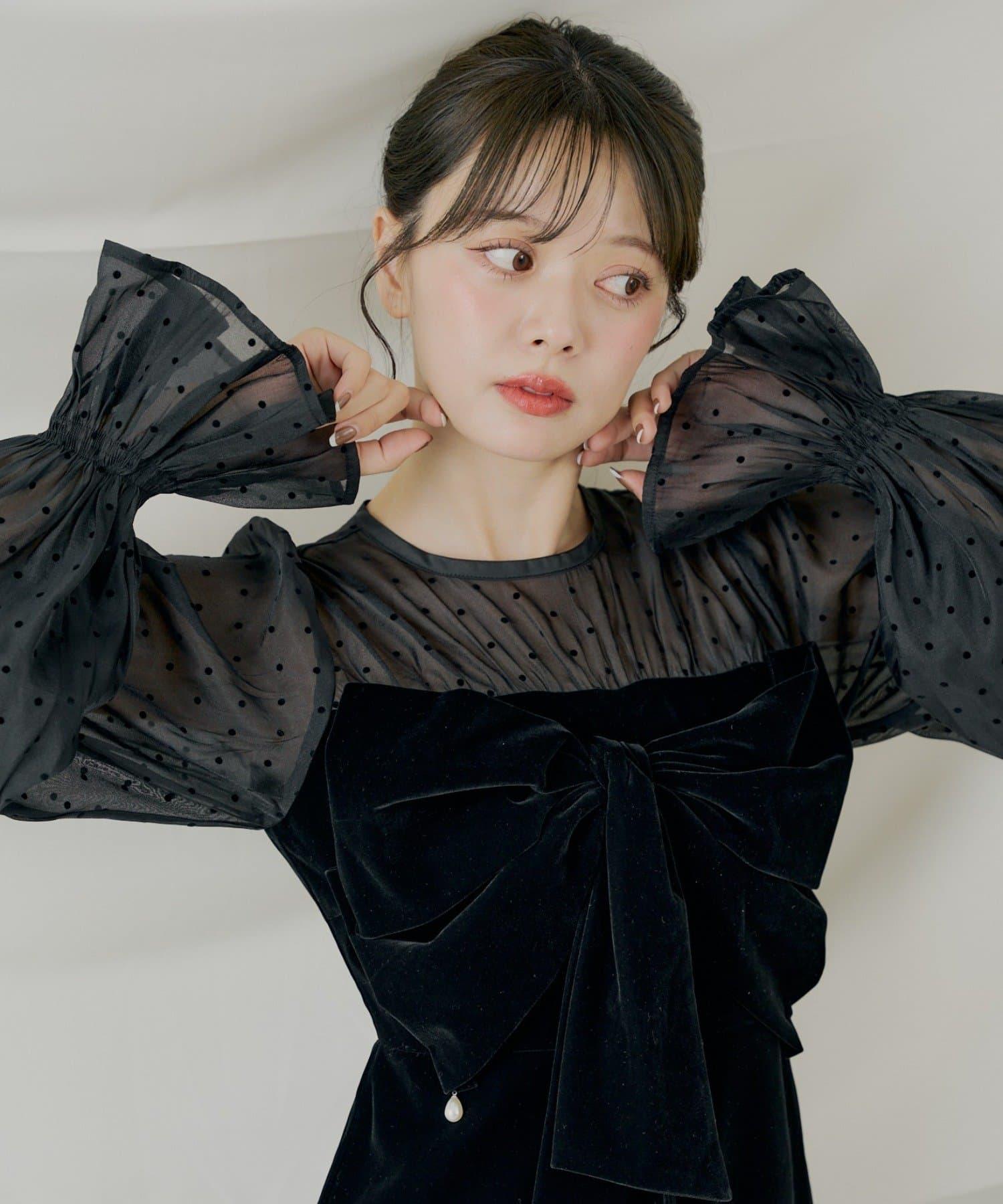 預約商品配色透視蝴蝶結天鵝絨連衣裙【SALON by Chico】