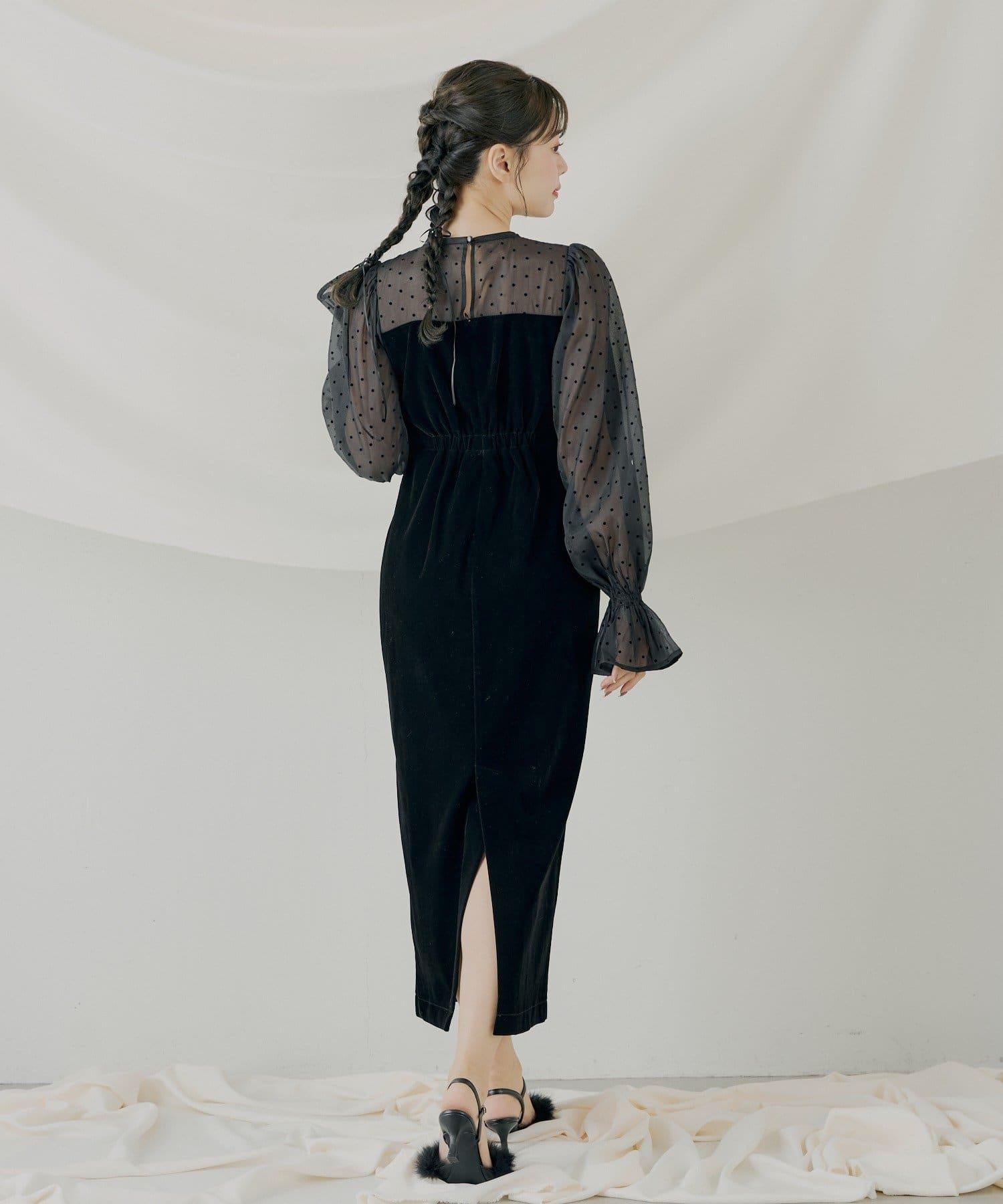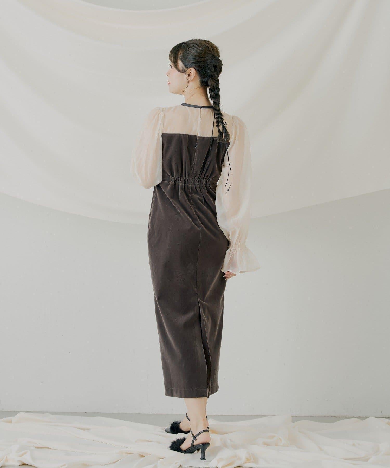 透視袖子由絲絨製成,具有光澤感,給人一種優雅奢華的感覺。