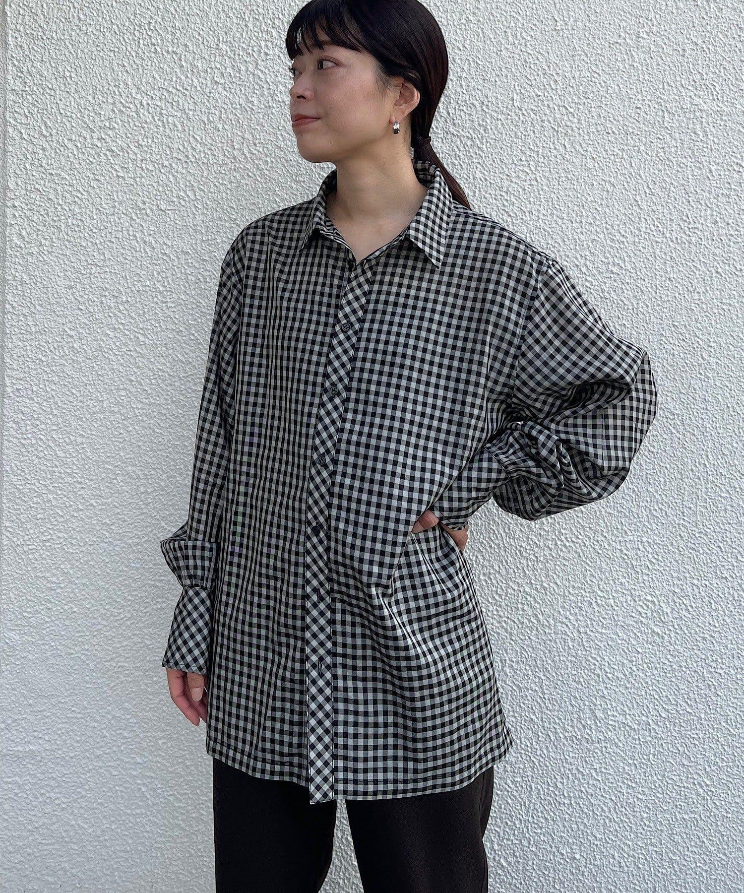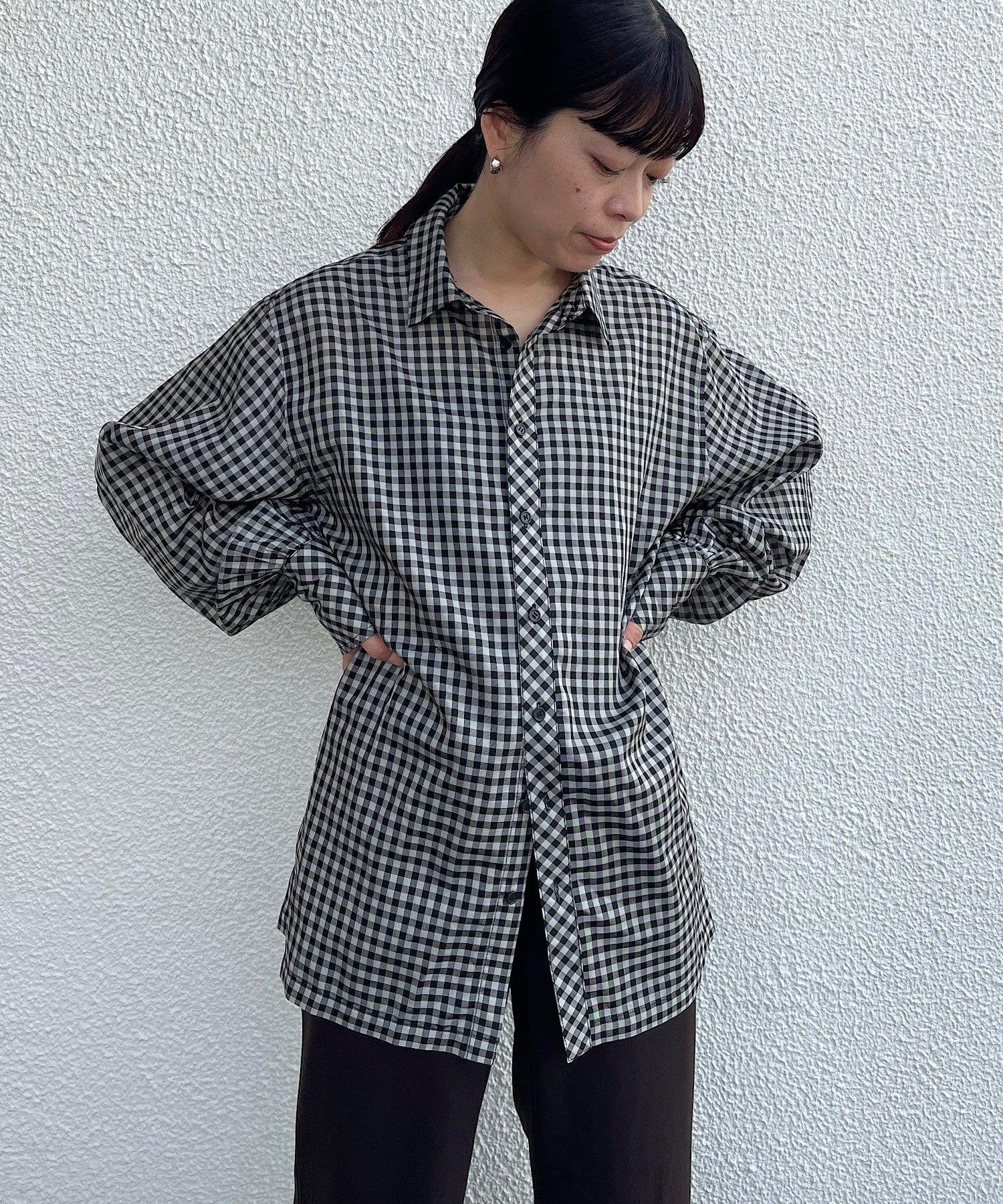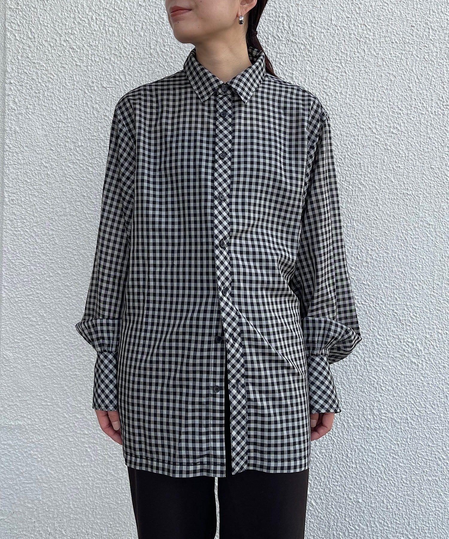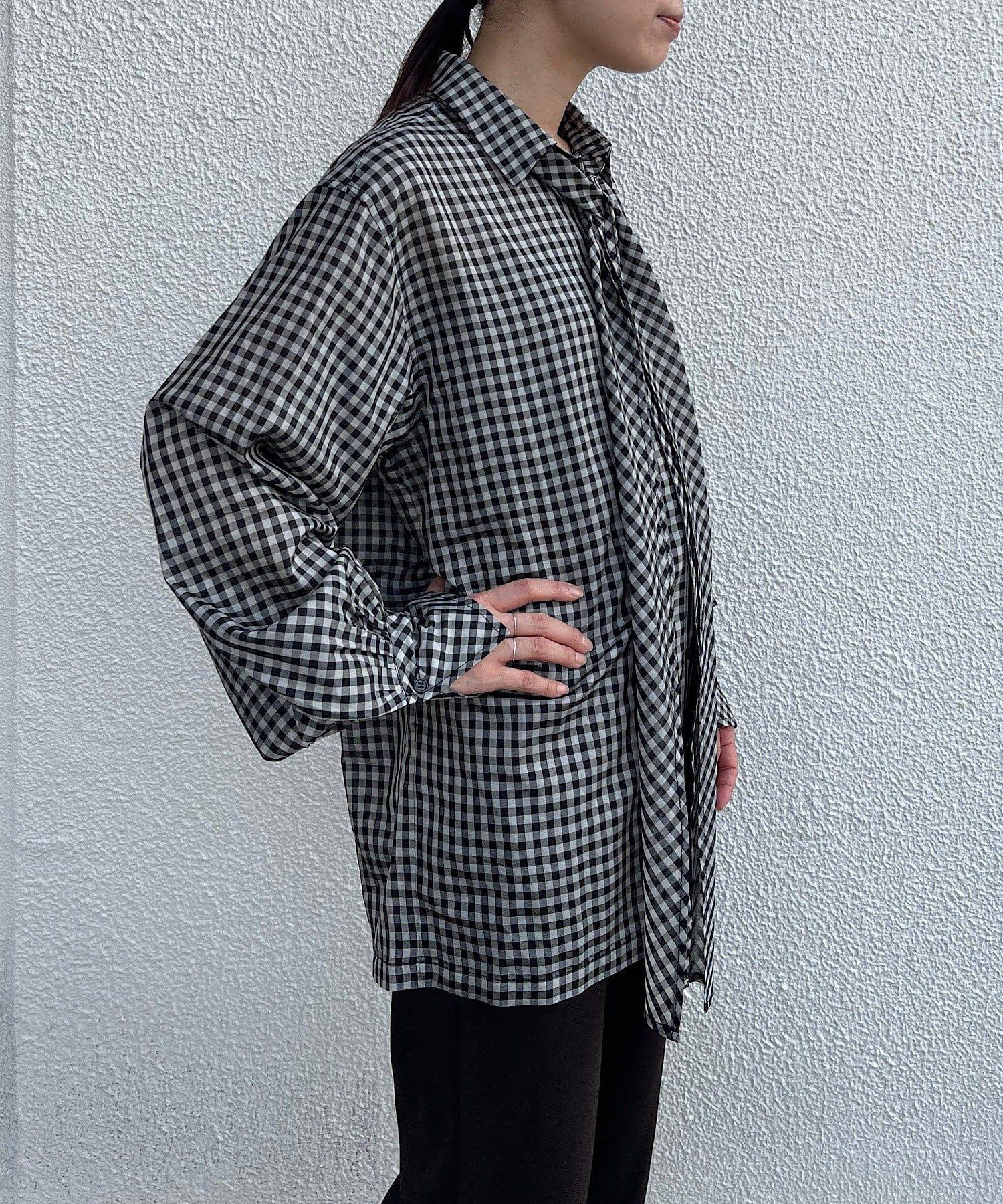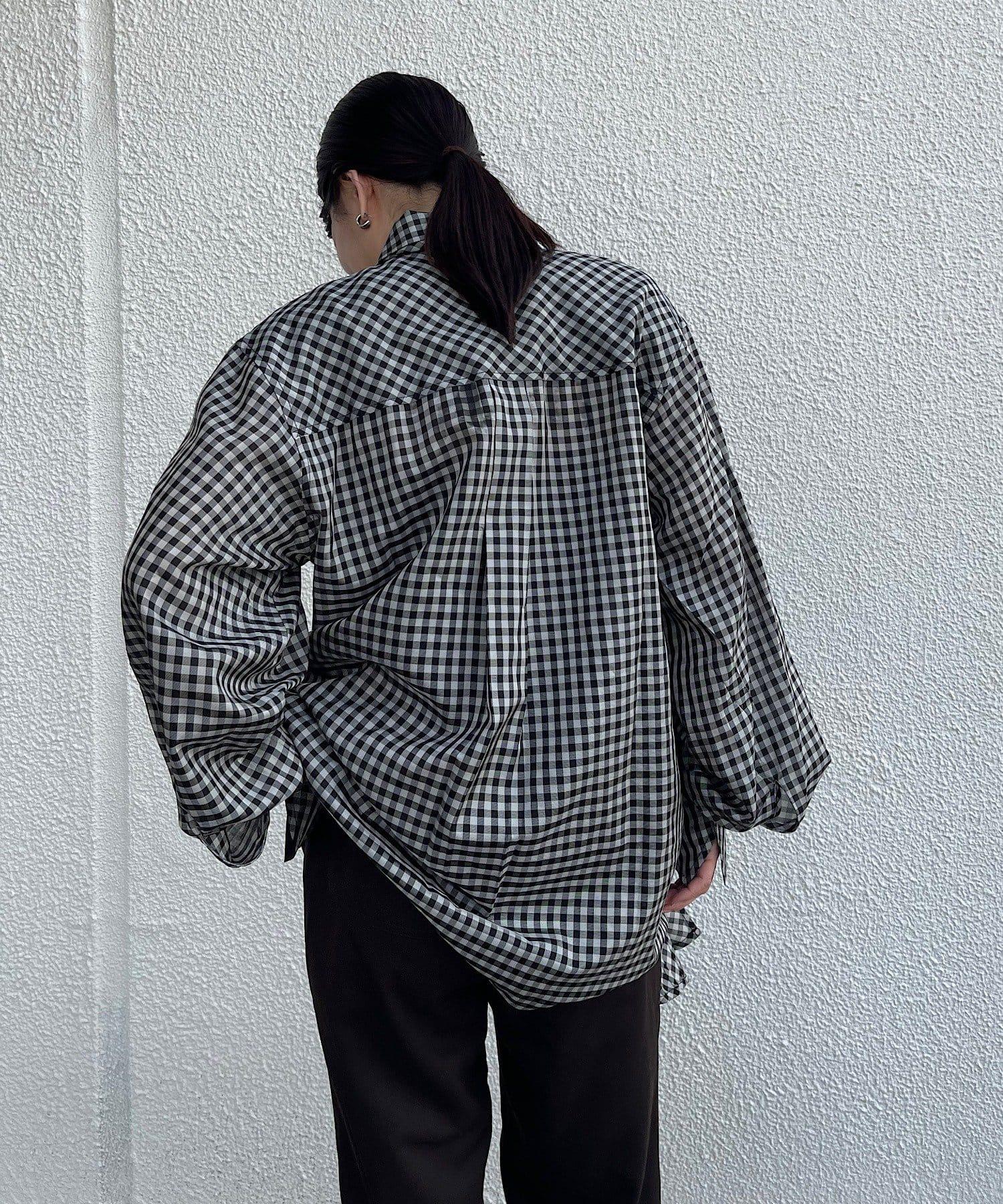 該款襯衫採用 100%醋酸纖維格子薄紗面料。利用這種面料獨特的彈力,打造出外形優美的奢華 BIG 襯衫。襯衫的長度足以蓋住臀部。袖口的褶皺設計給人一種豐滿的感覺。