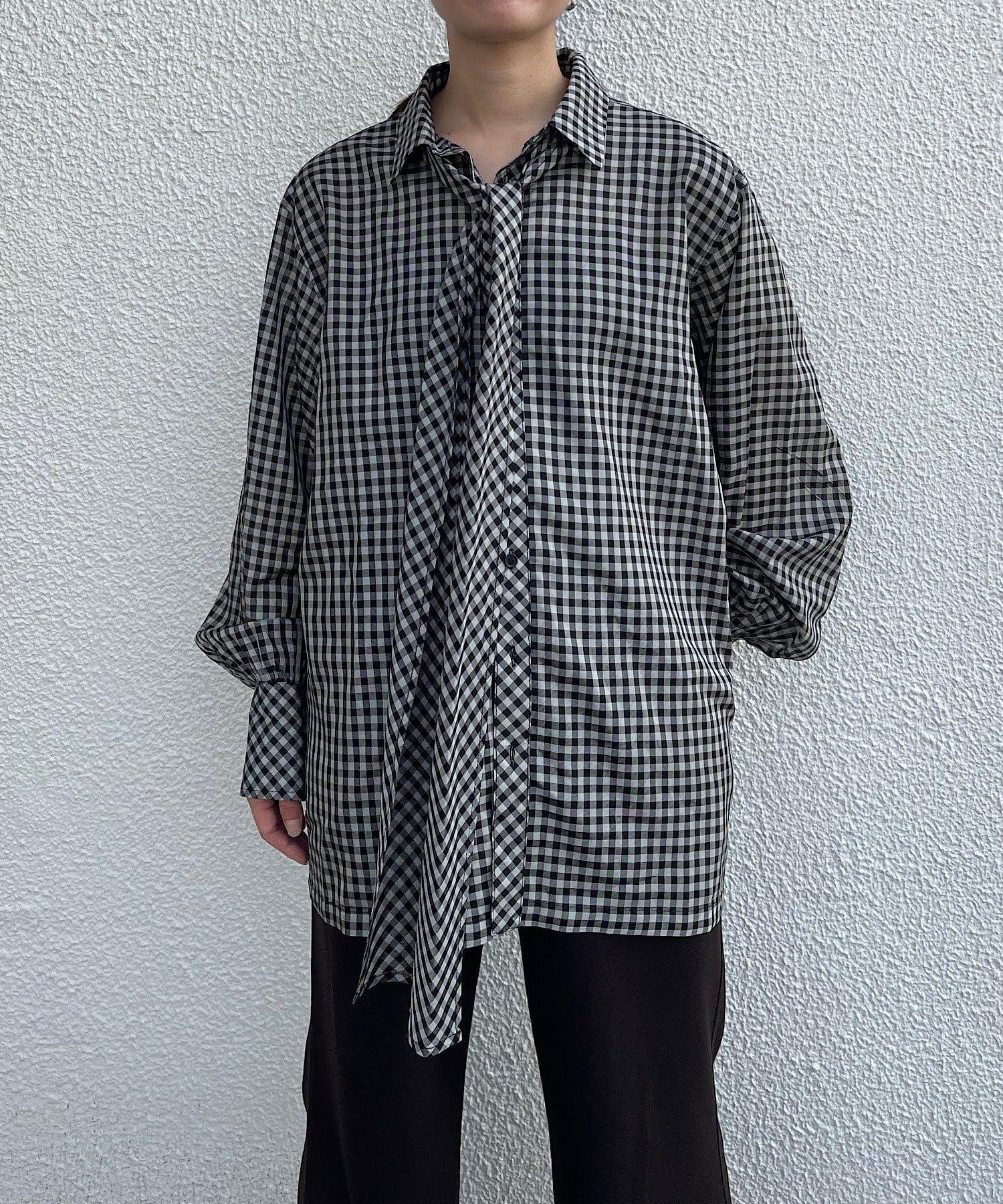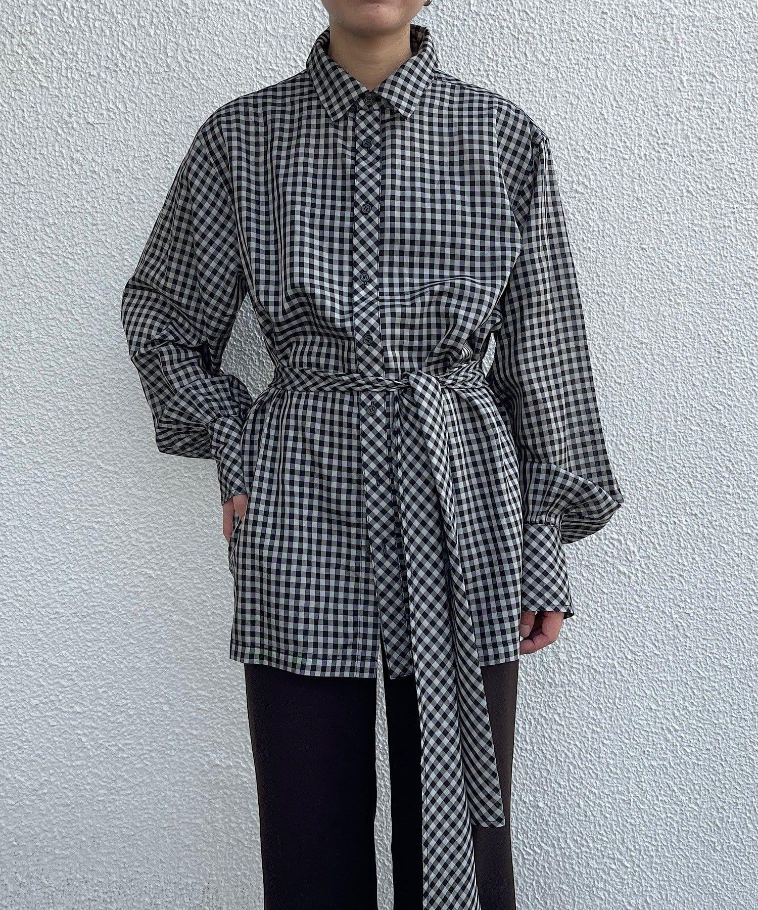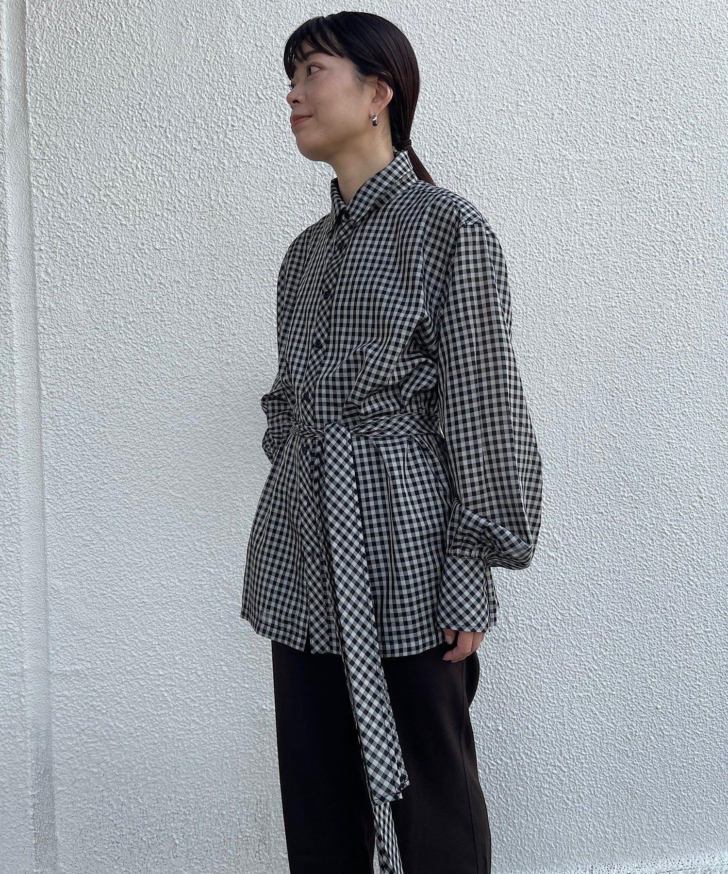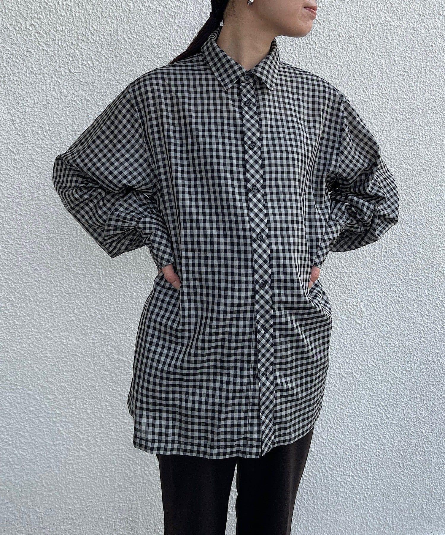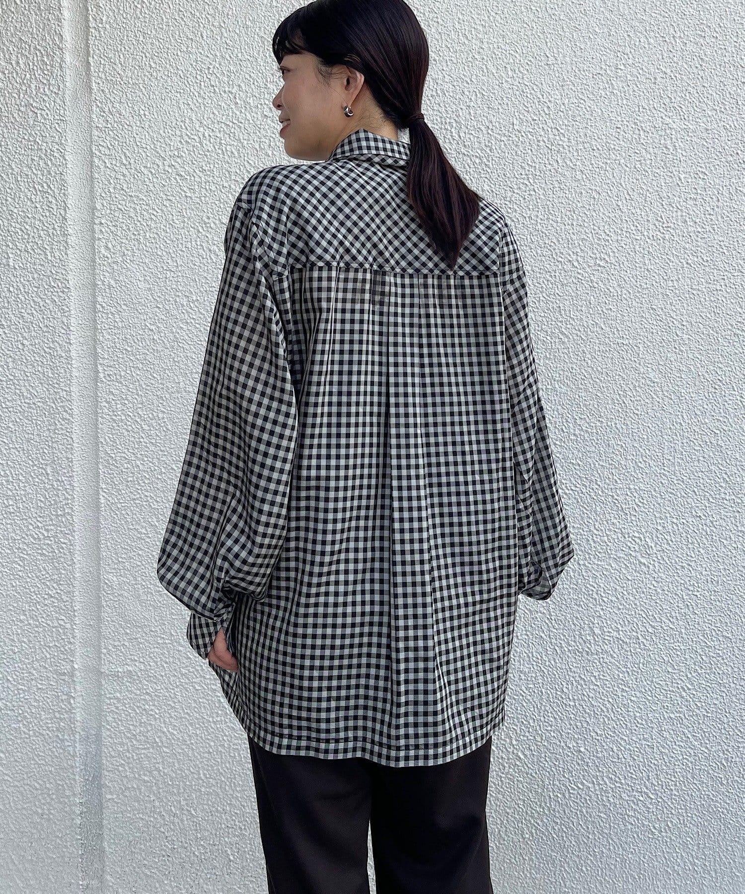 該款襯衫採用 100%醋酸纖維格子薄紗面料。利用這種面料獨特的彈力,打造出外形優美的奢華 BIG 襯衫。襯衫的長度足以蓋住臀部。袖口的褶皺設計給人一種豐滿的感覺。