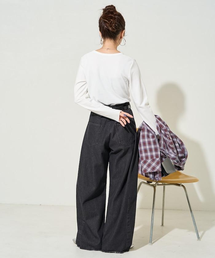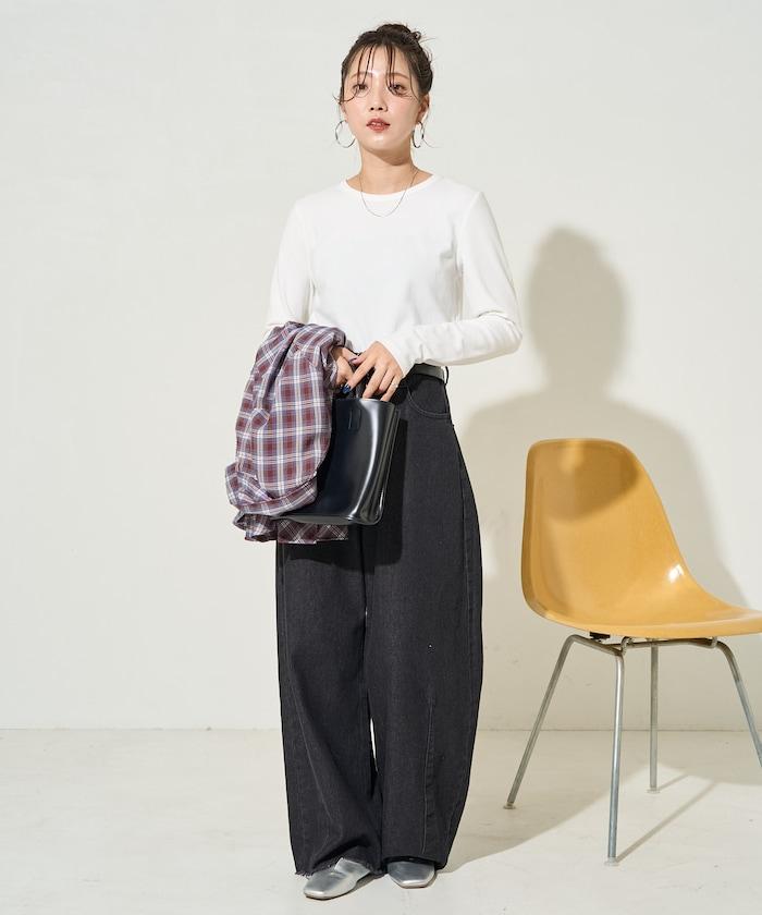 恰到好處的剪裁與寬大的牛仔褲或休閒褲搭配,營造出利落的平衡感!