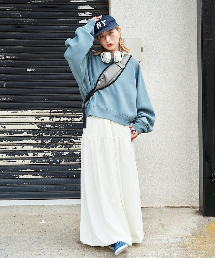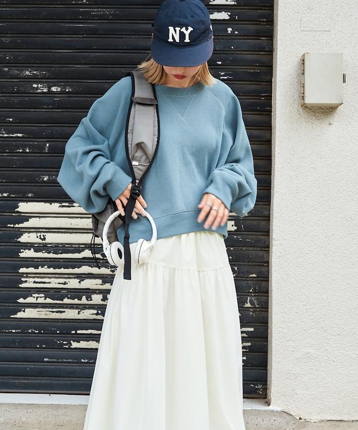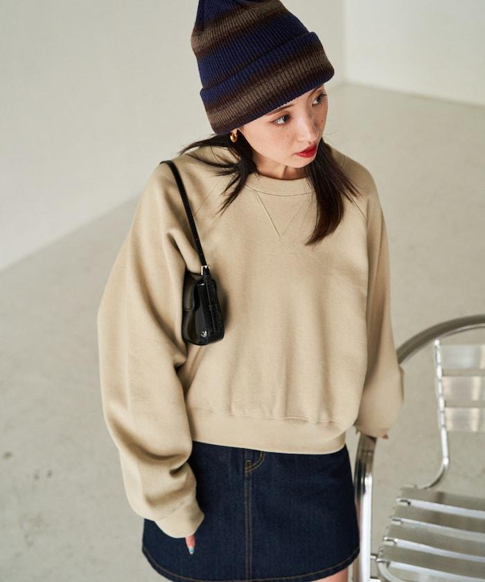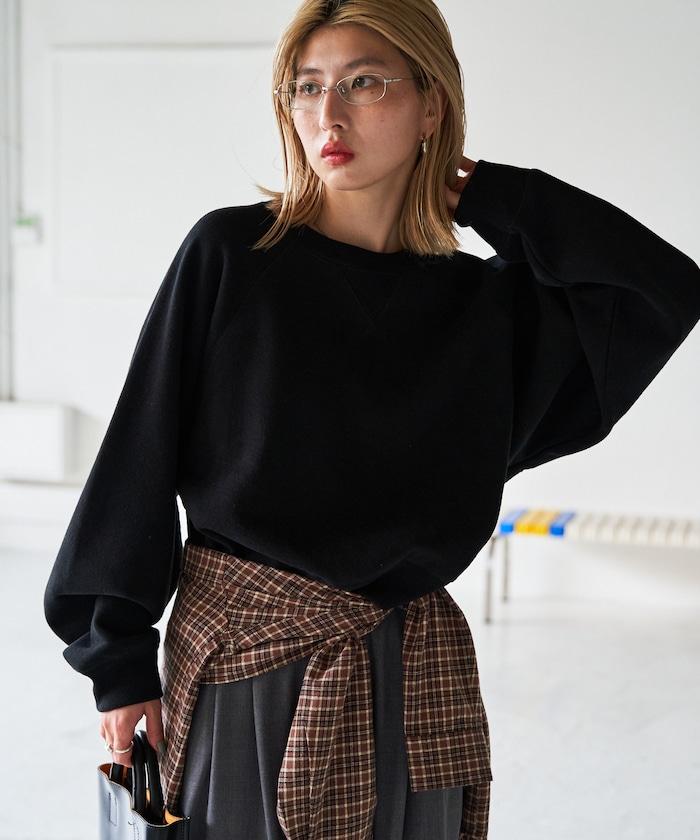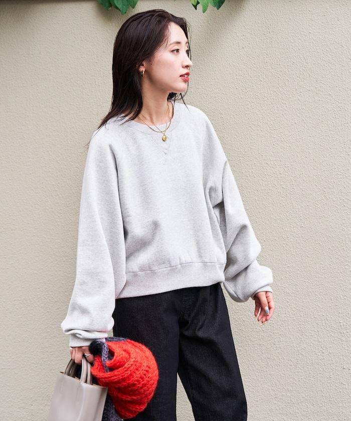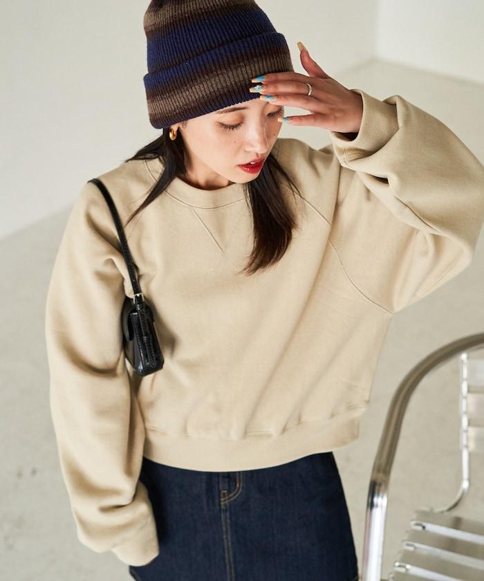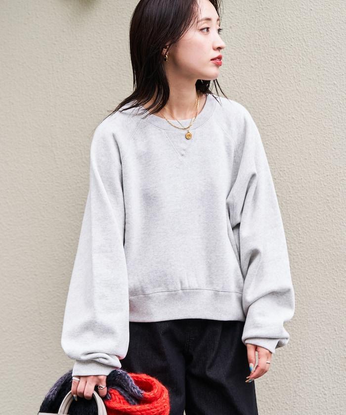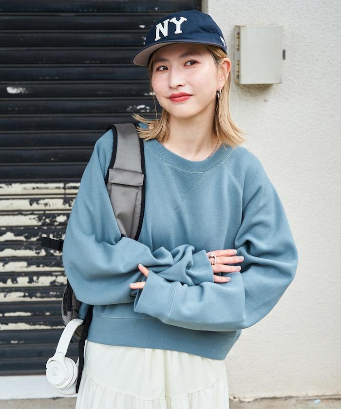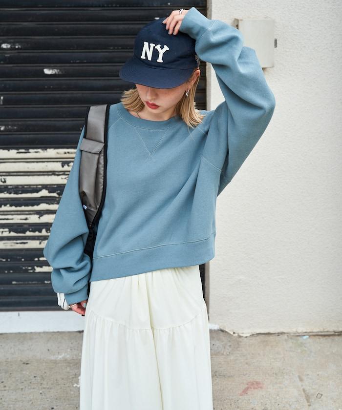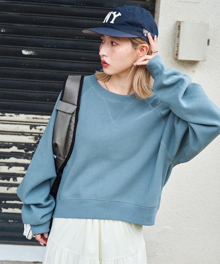 重量厚感 棉布 拼接 肩袖 短款 衛衣