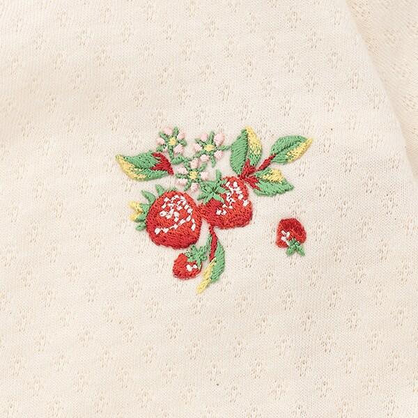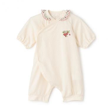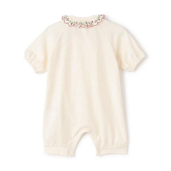 野草莓刺繡和荷葉邊的可愛新生兒服裝。
