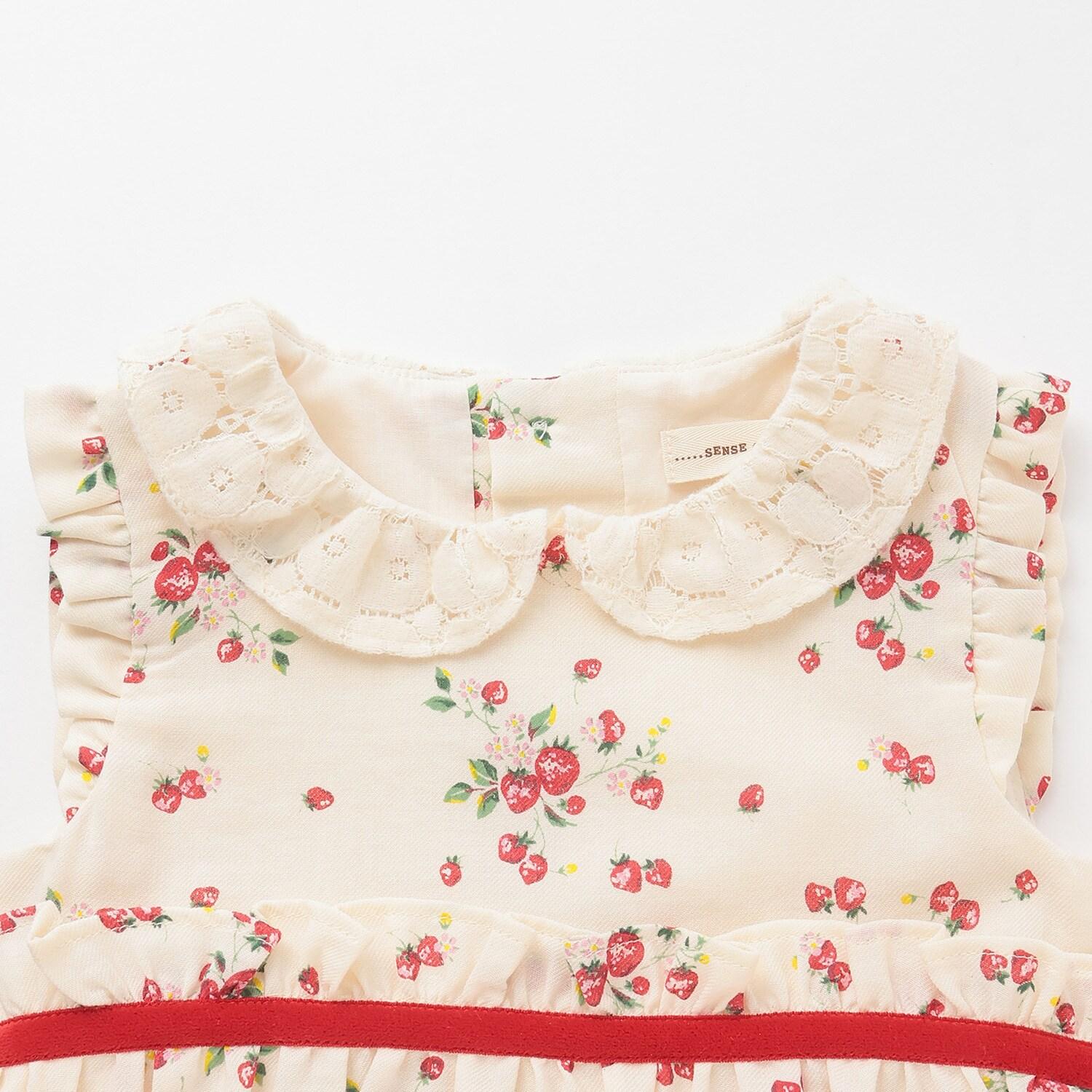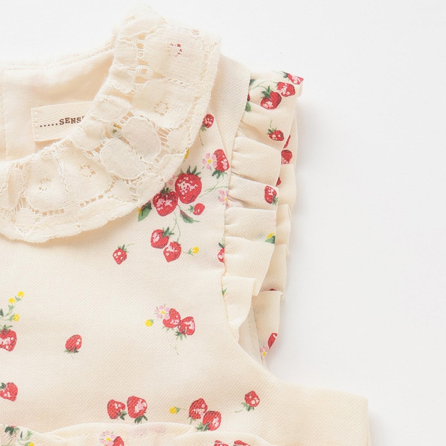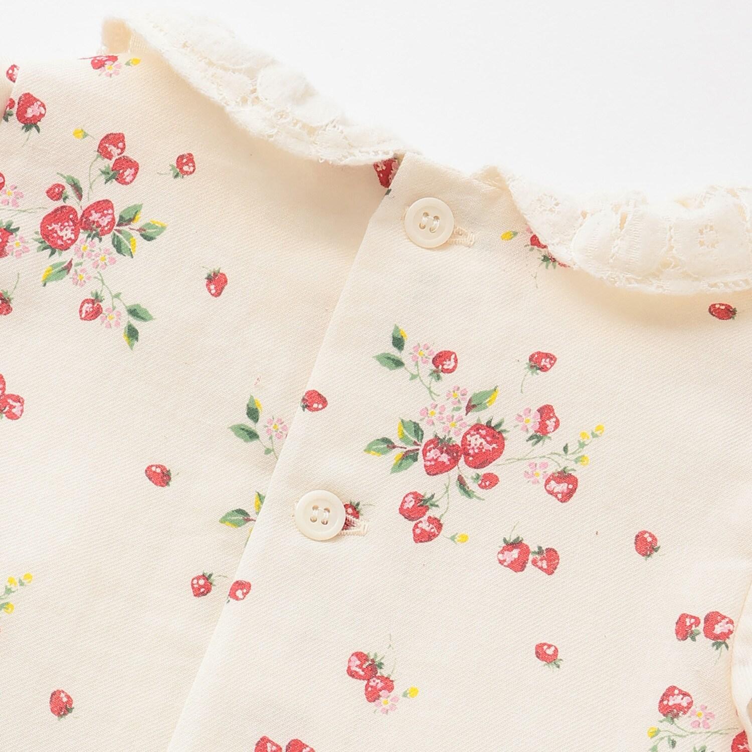 鮮豔的野草莓圖案與自然紋理相得益彰。