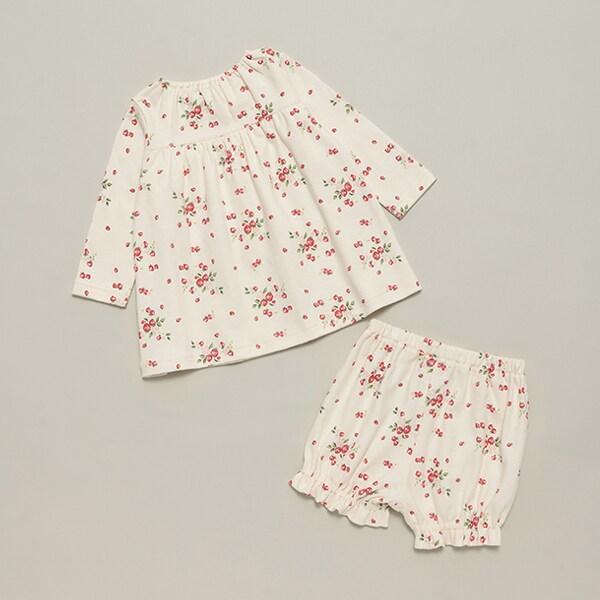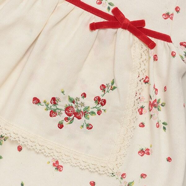 這款連體套裝包括帶圍裙的迷你裙和帶有野草莓刺繡的下裝。上衣採用 A 字形輪廓,從胸部接縫處向下擺延伸,更顯可愛。下身是圓形設計,下襬有鬆緊帶。每件單品還可單獨使用,讓您享受廣泛的搭配樂趣。本品採用有機棉製成。建議穿著季節:秋冬季] [透明度] 不透明。