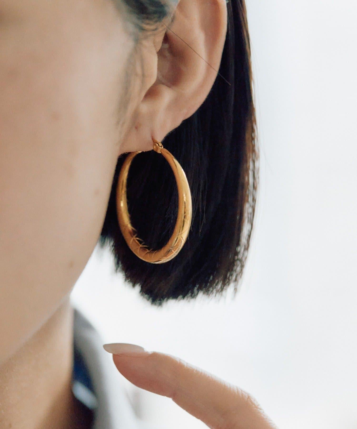 《金屬アレルギー対応/ステンレス》 圖案裝飾 圈式 耳環