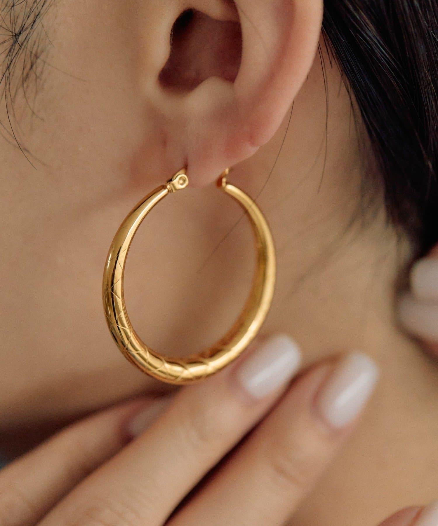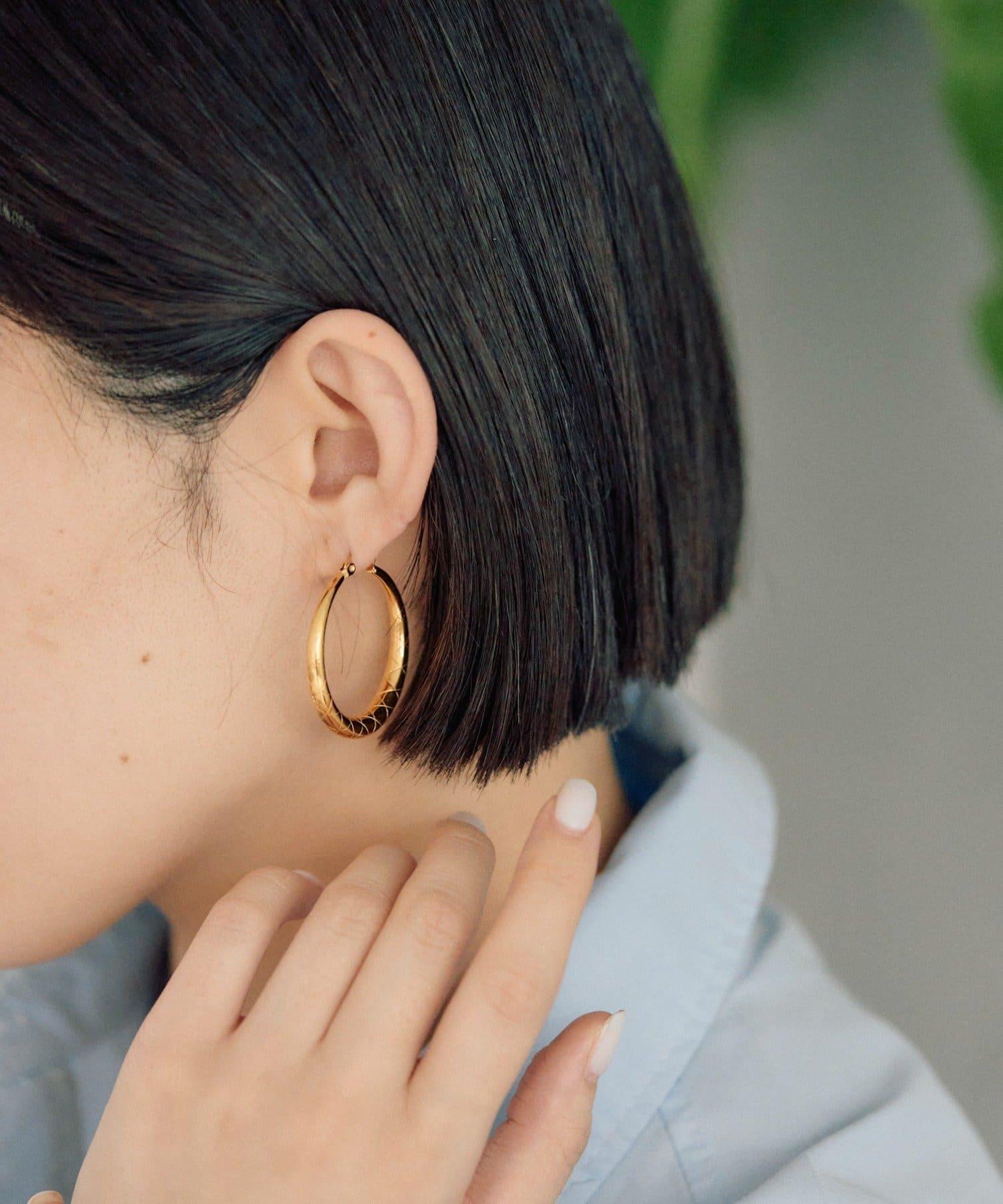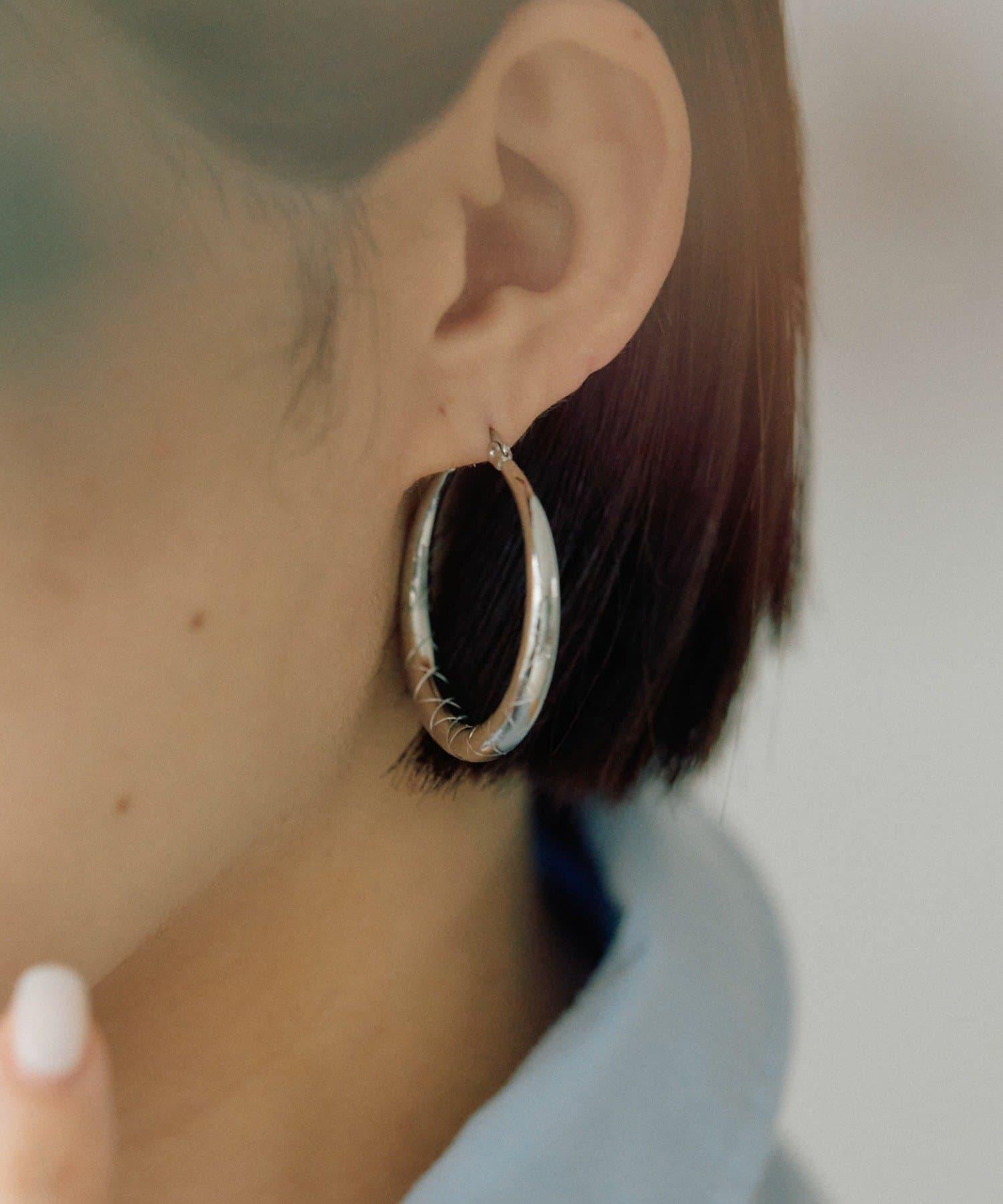 環形耳環越往中間越粗,使其成為管狀,非常輕巧。