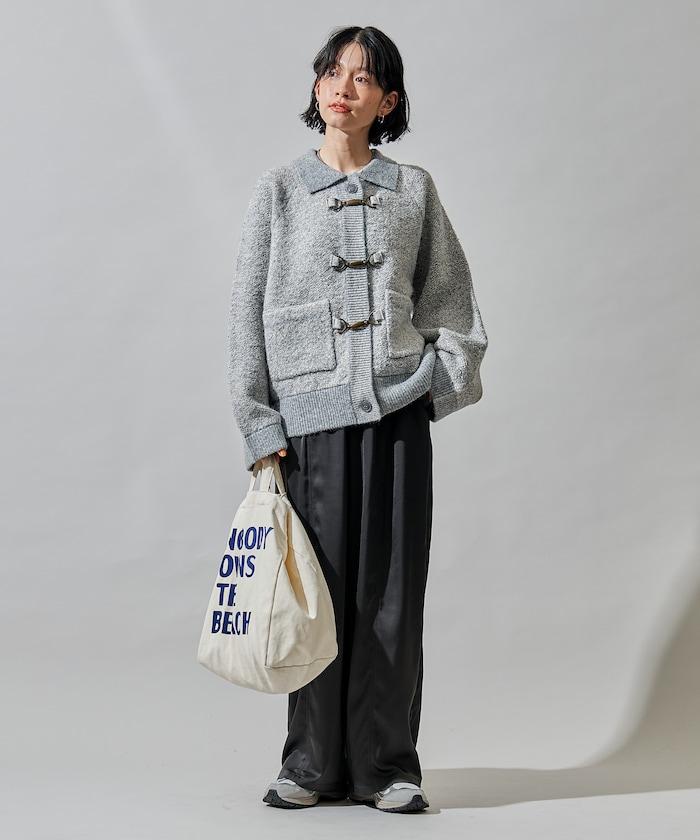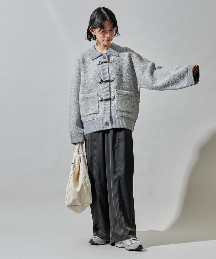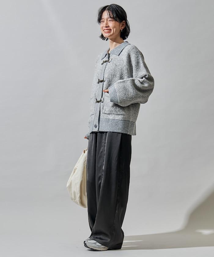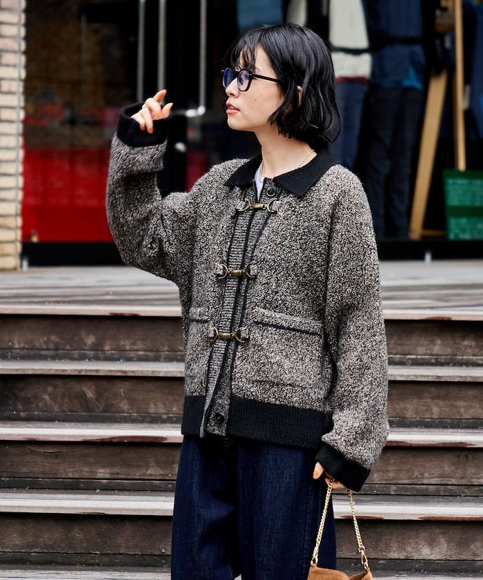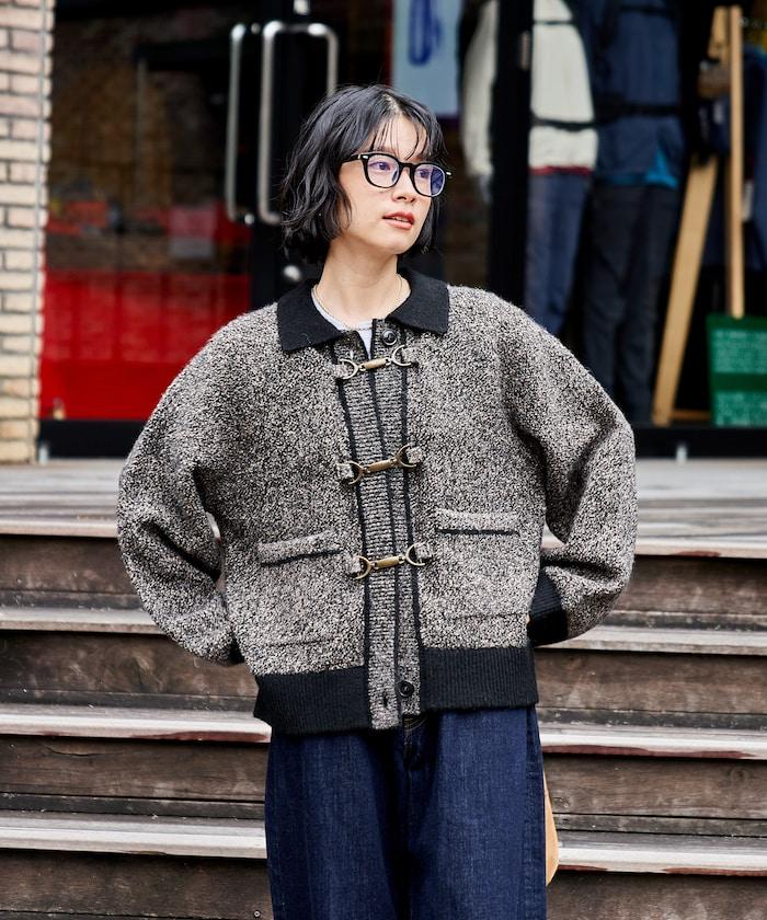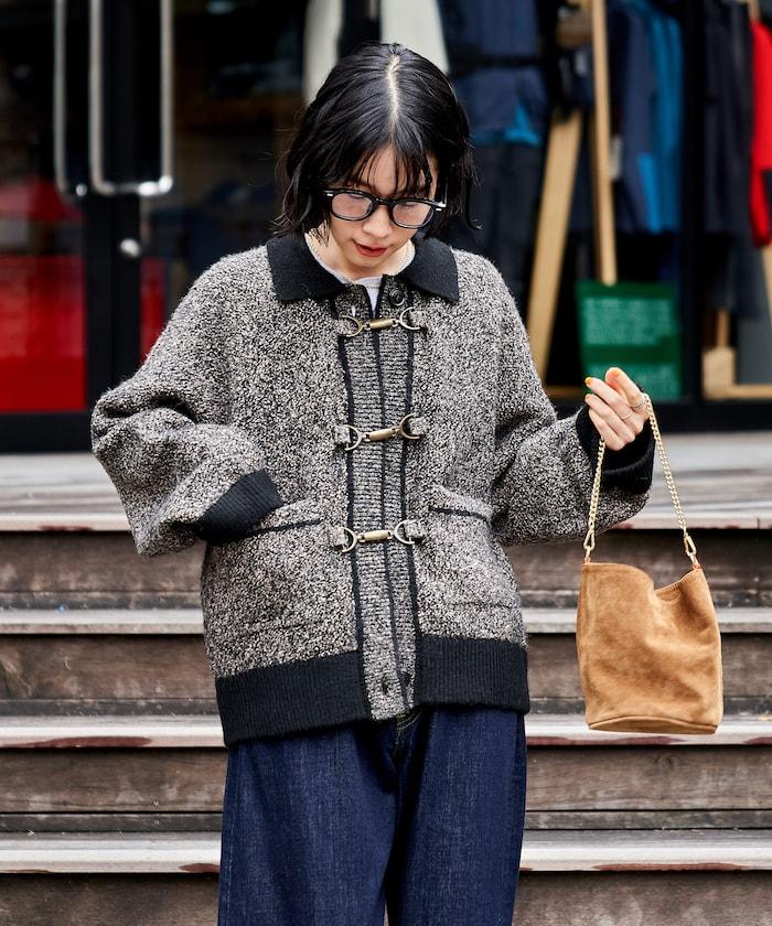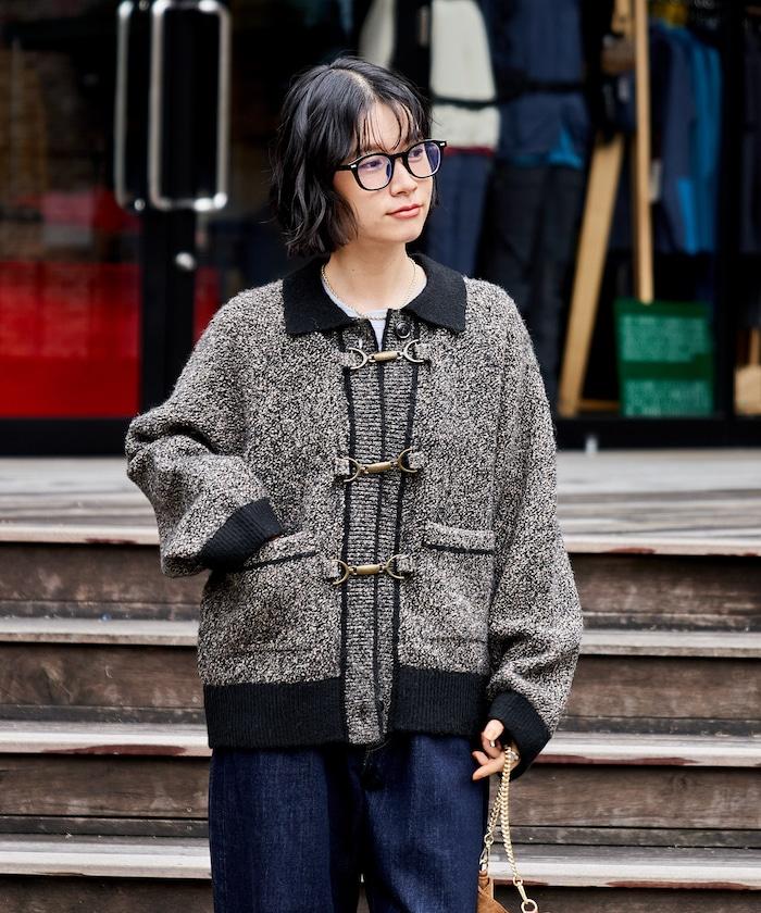 混色針織開衫,金屬掛鉤極具存在感。