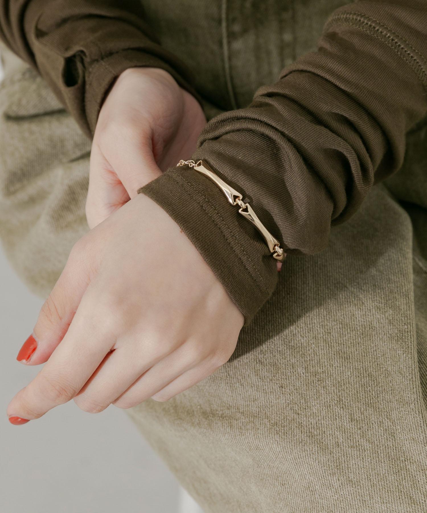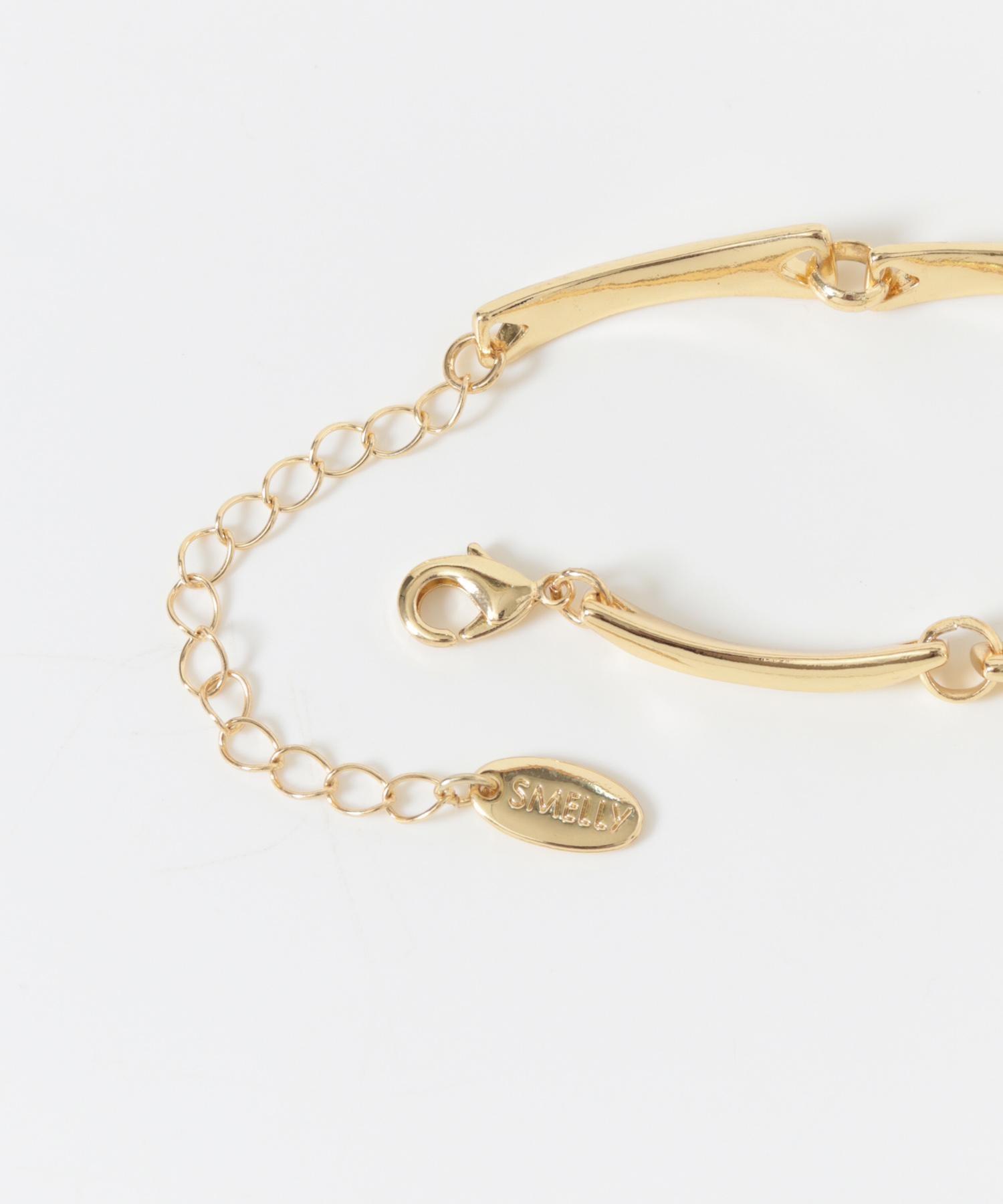 這款手鍊由一系列形狀獨特的金屬條組成。