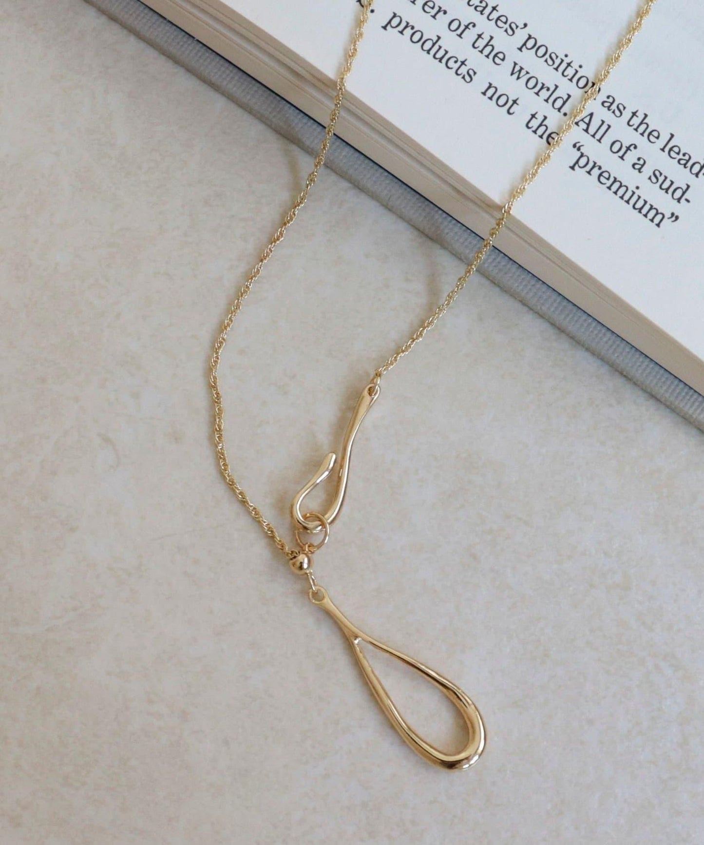 這款項鍊是帶有細微金屬墜飾的鉤形項鍊。