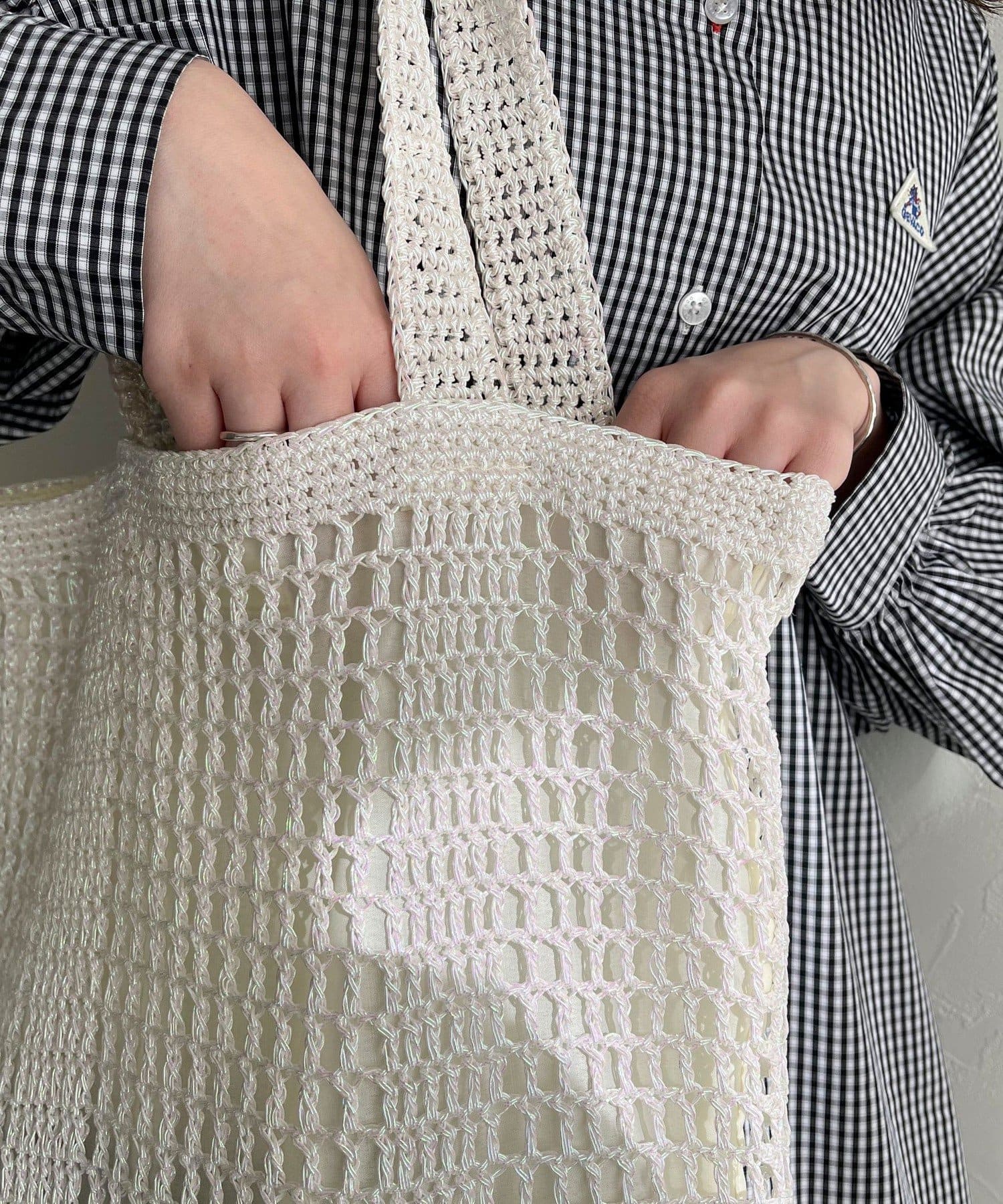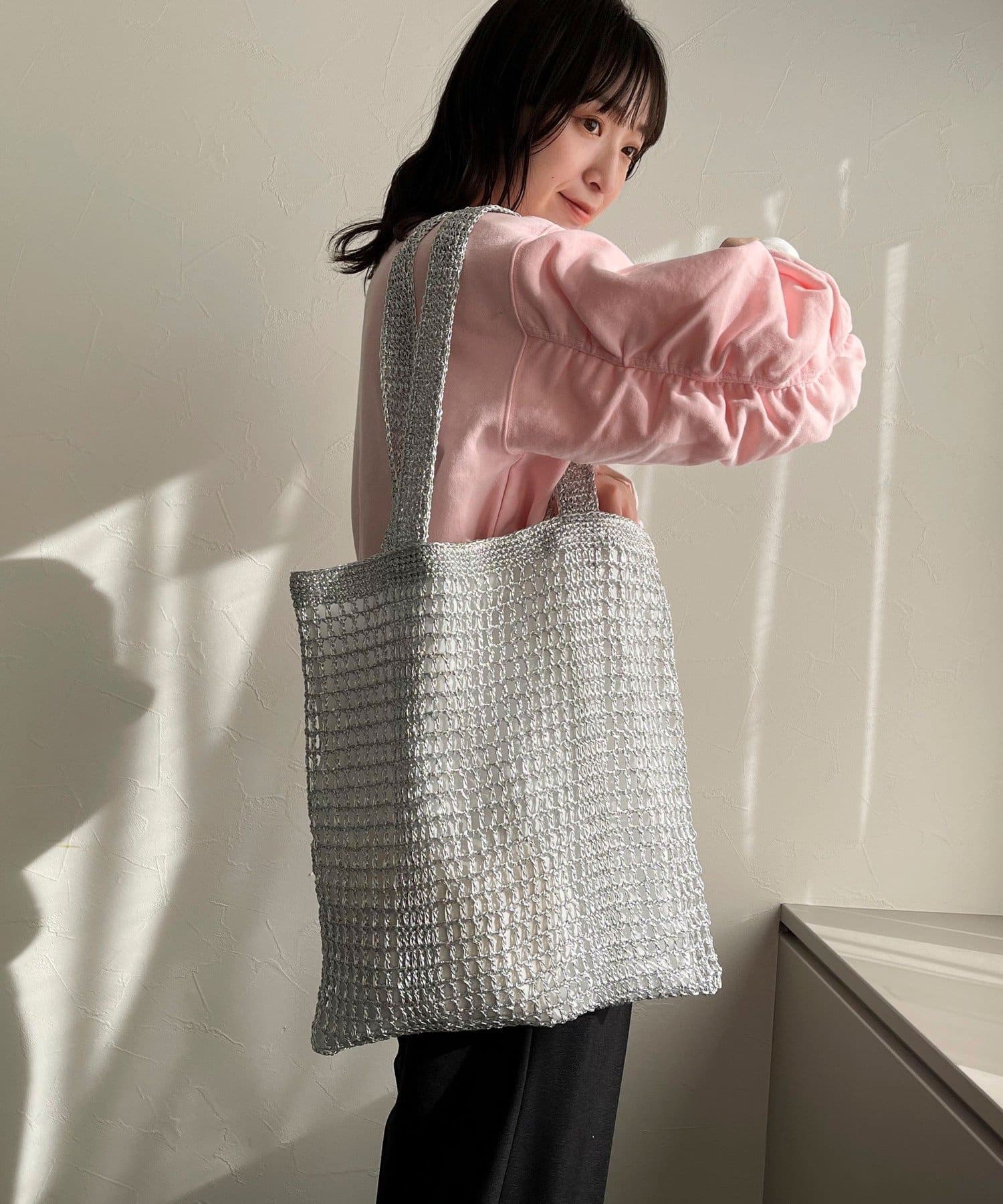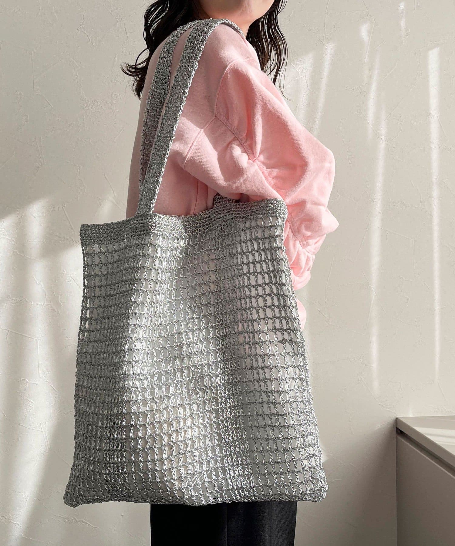 方形手提包,金屬繩編織,給人成熟印象