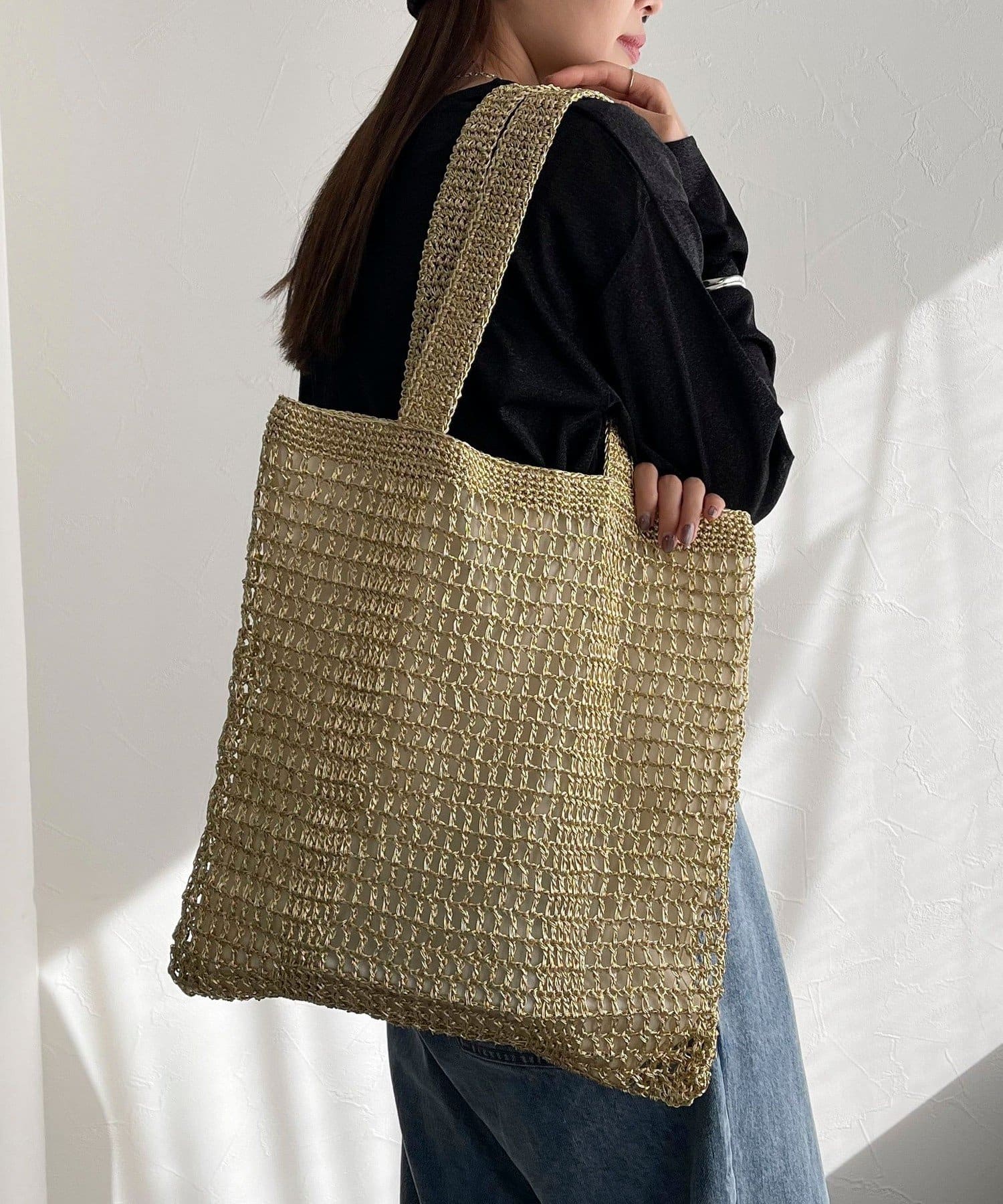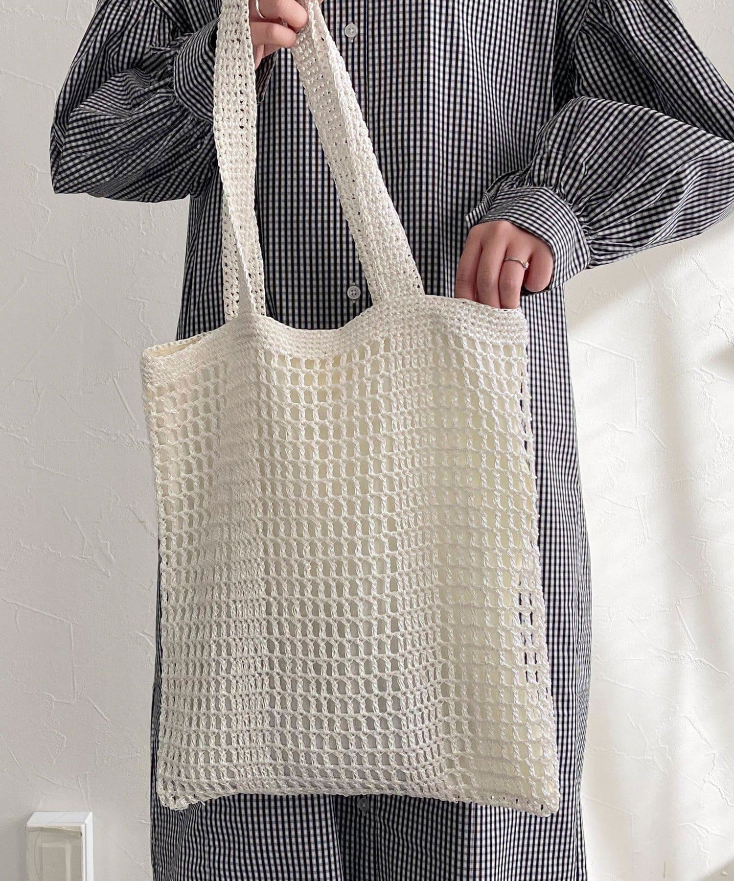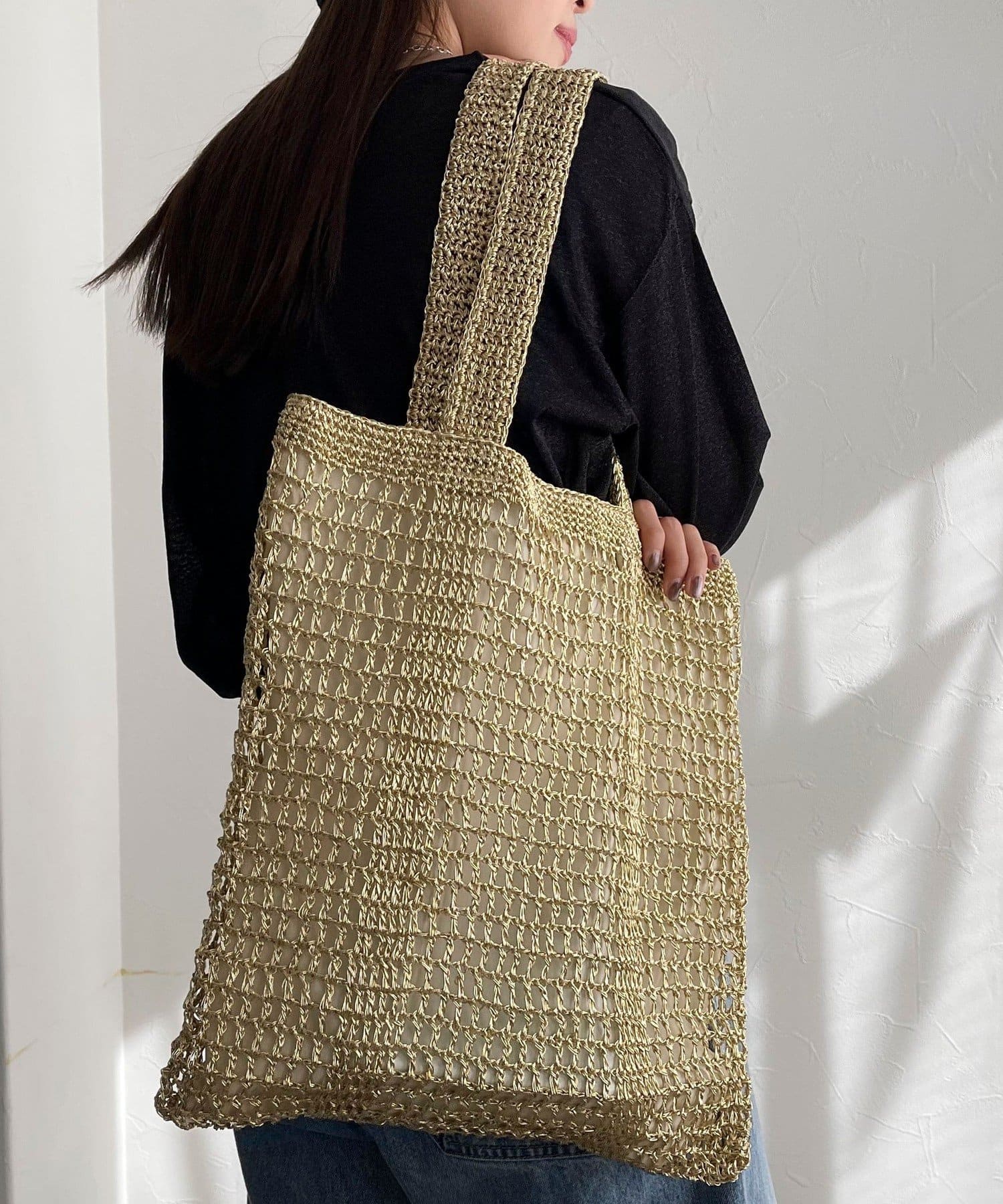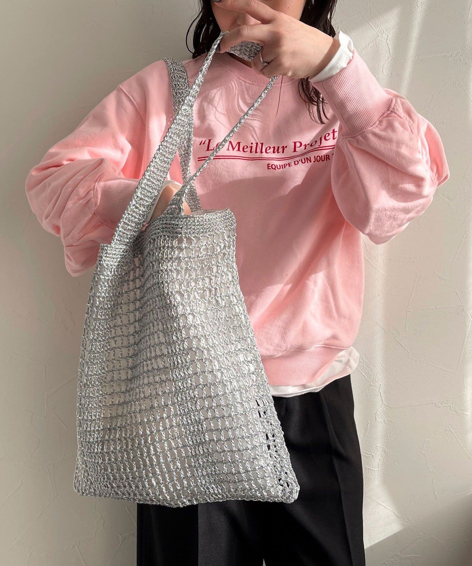 方形手提包,金屬繩編織,給人成熟印象
