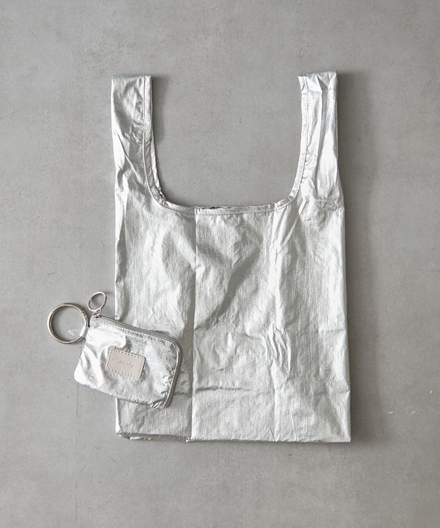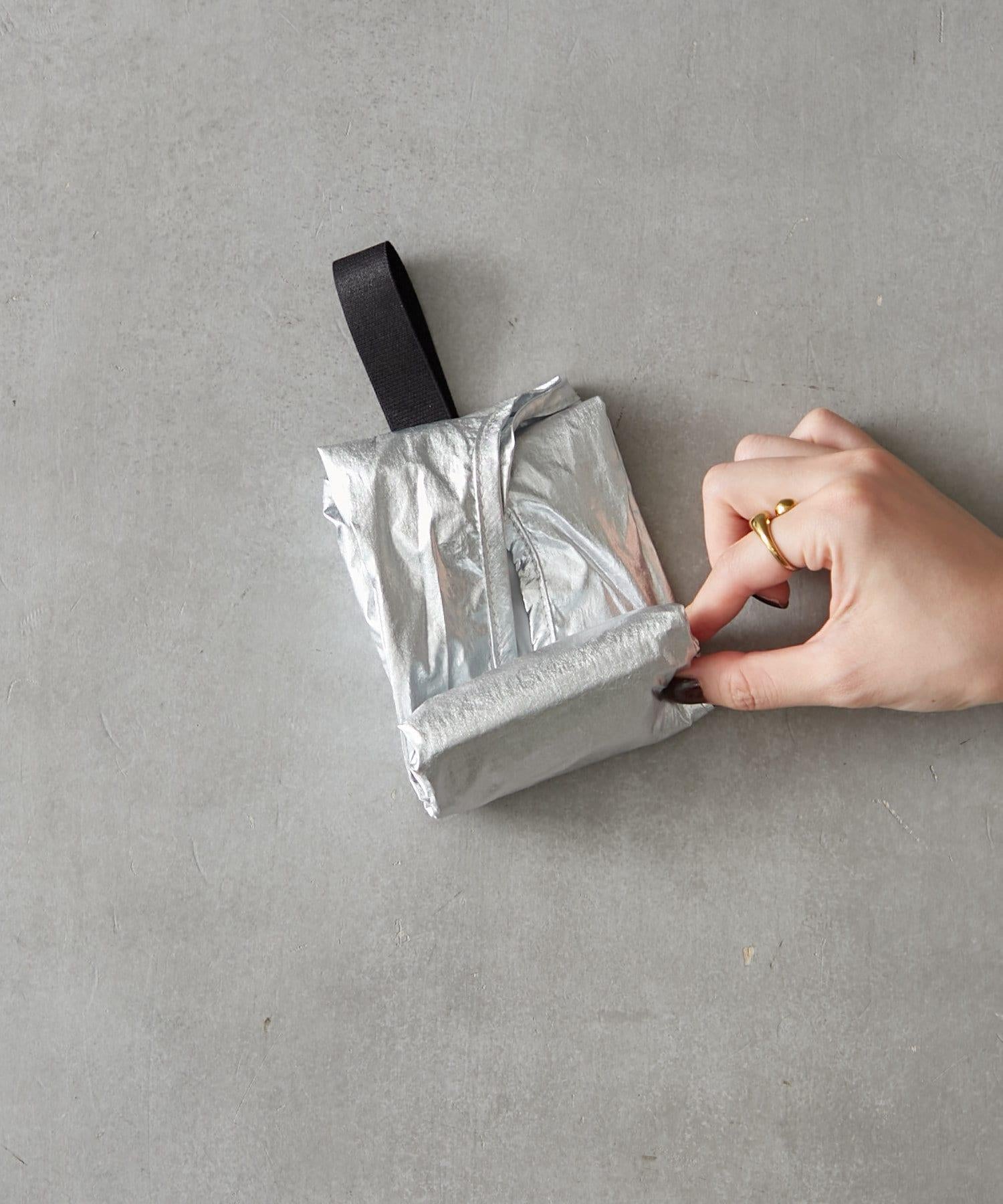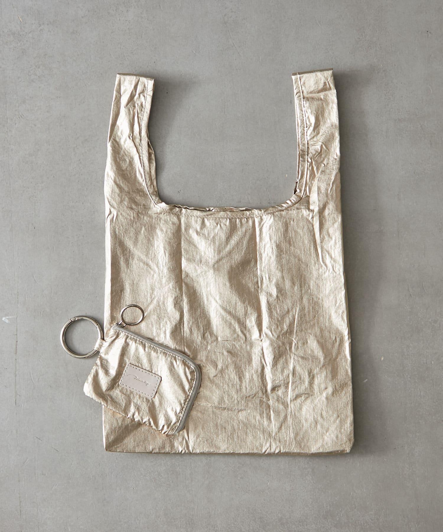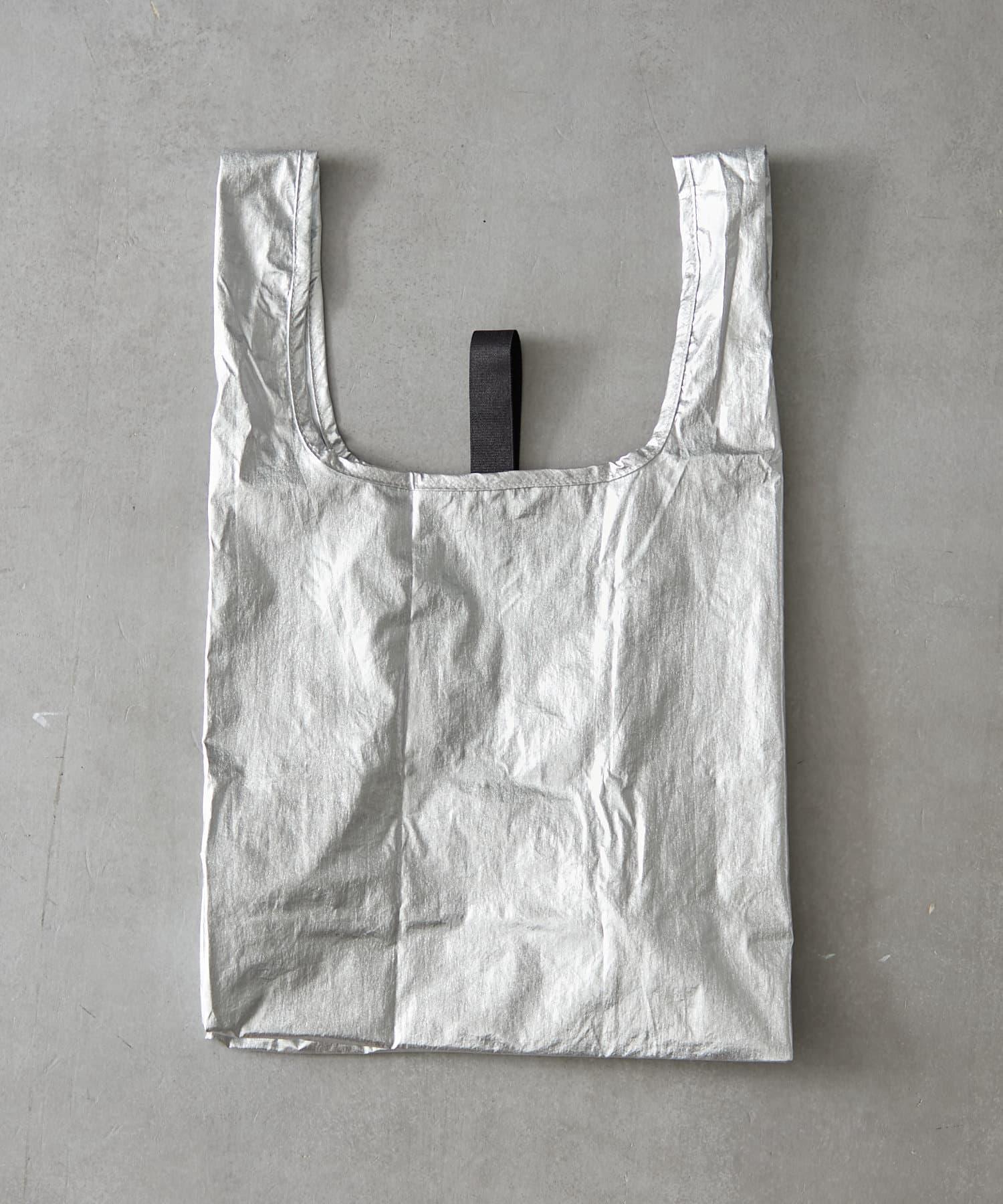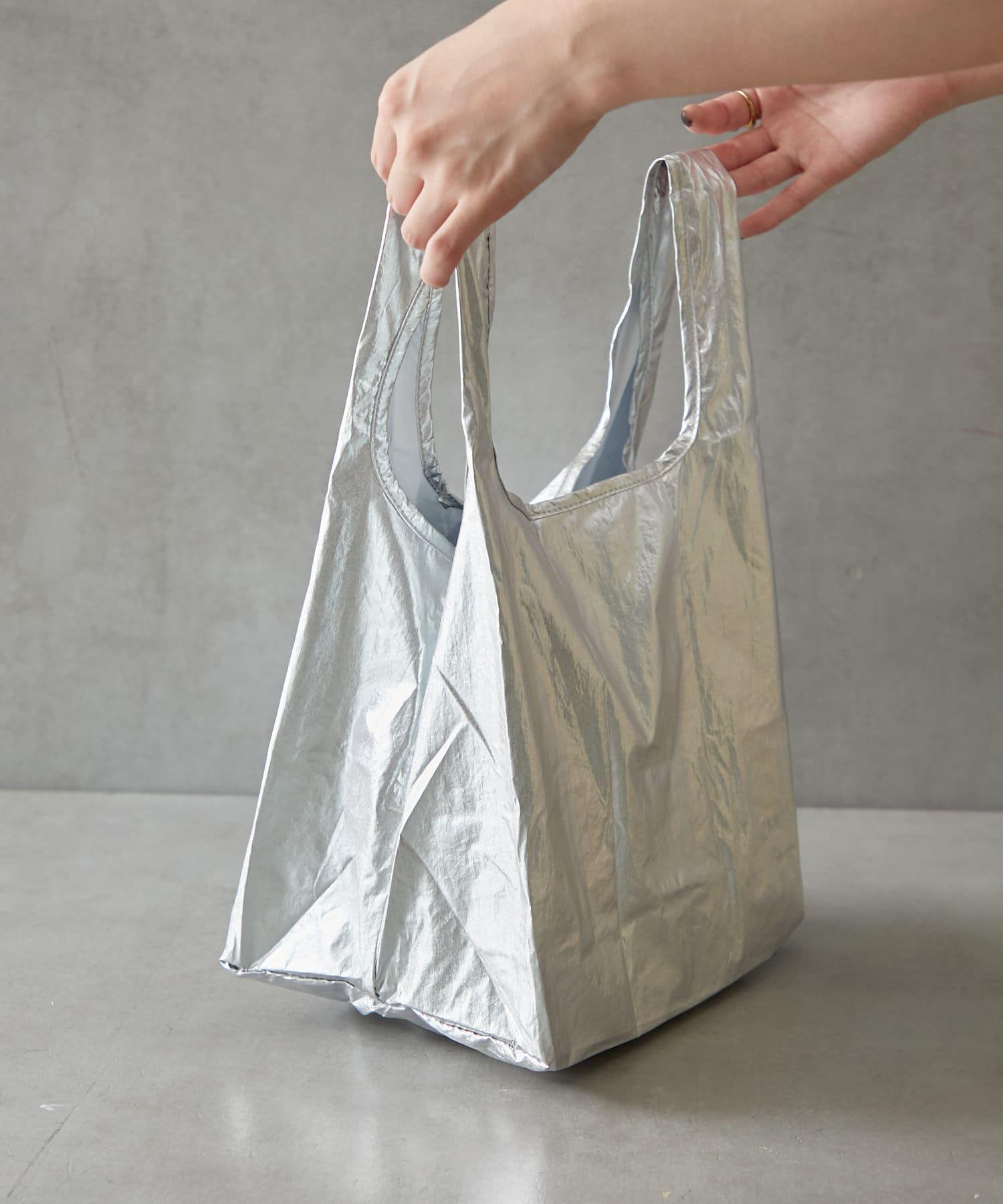 本店長期暢銷的金屬包。之前大受歡迎的 S 號銀色和金色環保袋現已重新發行!這款包有一個夾層,大到足以裝下便利店的午餐盒。包內有一個同樣材質的小袋,不用時可以收納得很緊湊。小袋上還有一個卡扣,您可以把它掛在普通的包上或褲子的皮帶環上,以防忘記帶環保袋。另頁還有更大的 M 號。