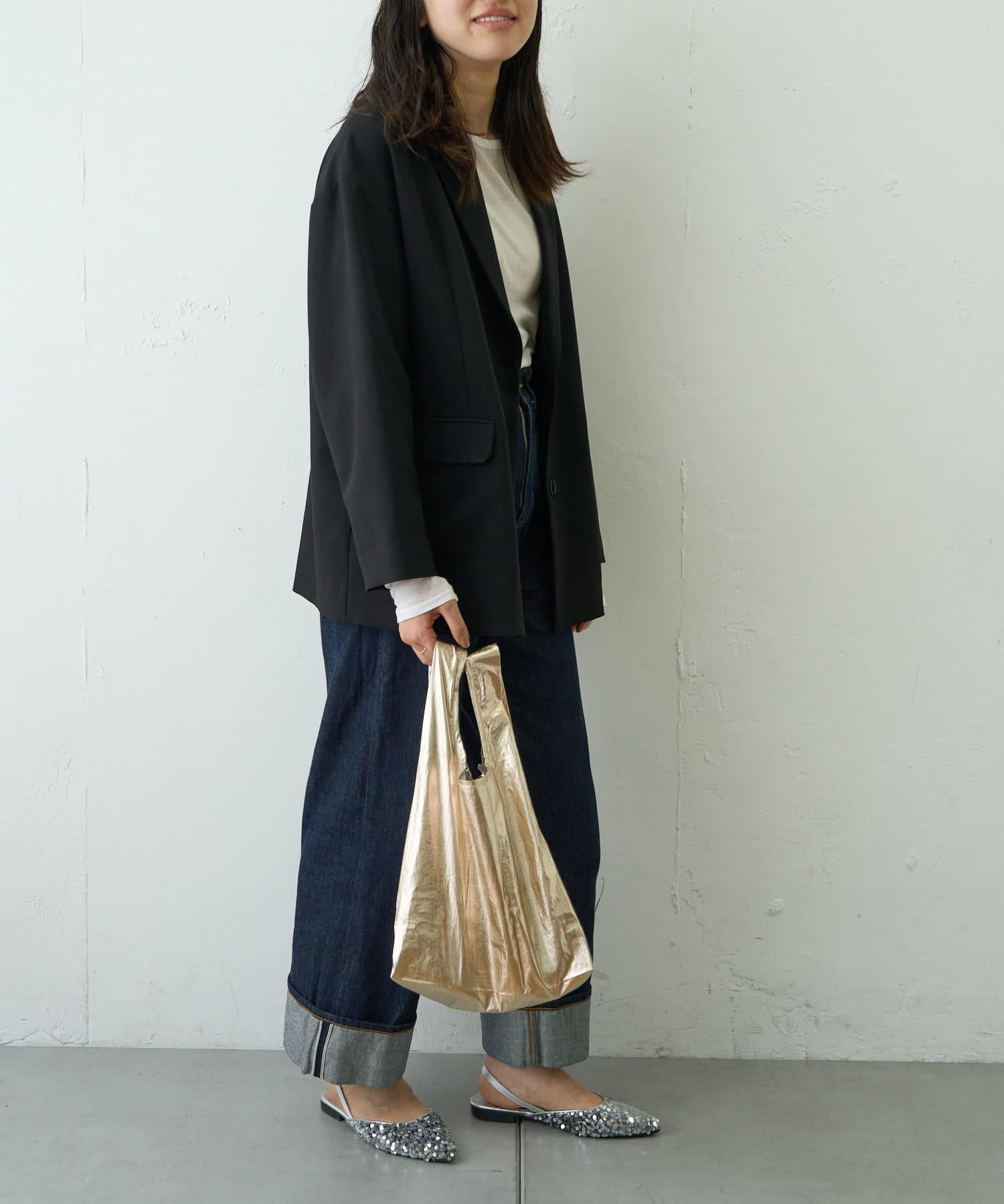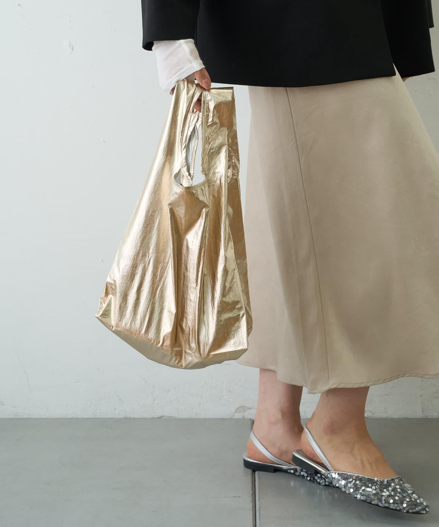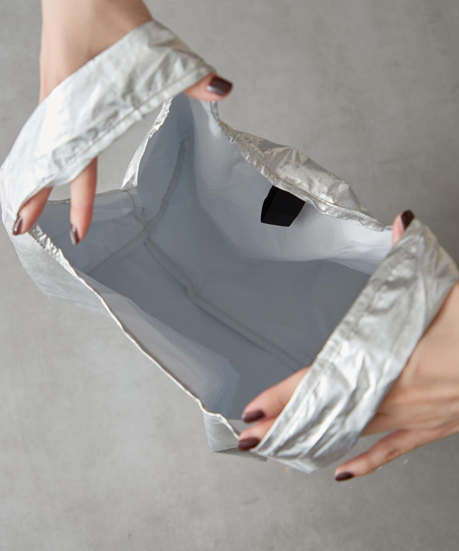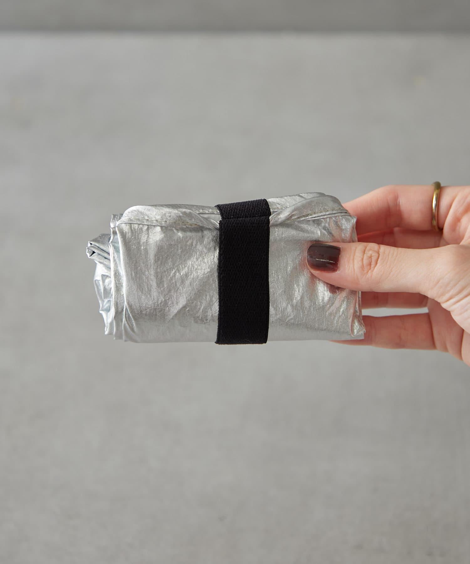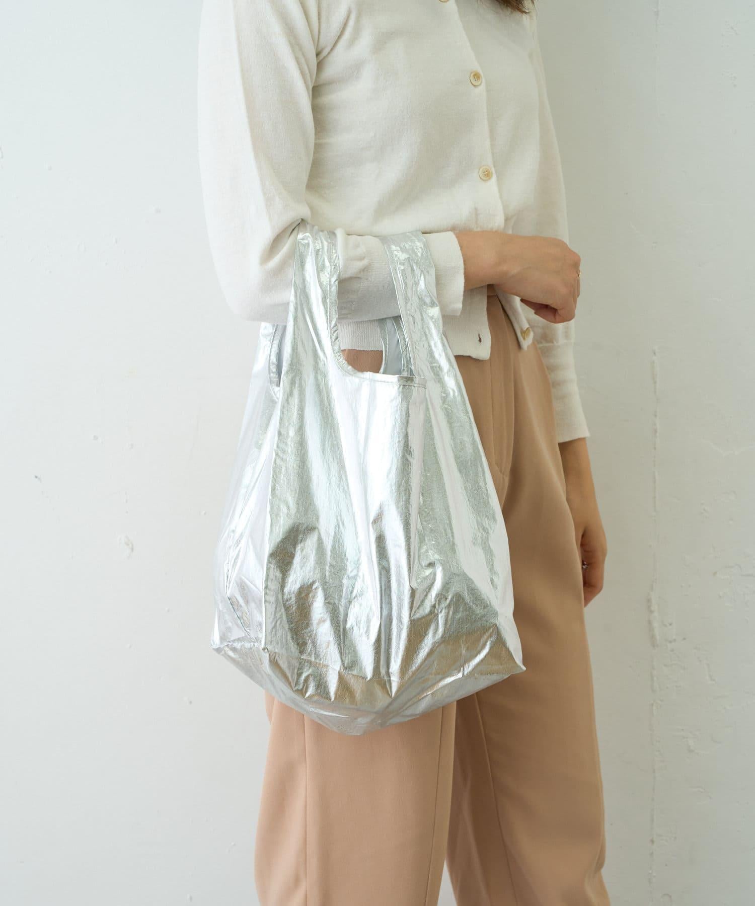 本店長期暢銷的金屬包。之前大受歡迎的 S 號銀色和金色環保袋現已重新發行!這款包有一個夾層,大到足以裝下便利店的午餐盒。包內有一個同樣材質的小袋,不用時可以收納得很緊湊。小袋上還有一個卡扣,您可以把它掛在普通的包上或褲子的皮帶環上,以防忘記帶環保袋。另頁還有更大的 M 號。
