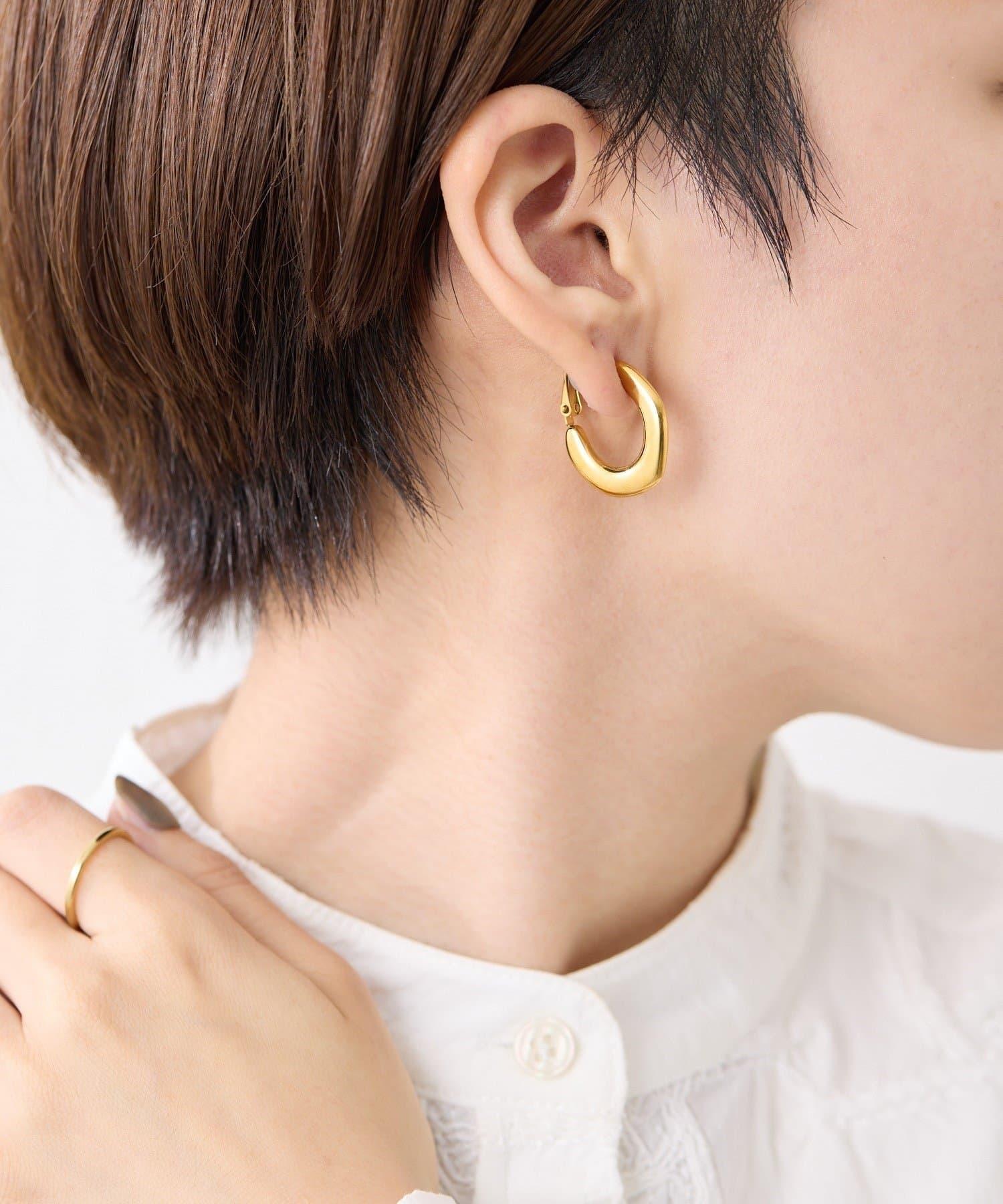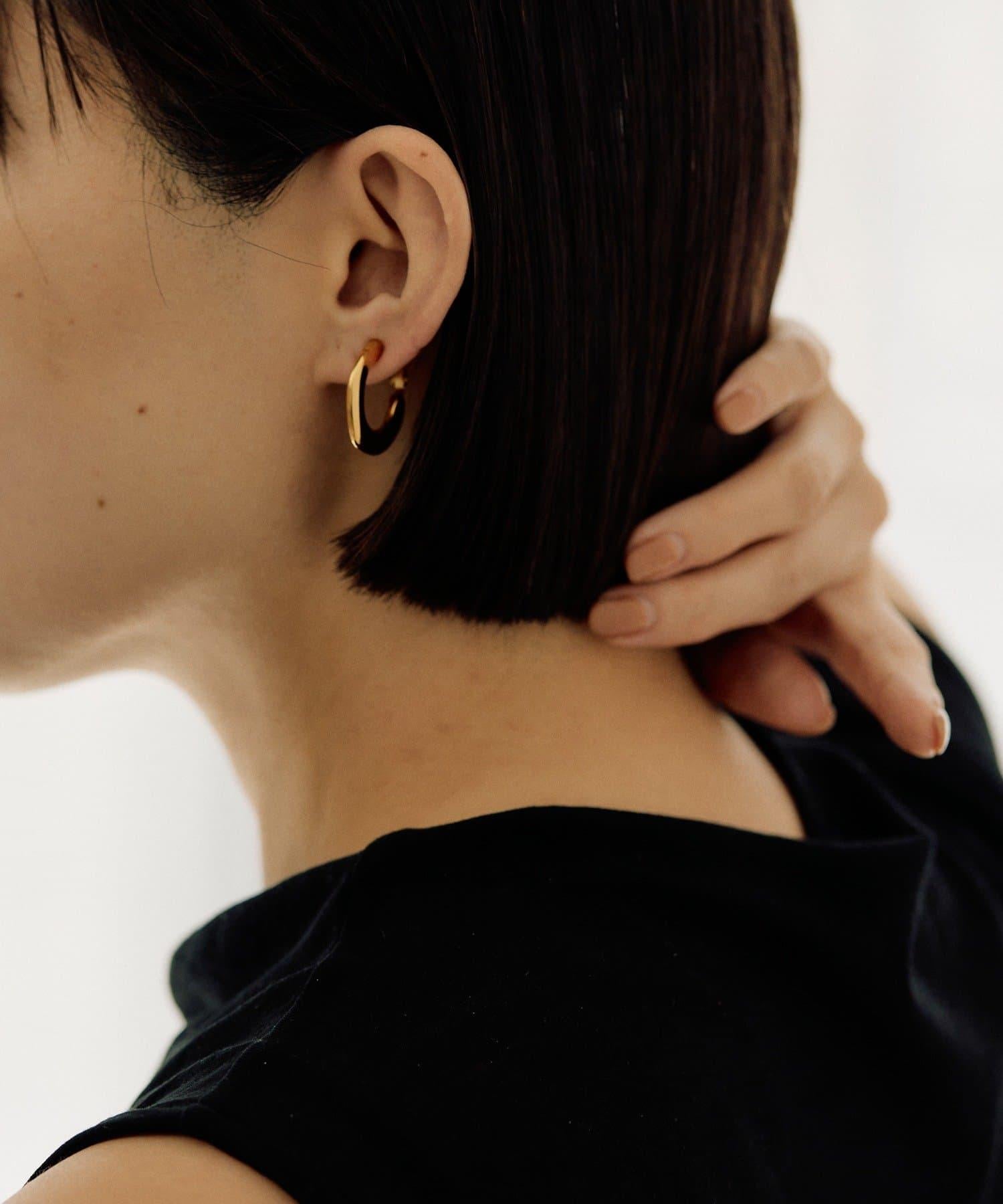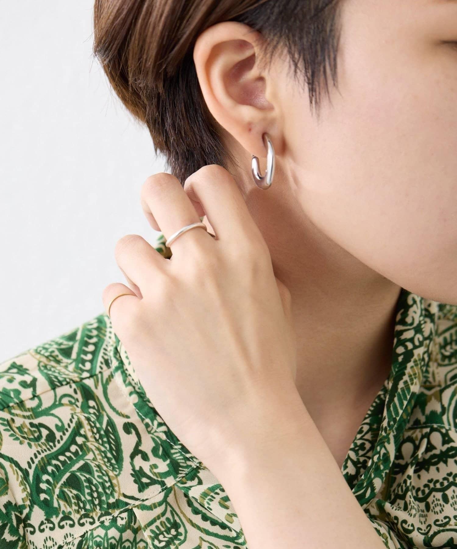 扁平的環形耳環在耳邊營造出強烈的存在感。