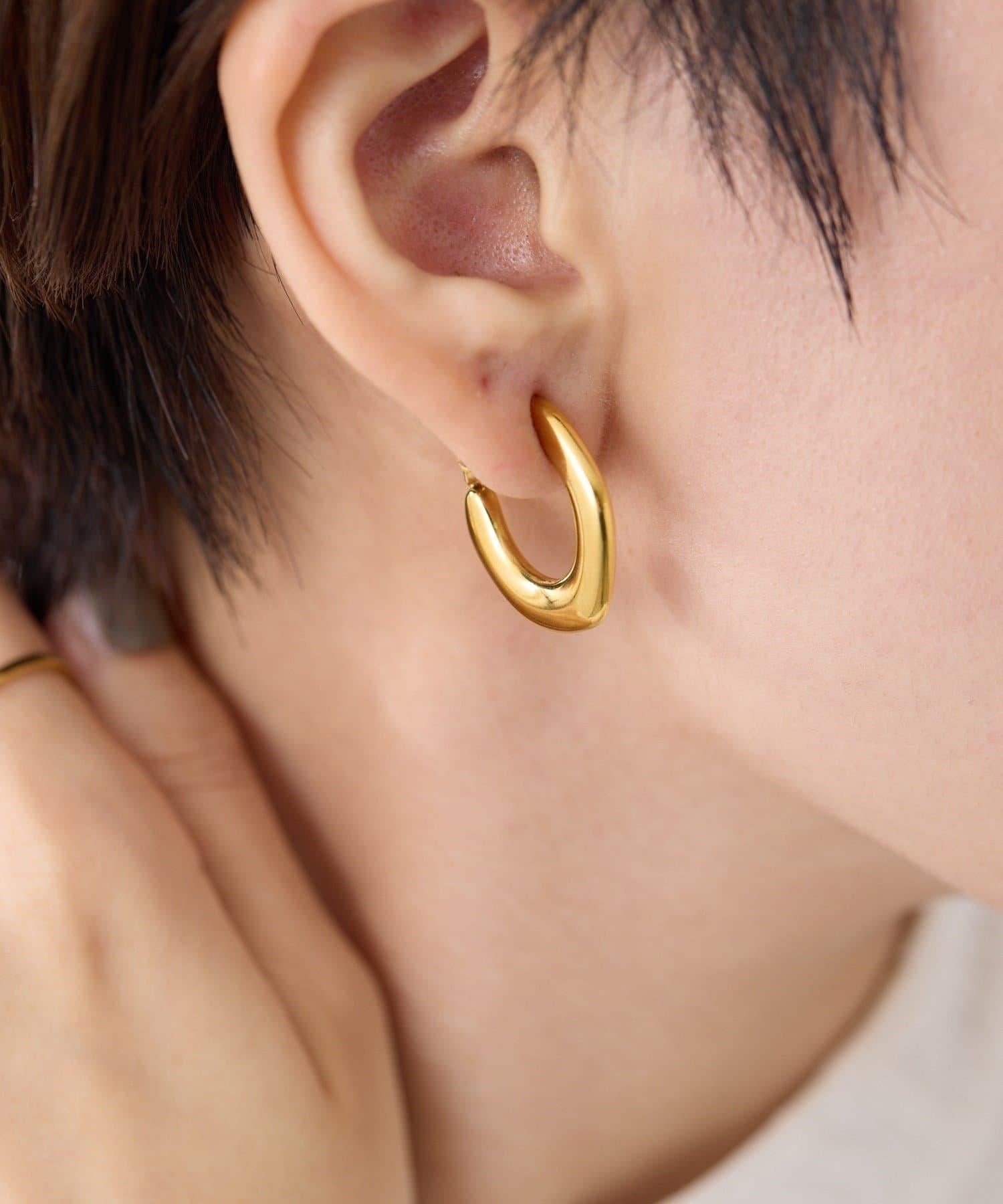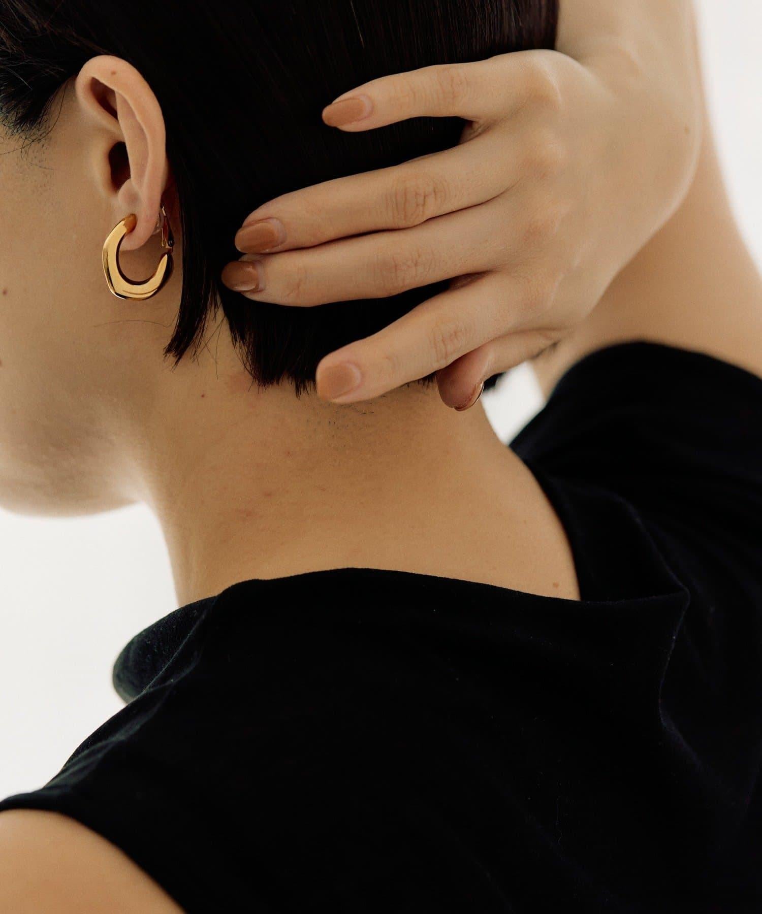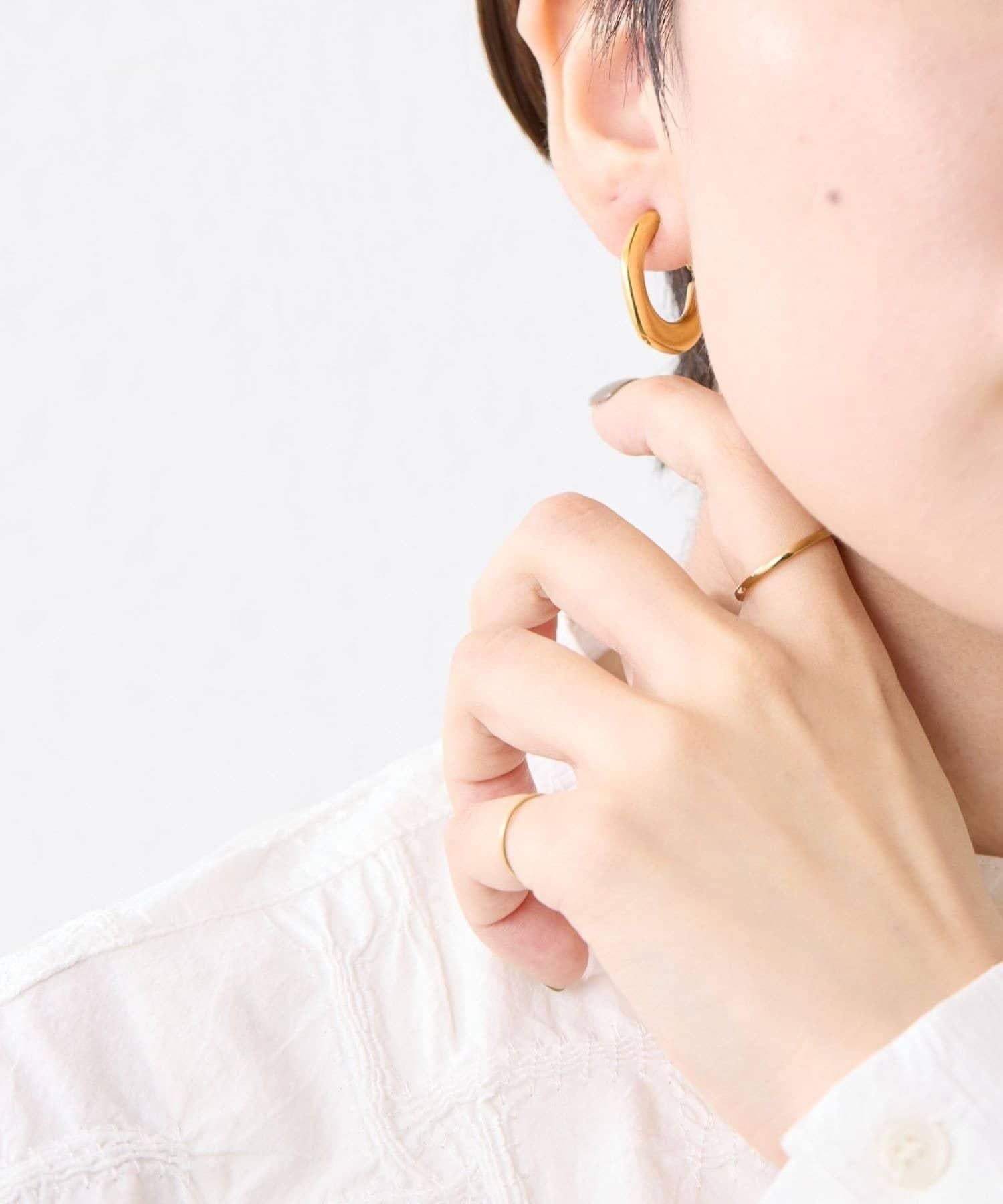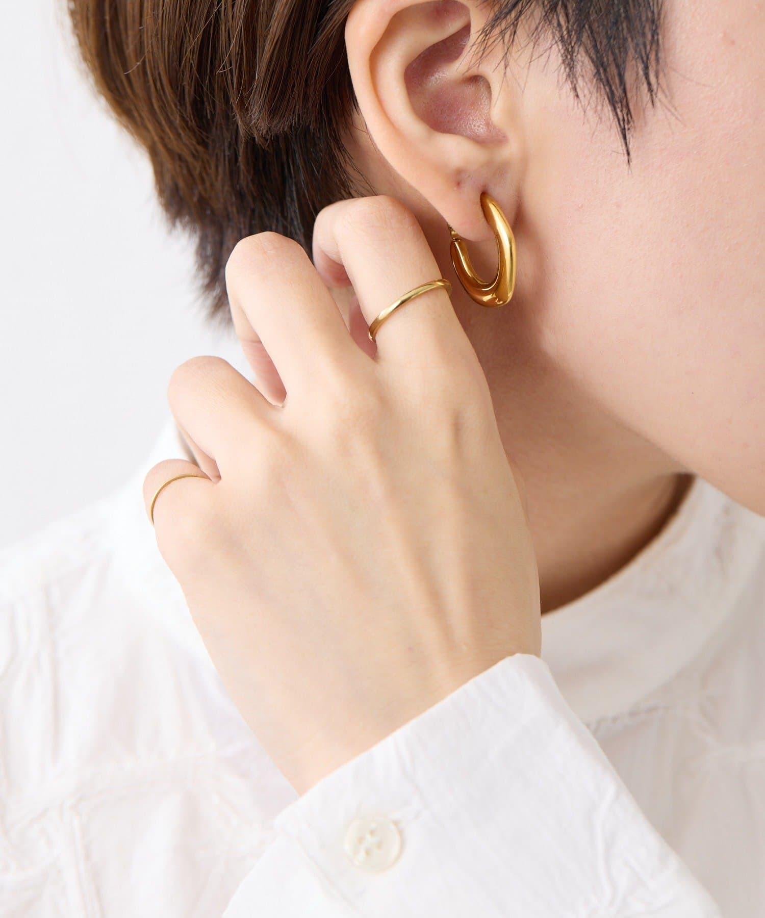 扁平的環形耳環在耳邊營造出強烈的存在感。