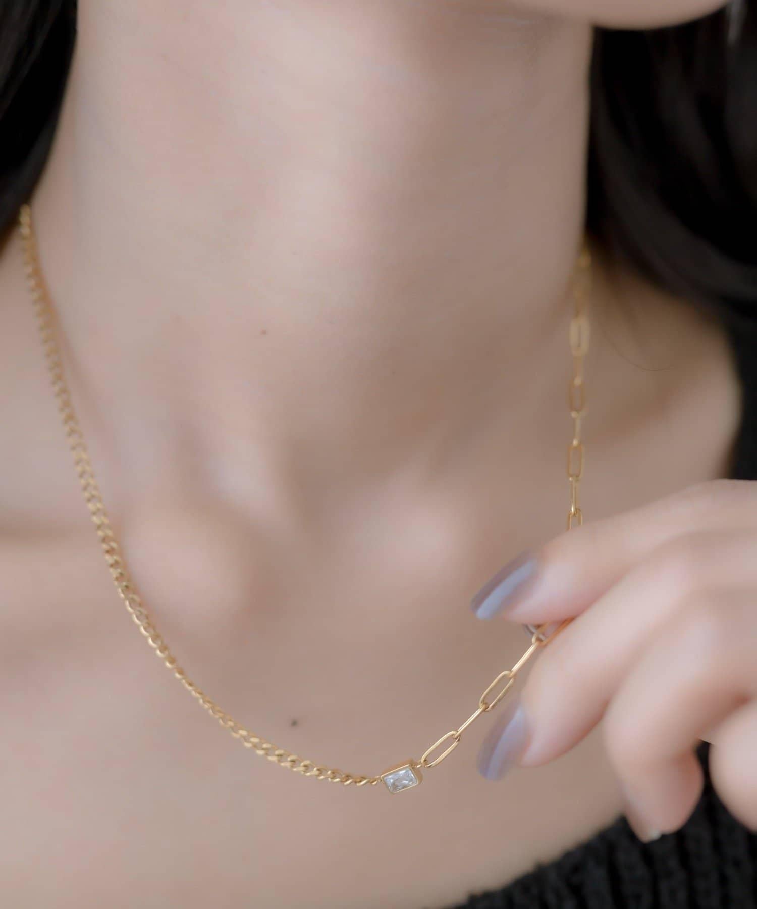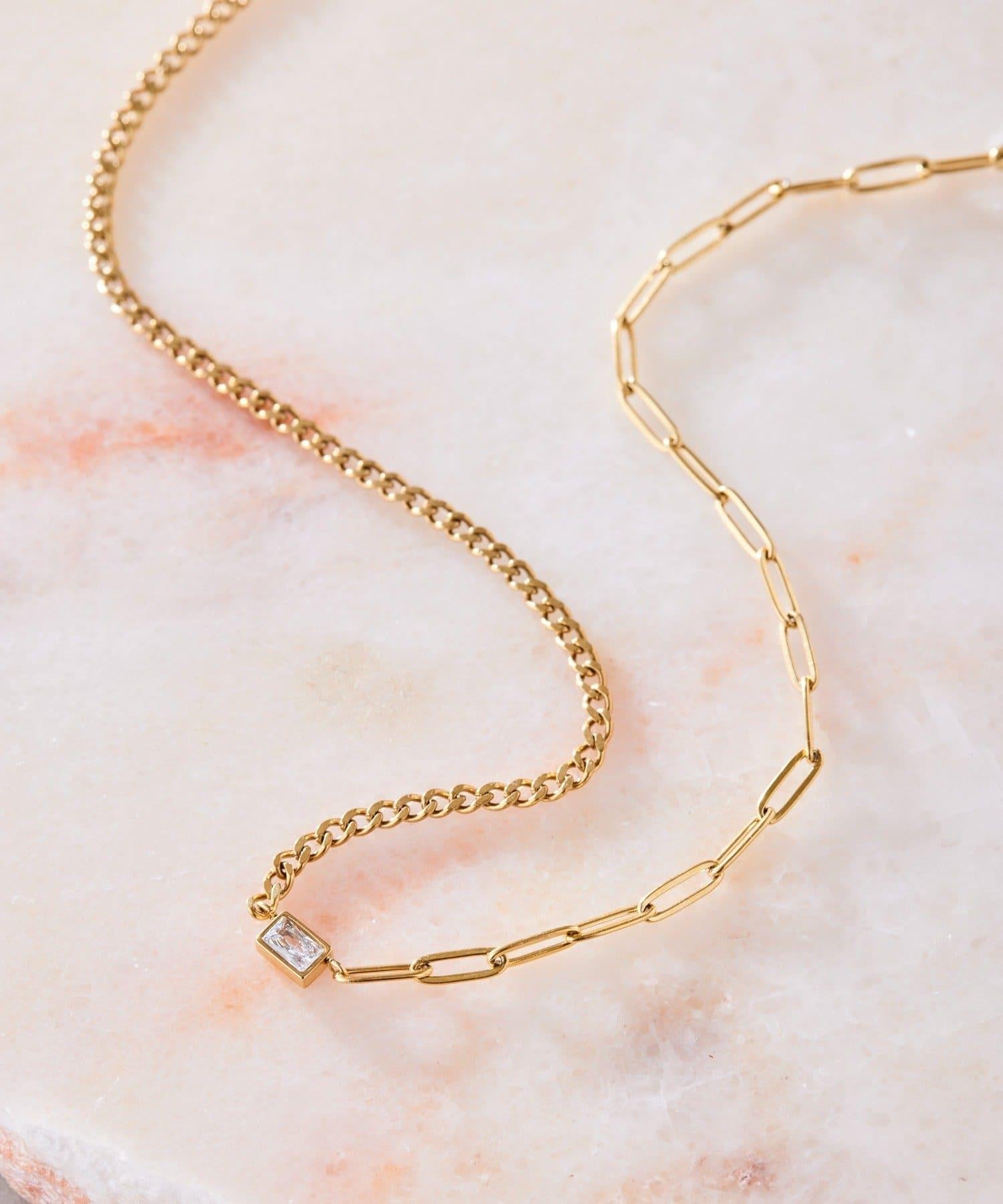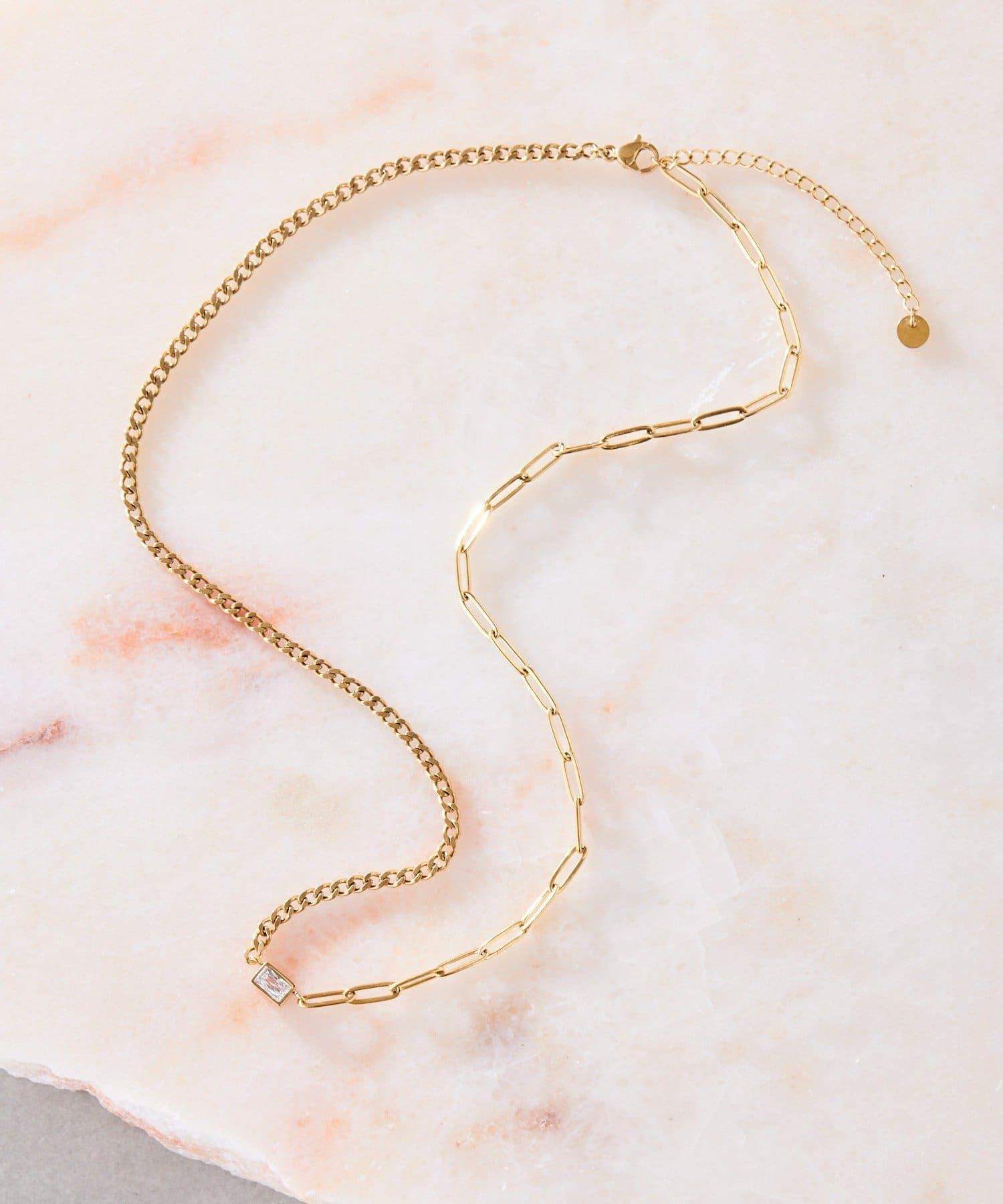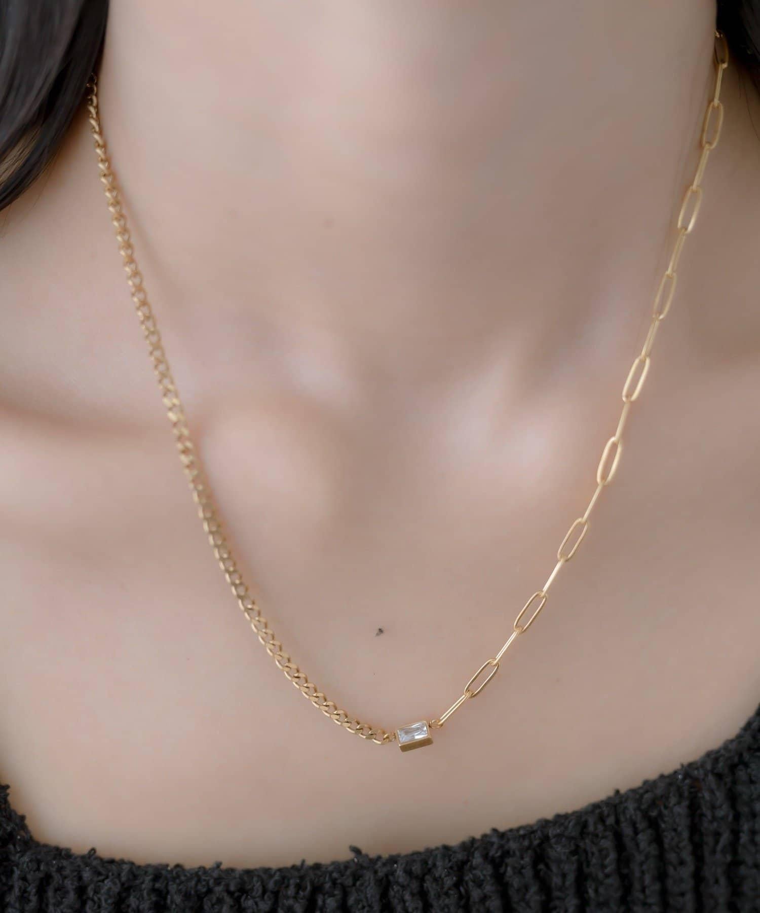 乍看之下,這條鏈式項鍊十分簡單,但鋯石的加入使其更顯優雅。