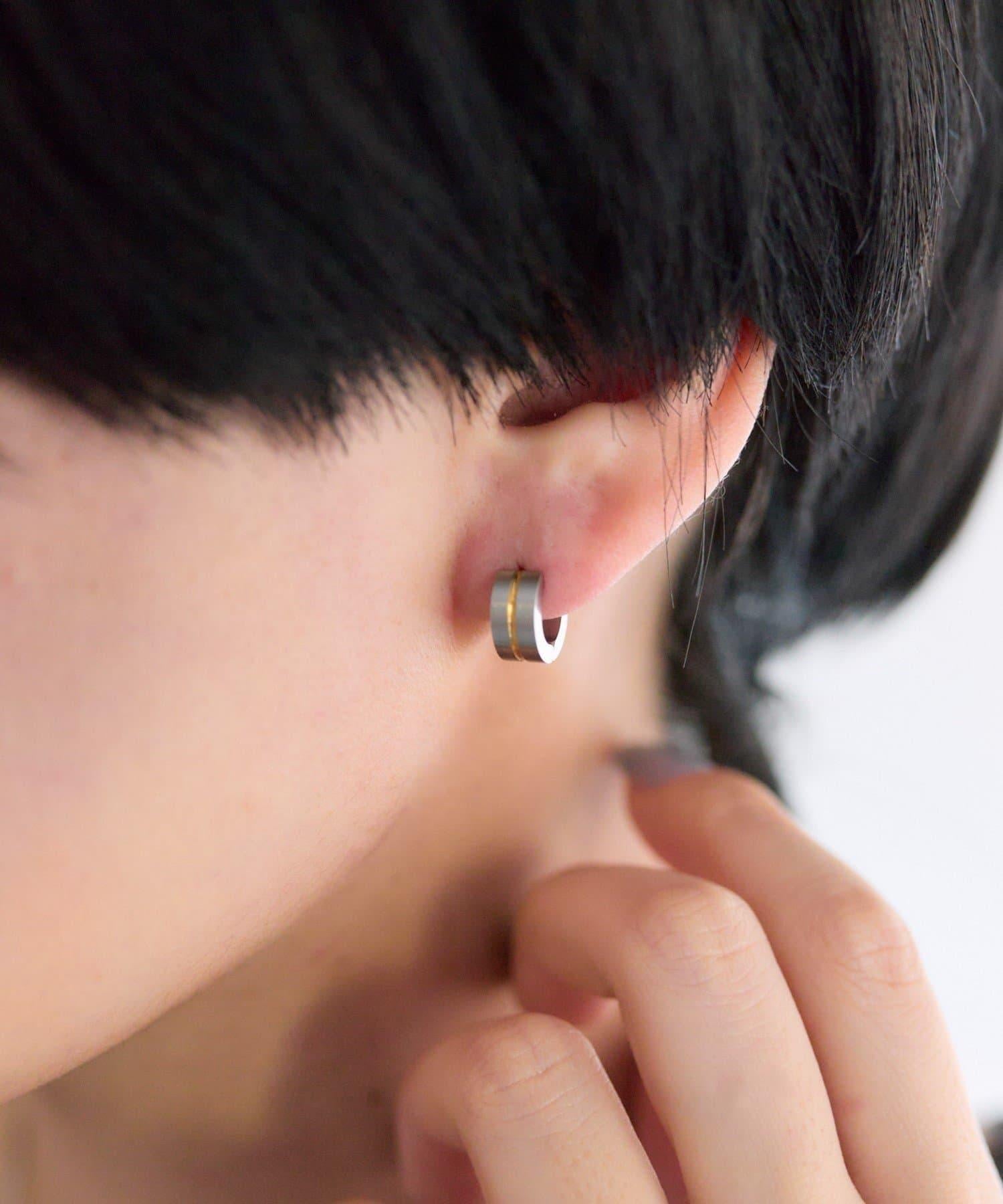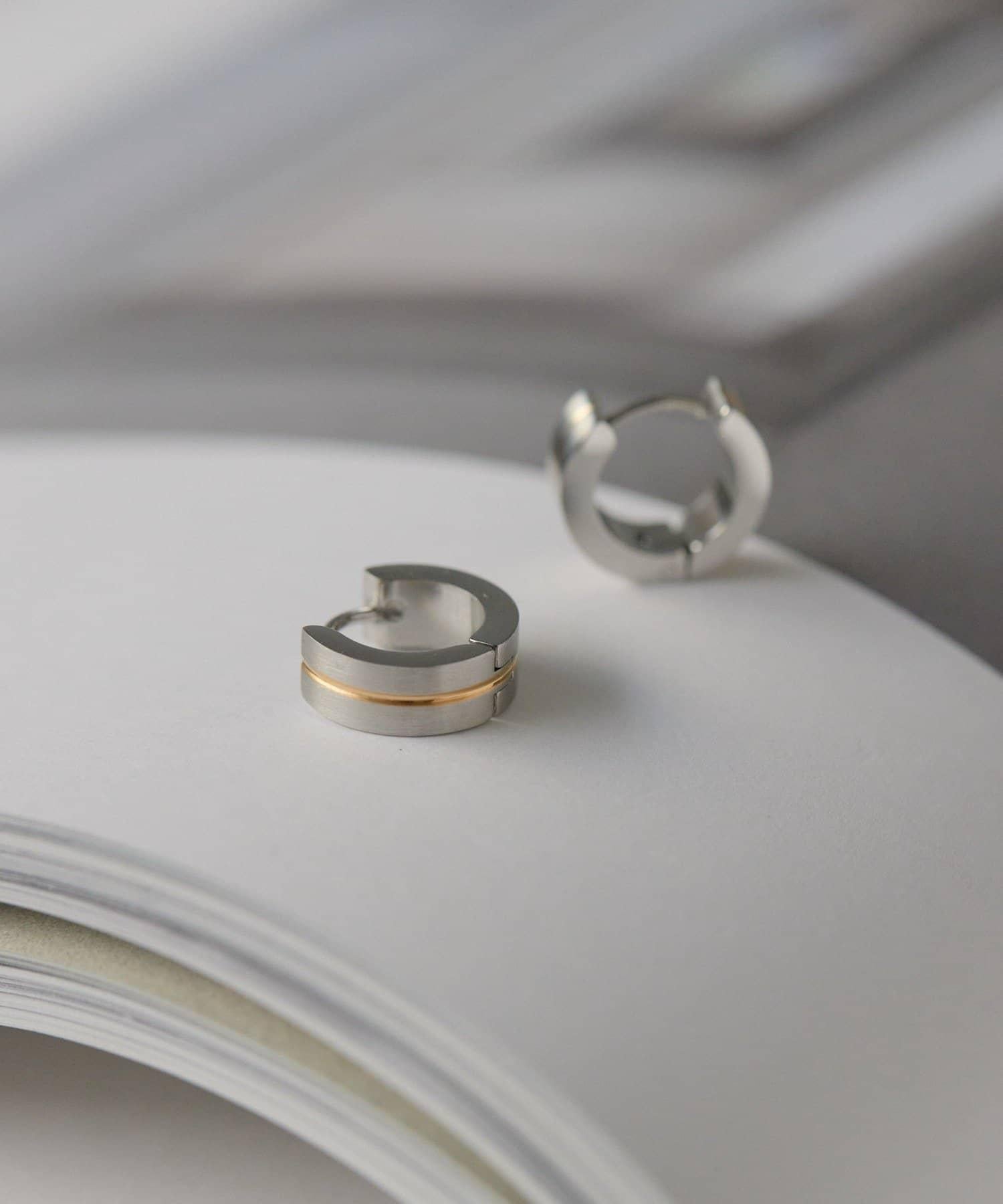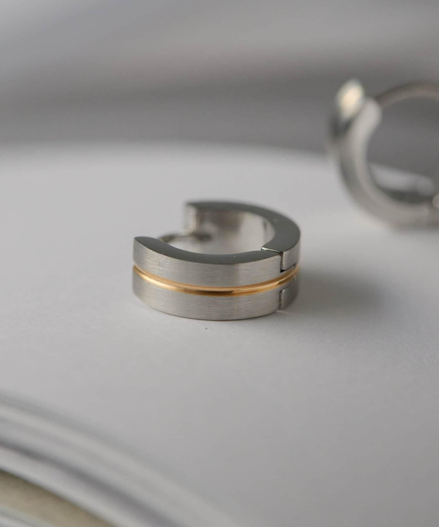 金屬過敏適用/不鏽鋼金色線條圓環耳環