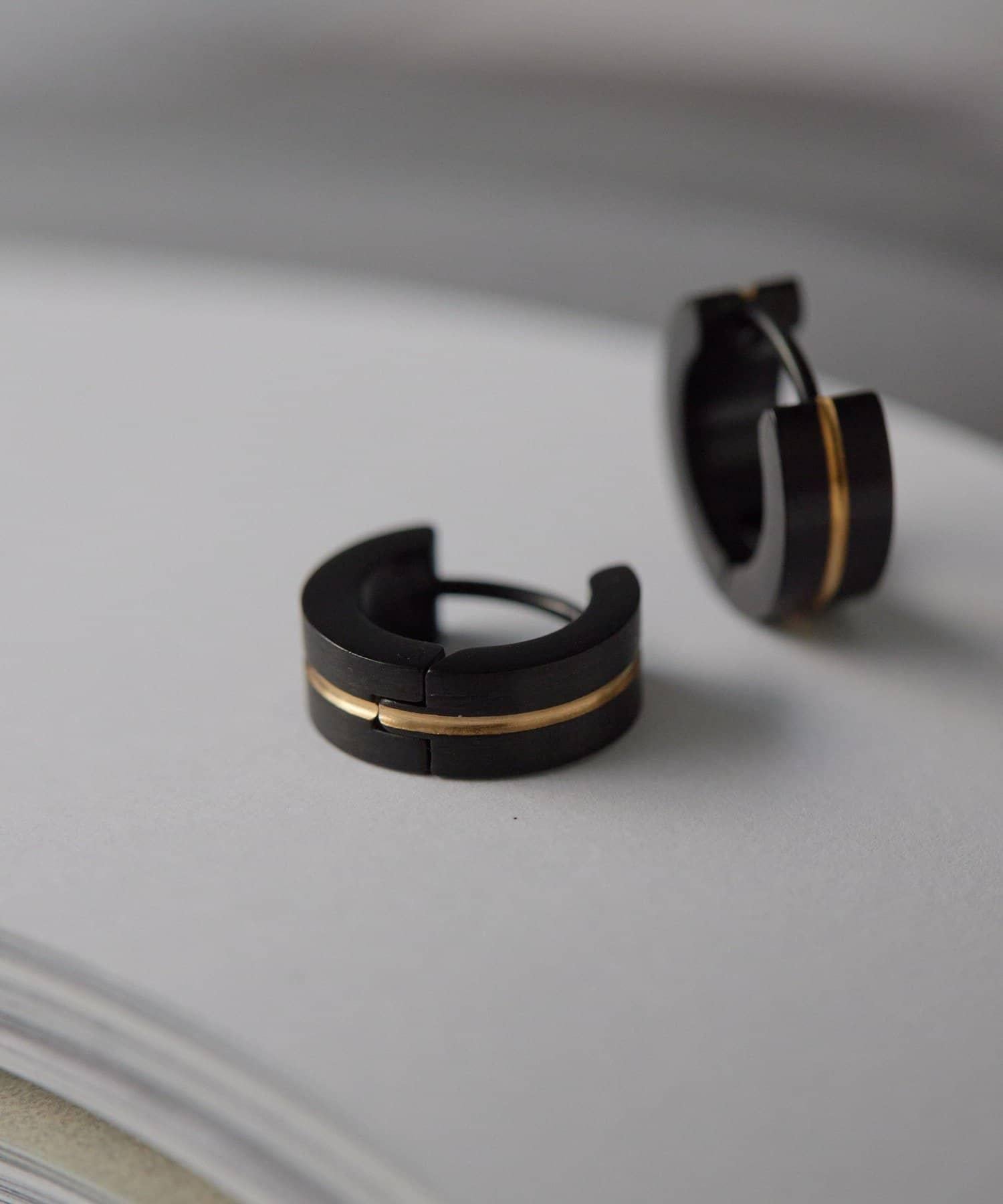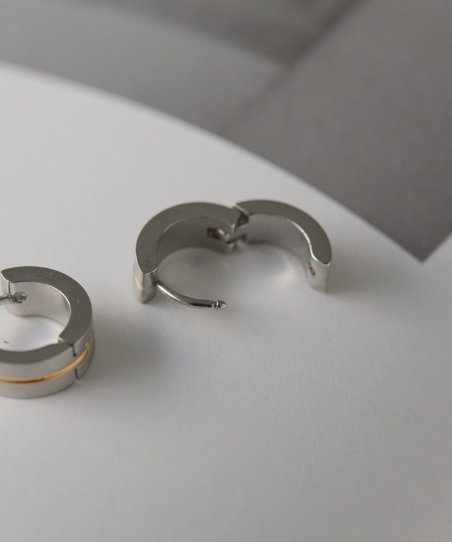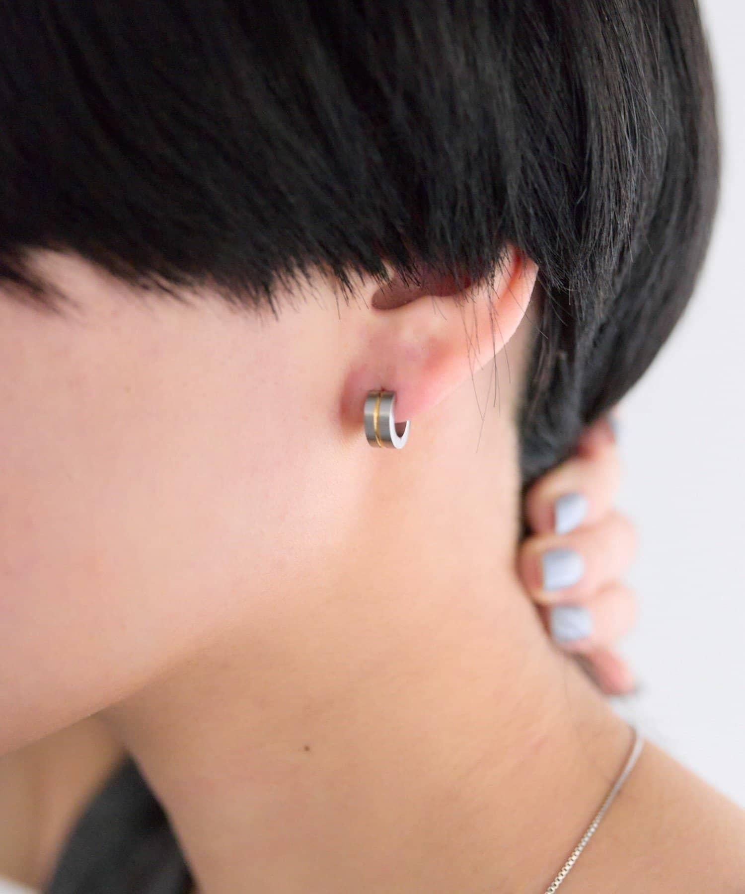 金屬過敏適用/不鏽鋼金色線條圓環耳環