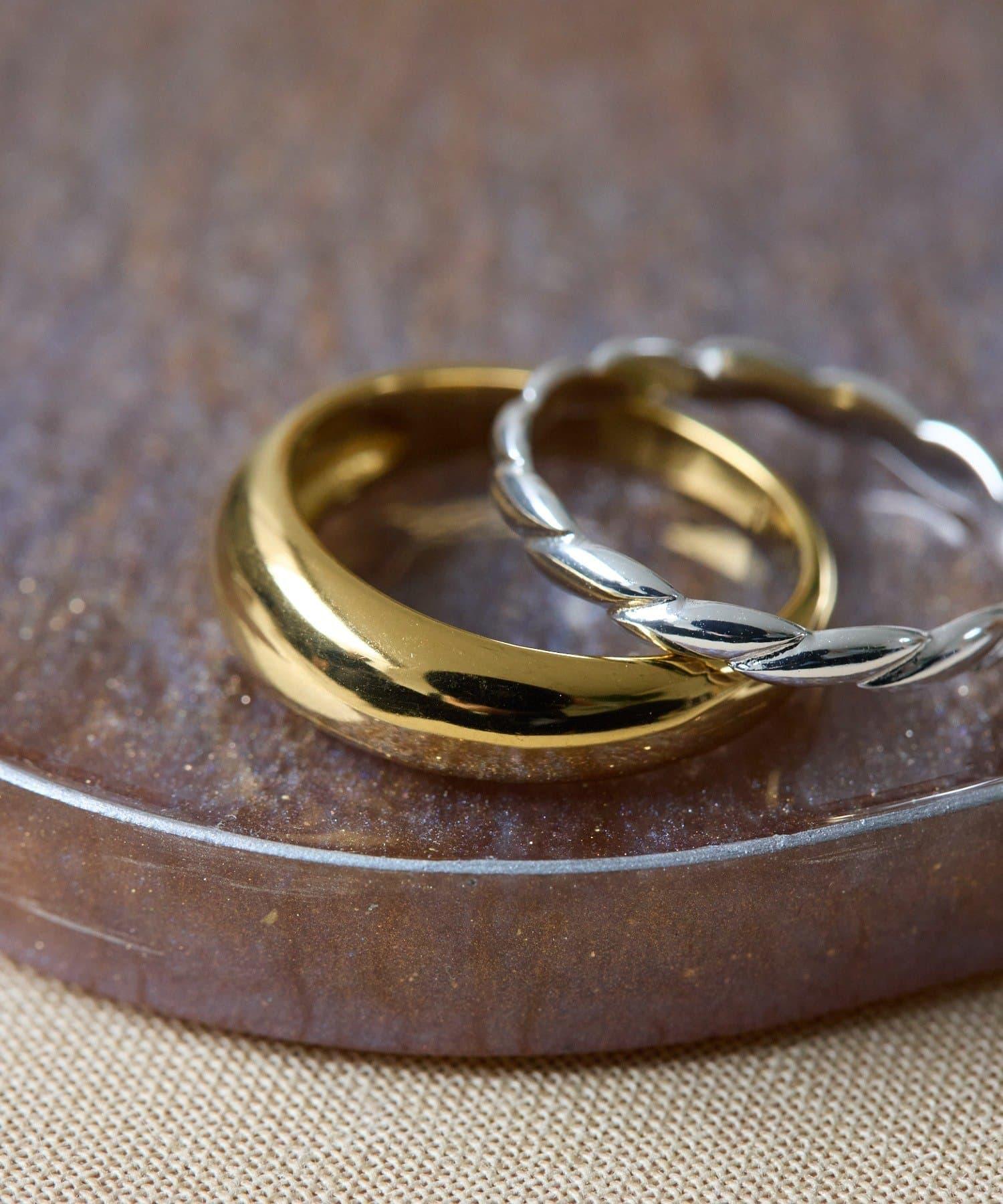 金屬過敏適用/不鏽鋼雙色套裝戒指