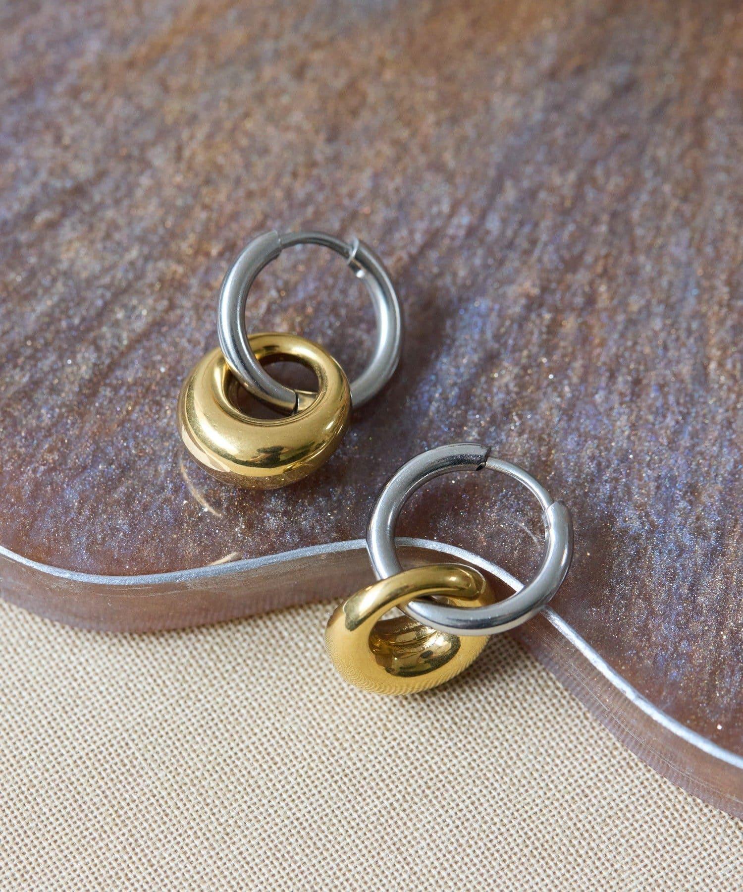 俏皮的 "粗環雙色耳環 "在耳邊搖曳。